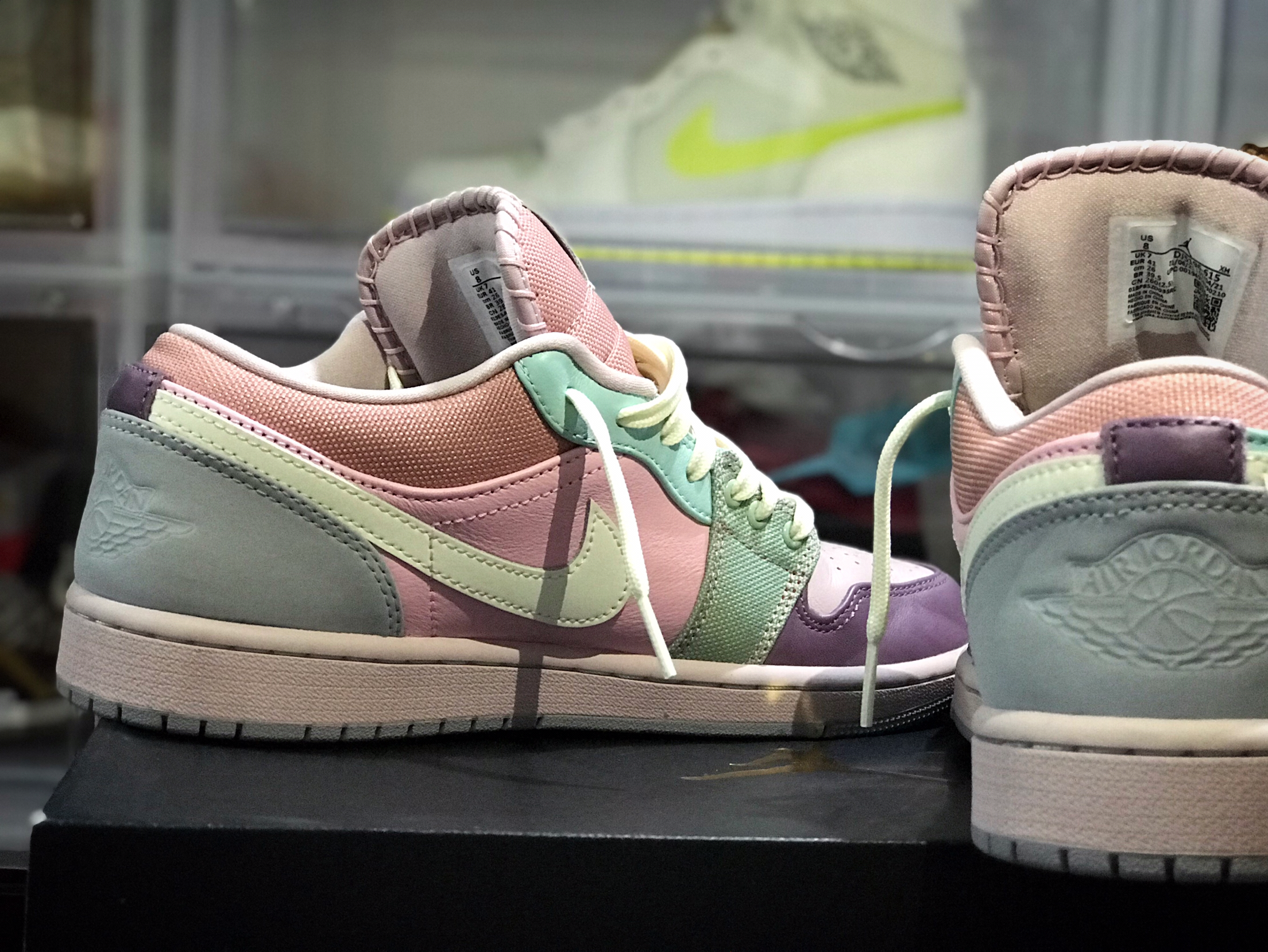 今日开箱📦 AJ1 low 马卡龙 ——整体设计👟 整体鞋身采用了牛皮革,鞋后跟和swoosh采用了牛剖层革,鞋带孔和围绕鞋后跟粉的一带采用了织物,整双鞋是马卡龙色调,颜值超高! ——入手评析🌀 这双鞋的发售价是849,849的发售价就采用了牛皮革材质,出于对材质和颜值的吸引,我入手了它,夏天穿搭非常nice,猛男都喜欢粉嫩。 ——码数建议🧦 正常码购买即可