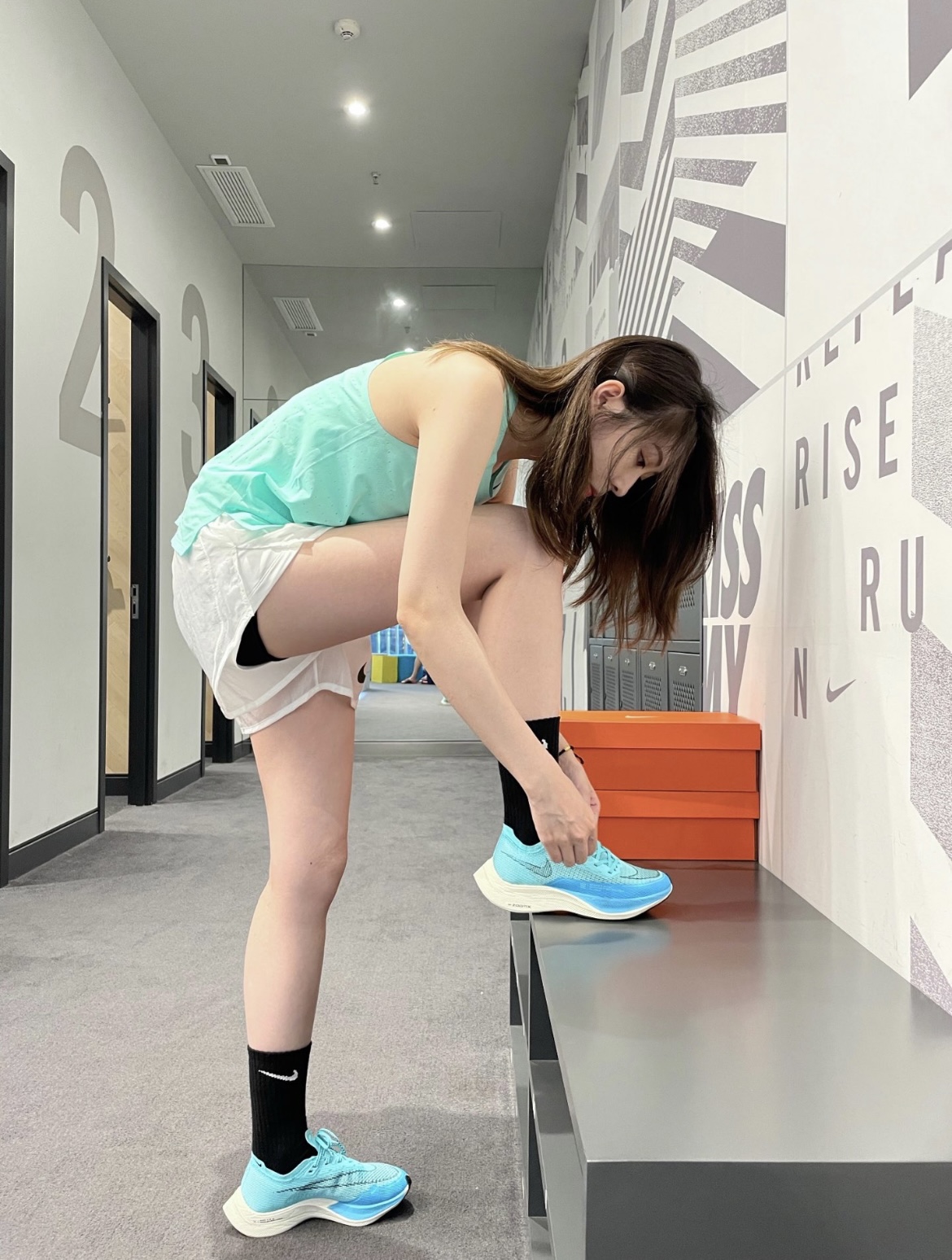 穿搭分享 上身:Nike AeroSwift 透气速干运动跑步无袖背心 下身:白色短裤 鞋:蓝色运动鞋 背心颜色很好看显得很白,运动背心超级好看运动穿正好,推荐推荐 图片来源于网络