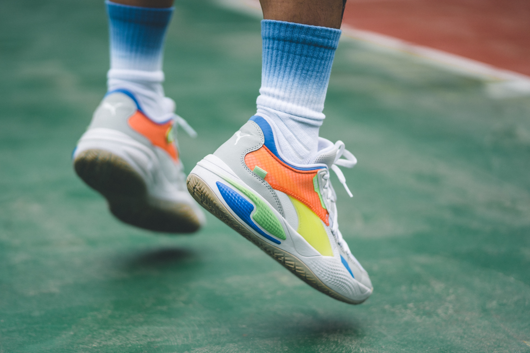 PUMA 篮球从不吝惜在「实战至上」的原则上为比赛注入最具个性的表演元素,先前发布的 Court Rider便是 PUMA 篮球又一款「实用与颜值双担当」的倾力之作。 是 PUMA Rider 系列跑鞋的灵动,与 PUMA 篮球「又帅又能打」的基因碰撞出精彩火花,PUMA Court Rider 大胆前卫的设计灵感来源于电子游戏、怀旧卡通和最鲜明的撞色搭配,丰富的鞋款设计将在年内陆续发布。 「...
