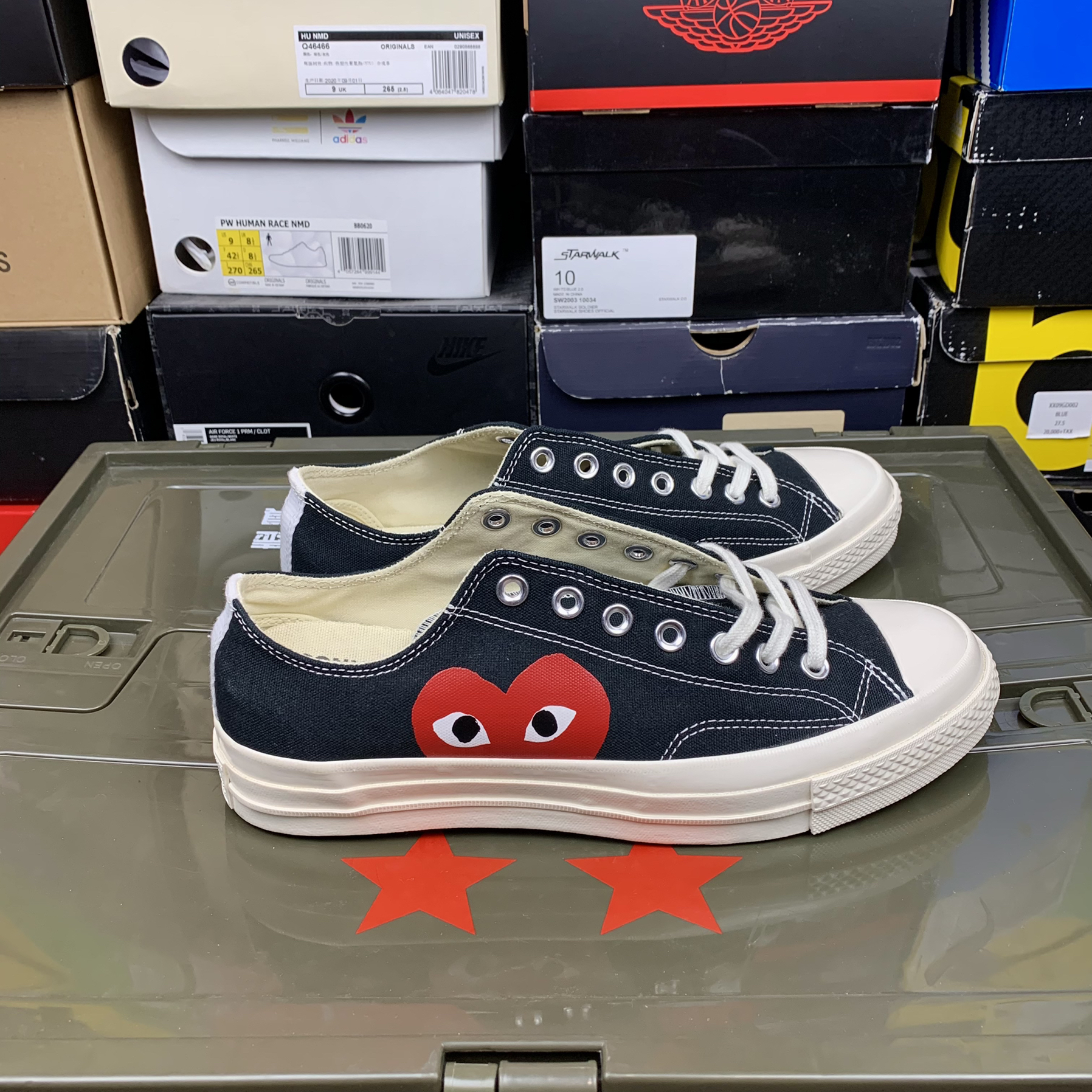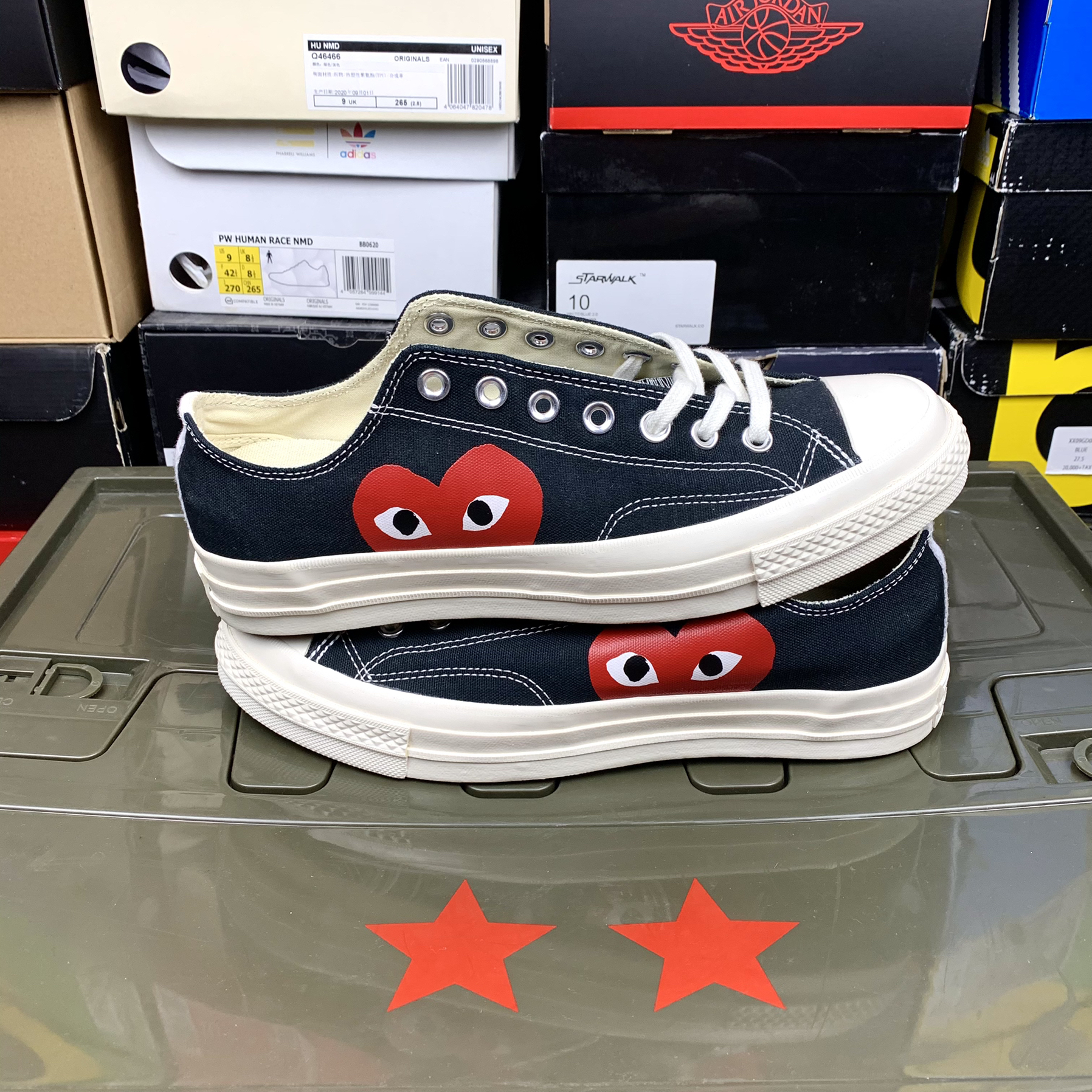 天气一天天的变热,大家尘封鞋柜已久的小布鞋也渐渐的拿了出来,帆布鞋也成了夏日必备单品。 说到帆布鞋就不得不提起匡威了,这一双帆布鞋也是匡威和川久保玲的合作款,鞋子采用了匡威1970s为蓝本增添了可爱的小红心进行点缀非常的好看,采用70s也显得整双鞋子更加的复古好看,黑白的配色也更加的百搭,夏日不论是穿牛仔裤还是工装裤都可以完美驾驭。 整体的穿着舒适程度我觉得比普通的70s要稍微软一点,尺码...