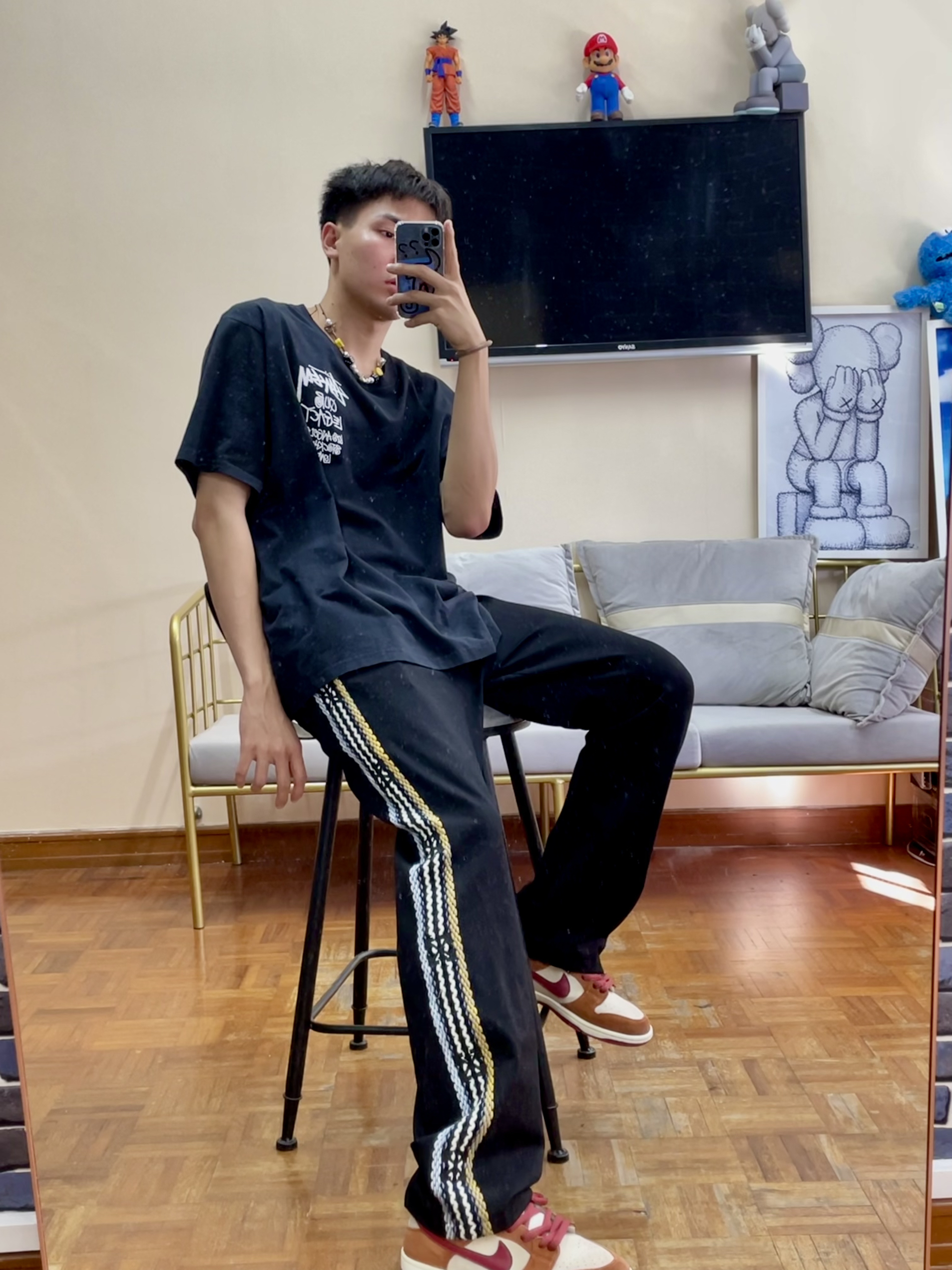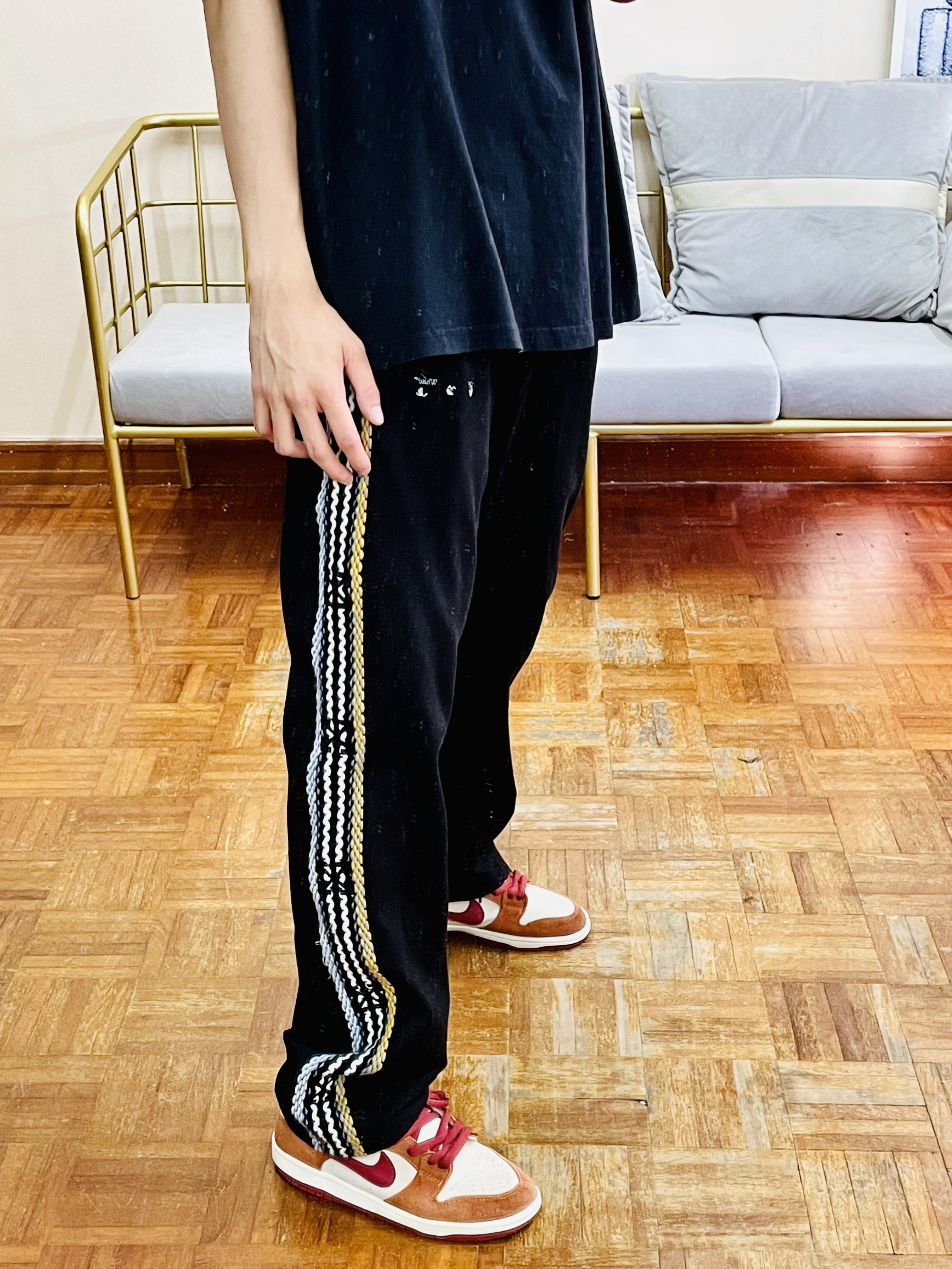 👔 STUSSY X CDG 联名款真的很香!版型图案我都很喜欢! 浓浓的美式街头感!面料偏薄! 穿起来还是很舒服的! 👖 OFF WHITE 版型比较长!堆叠感很好! 侧边的刺绣也很特别!显瘦! 👟 DUNK