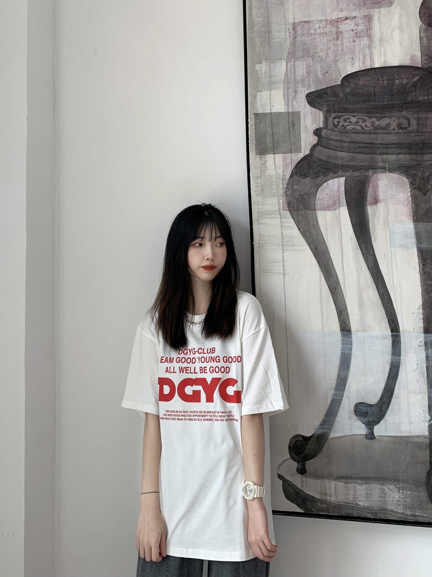 这件白t美式简约风格的印花,打破普通白t的沉闷,百搭潮流必备单品,轻松穿出男友风!百元价格高级质感,兄弟们上! 下身可以根据自己的风格穿出不同花样,如果想简简单单出门,搭配一条运动裤即可。 我搭配了回力这双大头鞋和白t相呼应,平价好穿入股不亏! 👔:dgyg旗舰店 👟:回力 ⌚️:casio 项链:nbo store