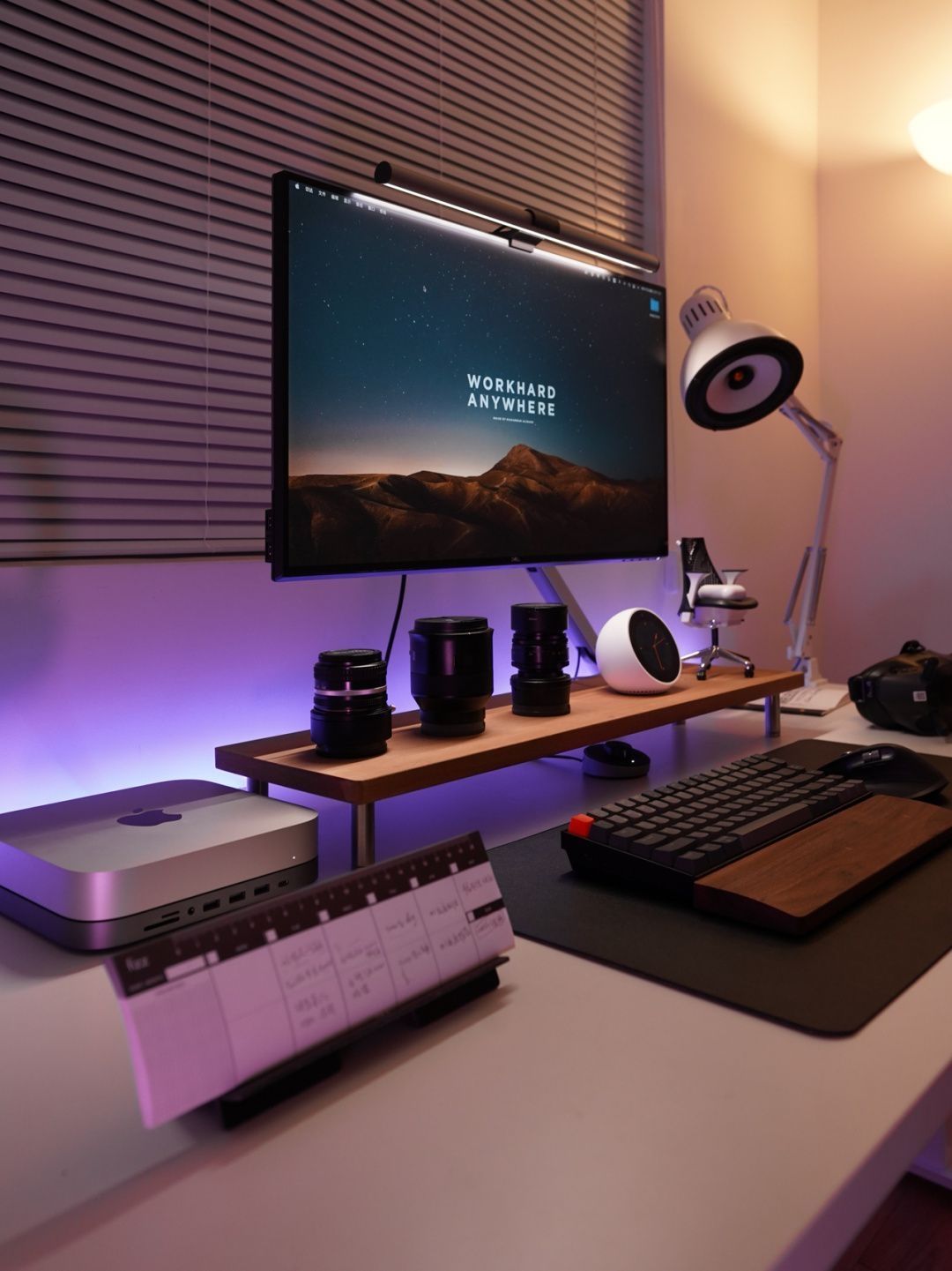 如何打造科技感桌面🖥|布置清单🧾|||打造科技感的桌面我觉得摆设和氛围灯光都很重要,我将从摆设和氛围扽光两个方面去讲如何打造打造科技感桌面。科技感总体的色系要偏暗色,桌子可以选原木色或者胡桃木色,因为我要兼顾白天的色系所以选的白色。 —————————————— 摆设: 1️⃣电脑屏幕机械臂:爱格升的这款机械臂能搭载我27寸的尺寸屏幕,而且看起来科技感太强了,而且可以很好地隐藏各种杂乱的线。 2️...