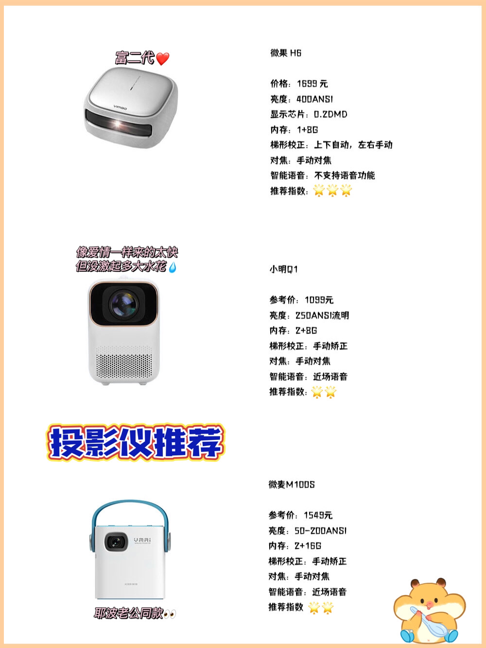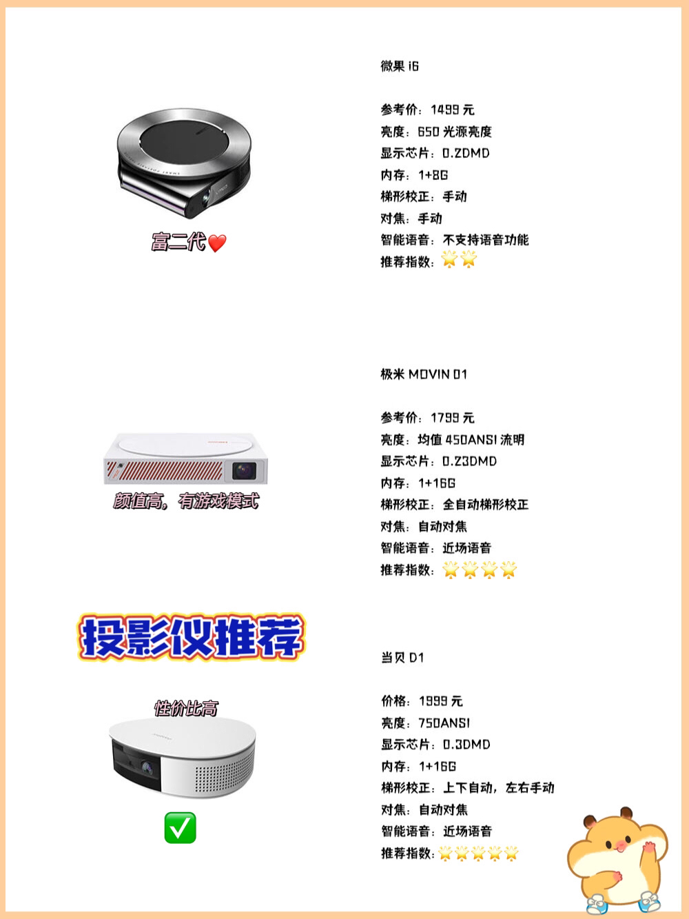 总会有伙伴问胖虎👦🏻学生党想买投影仪,价格👌便宜点的,让胖虎👋推荐一下 其实这个价位的投影仪,我是不太❌推荐的,这个价位的大多是便携款,配置不太行 但既然小伙伴要说推荐,一起来看看小红书经常提到的这些💰平价投影仪哪款更适合吧~ • 👉极米play特别版 极米家投影仪,音质都是不错的 但配置稍微弱了一丢丢 对音质有极致追求的,可以选择 • 👉小明Q1 刚上市的时候很火,刮起了一阵大风 但像爱情一样,...