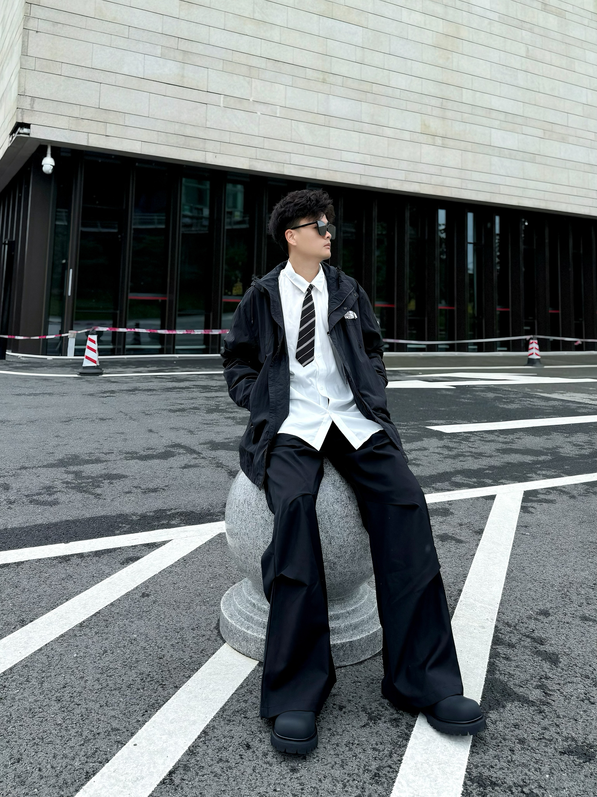 宽松大黑色T恤+MASONPRINCE Cityboy垂感签名logo西裤+黑色板鞋 纯黑色系穿搭,低调高级感气场满格 挺括有型的西裤版型 拥有一米八大长腿不在话下 腰间再搭配绿色丝带 让整体穿搭更有层次感 裤子:MASONPRINCE Cityboy垂感签名logo西裤 SK2028 图源自网络