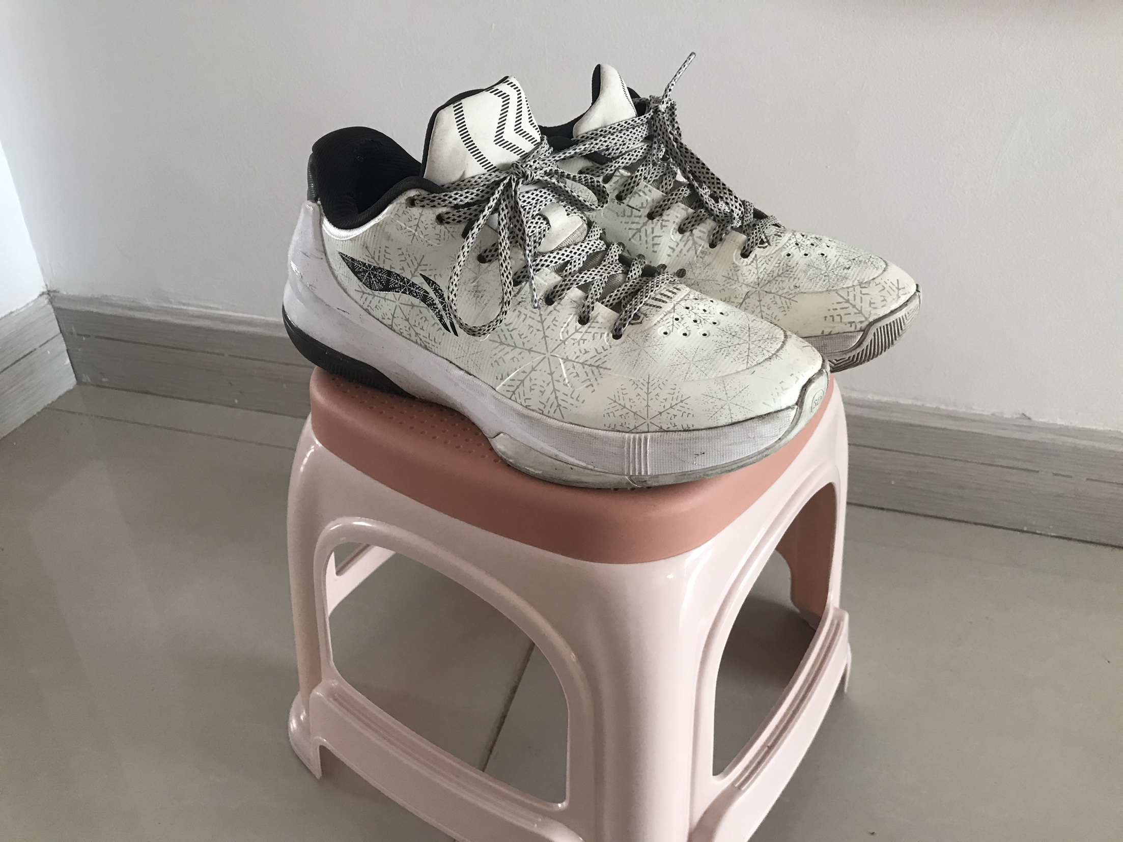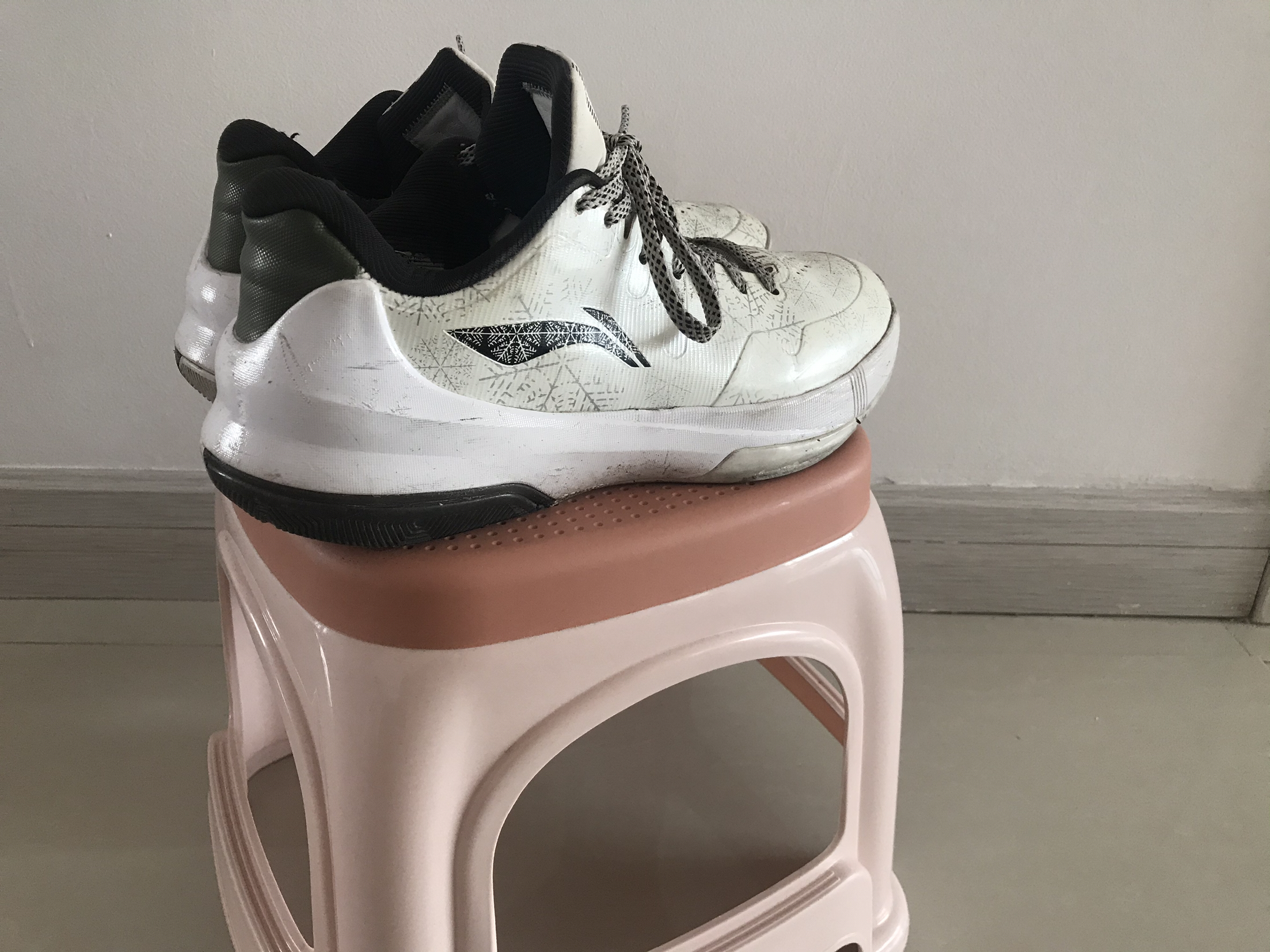 👟球鞋名称:闪击三白天鹅🦢配色 🔍设计亮点:整体白色,有银色雪花暗纹,鞋舌处有一只天鹅的纹绣 ⛹️实战感受(缓震/包裹/抓地力):运用李宁B+科技,缓震中规中矩,包裹没得说,支撑性很好,抓地还算可以,薄荷绿配色在现在的CBA联盟中还有人穿。 📃总结评价。 真心不错,三百左右的价格买了一双最具有性价比的球鞋,性能、外观都没得说。