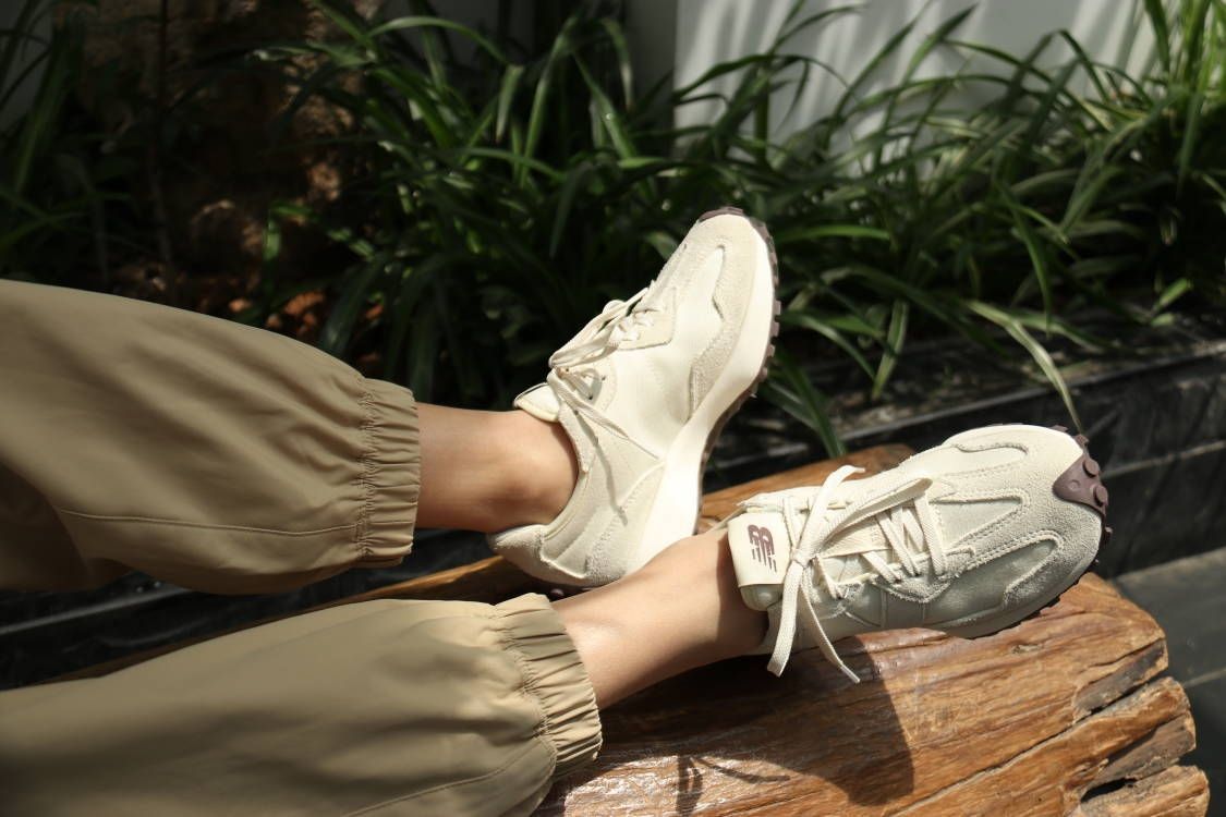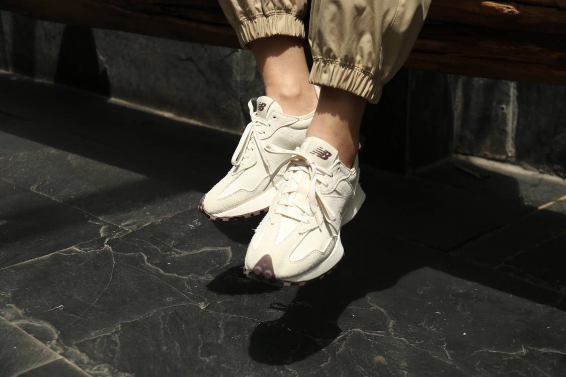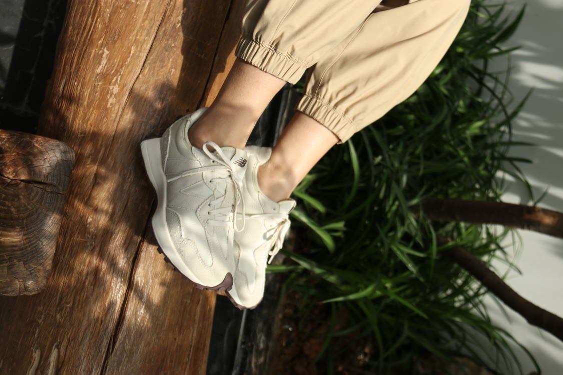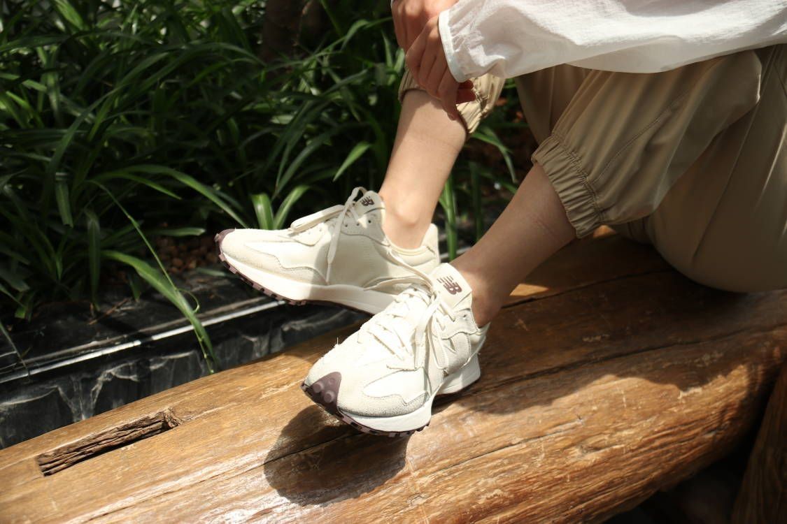 新百伦327之前一直想入手的鞋款,这次终于拔草了海盐白,有点夏日小清新的感觉,夏天穿出去妥妥的显腿长啊。 鞋子整体是海盐色的帆布系列,是那种超级耐看的系列,327厚底的设计妥妥的增高啊,搭个短裤秒变大长腿啊。 上脚很轻盈,走路也不累脚,夏秋可以搭个米色的裤子,暖色系穿搭真的超赞👍