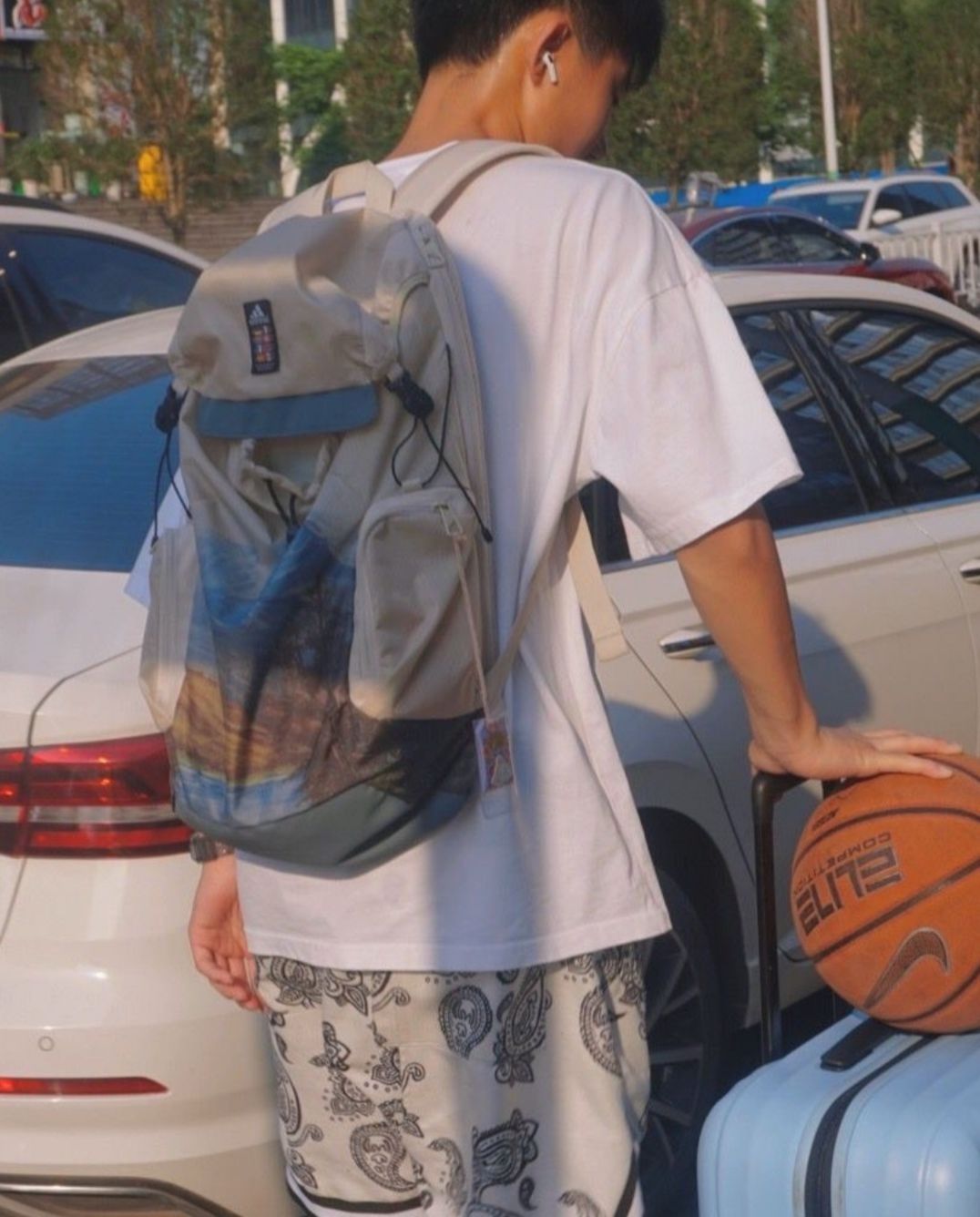 Adidas 时尚运动休闲旅行包印花双肩包 很潮的颜色,里面有个大隔层一个小隔层,两边有放水杯的小袋(也可以放耳机 ,小遮阳伞等等,有拉链设计可以防止丢失超棒)。😃😃书包比较大可以放下15.6寸的电脑,也可以背去打球用来装球衣,毛巾和装备。外面的绳子也是个蛮不错的装饰,质量也蛮不错背着非常休闲,也很百搭,值得拥有!🤖🤖