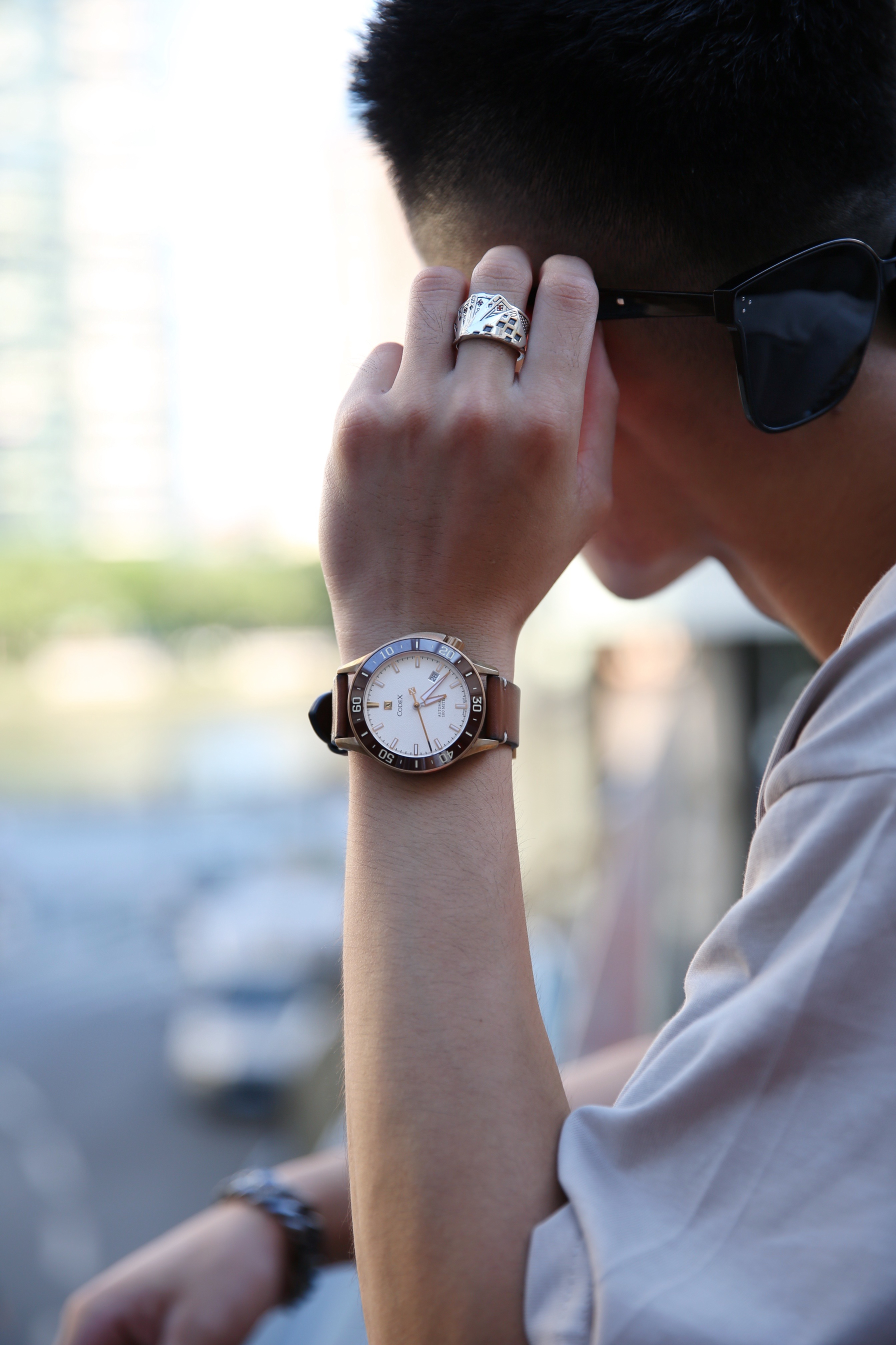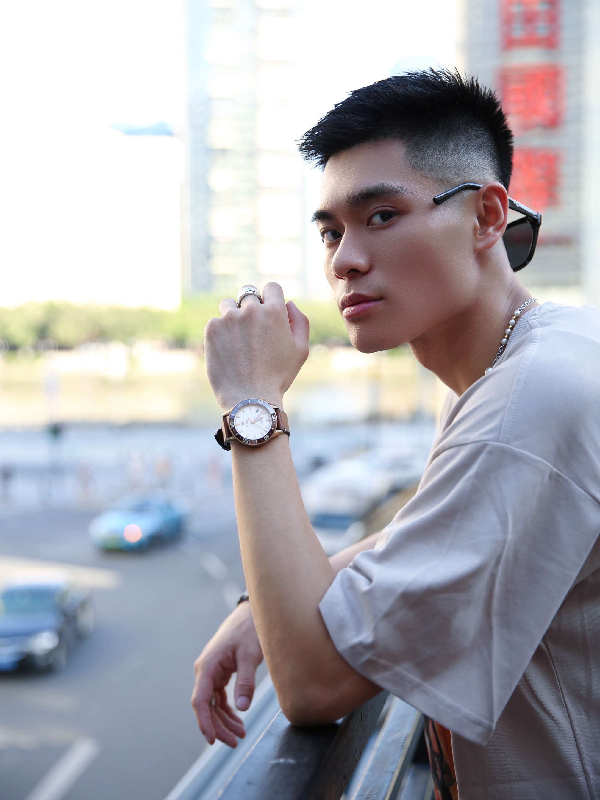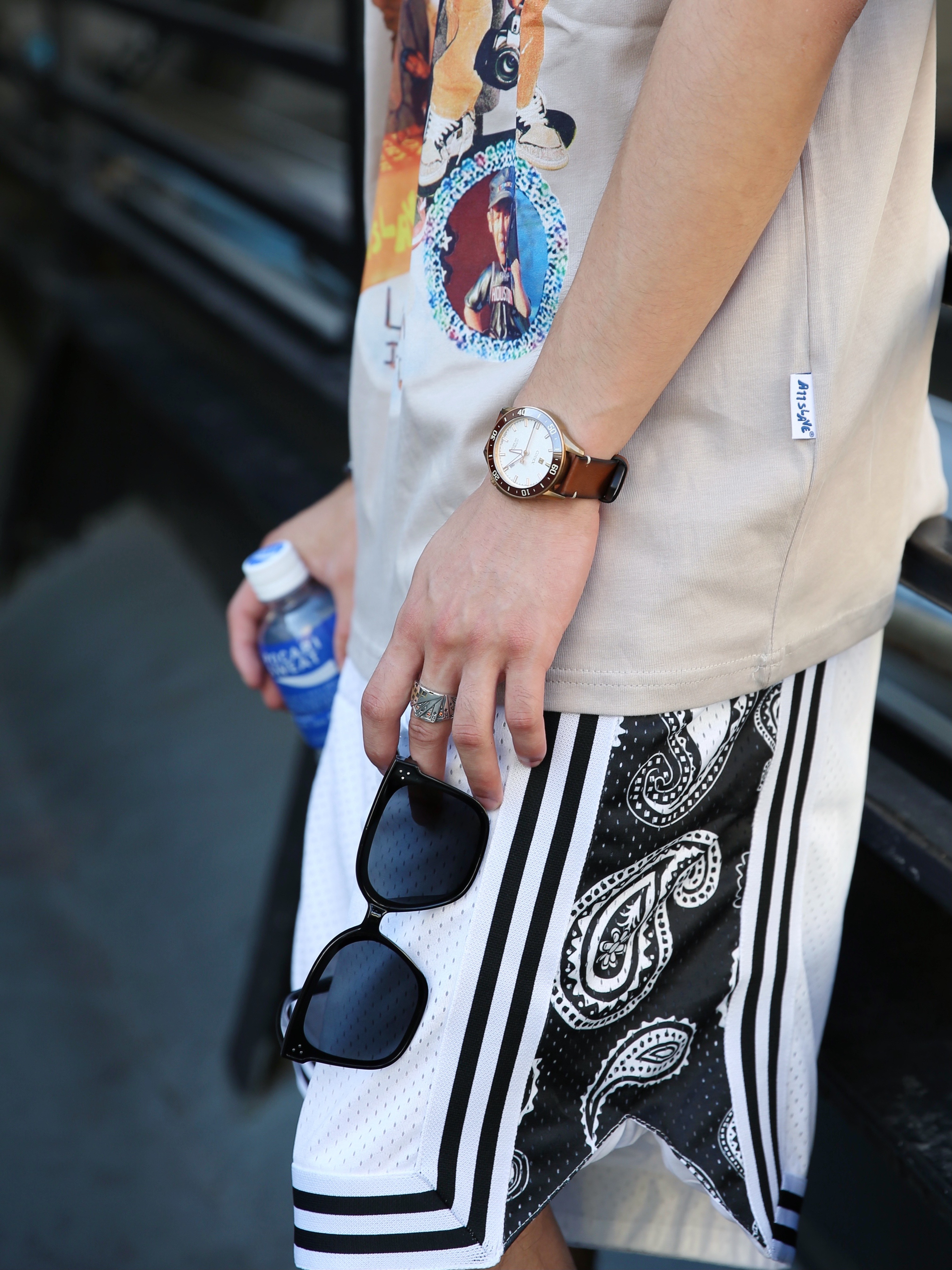 穿搭分享⛓ 很久之前就喜欢搭配卡其色这种低饱和度颜色的衣服 卡其色真的很能诠释美系的搭配风格 今天这套穿搭美式穿搭 卡其色短袖搭配黑白撞色腰果花球裤 球裤的设计跟短袖简直太好搭了 这时配饰就必不可少的了 既能抵挡紫外线的墨镜随时随地可以凹造型 戒指是扑克同花顺的设计 非常新颖 手表选择的是机械表 咖色的设计跟衣服不要太搭 上手高级感满满 —— 🔘项链:Wassup 🔘墨镜:MYOMY 🔘手表:CO...