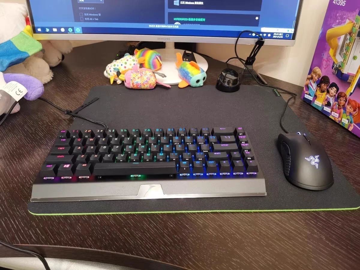 一直想换个键盘,首选还是雷蛇,毕竟鼠标是曼巴眼镜蛇,耳机是北海巨妖终极版,就想凑成一套。之前看的是精英版的黄轴,但还是觉得太贵了,而且精英版的灯光没有这个亮。到手后觉得一切值了,手感很棒,段落感十足,灯光是真的秀✨✨✨ ❤️外观颜值:颜值方面自是没得说!雷蛇标志性绿光可以自己调节亮度,十分个性炫酷! ❤️响应速度: 轴体方面使用的雷蛇绿轴,但是有青轴的感觉,声音清脆,响应速度也很快,整体操作起来非...