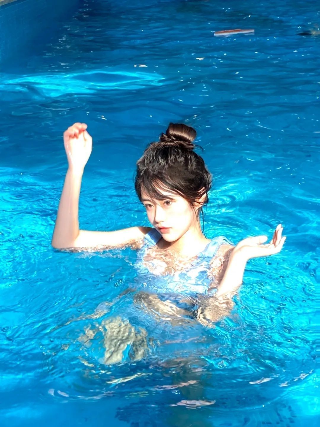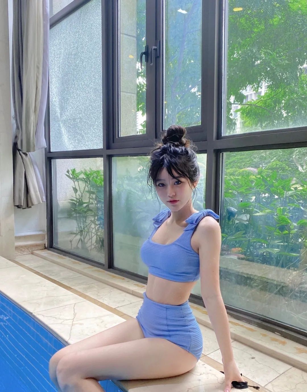 夏天唯一能坚持的运动就是游泳了 好玩又有效塑形!顺便臭美拍了照片 泳池拍照太元气啦 很有夏日活力感! 泳衣:Viola Farfalla 很少女的bb蓝 喜欢