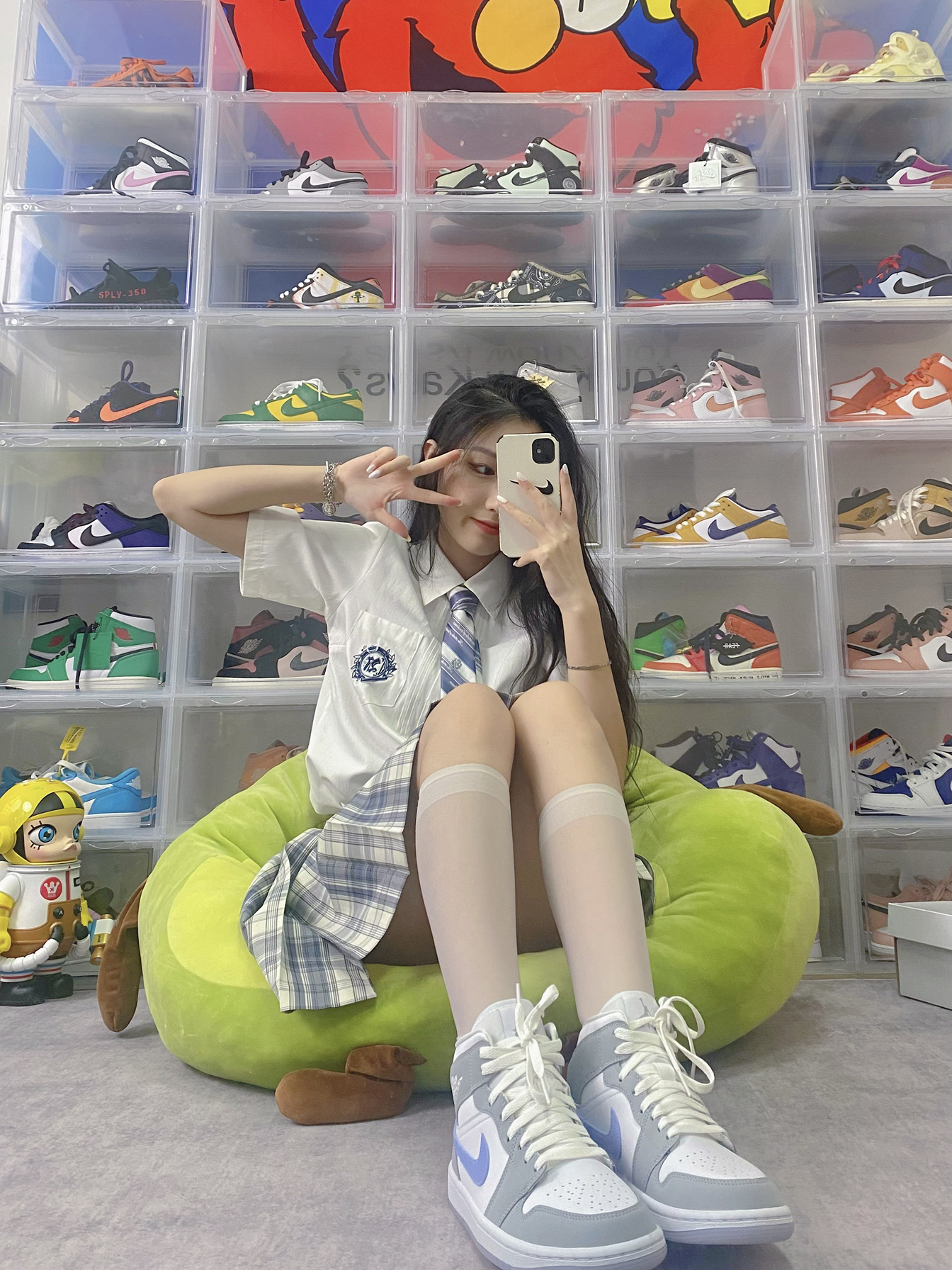 👟:aj1 mid 冰蓝烟灰 这该不会是和温柔一刀凑一整套的鞋子吧 小dior配色yyds 百搭绝绝子, ak女孩冲冲!