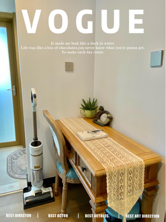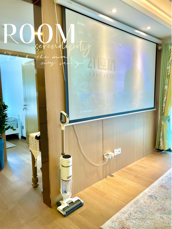 家里面一定要做好收纳哦,这个洗地机不用的时候是可以直立的,不占地方。装修的时候,设计了好多收纳墙柜,现在不用的东西都放在里面了,看不见杂乱,显得整个家很干净透亮。