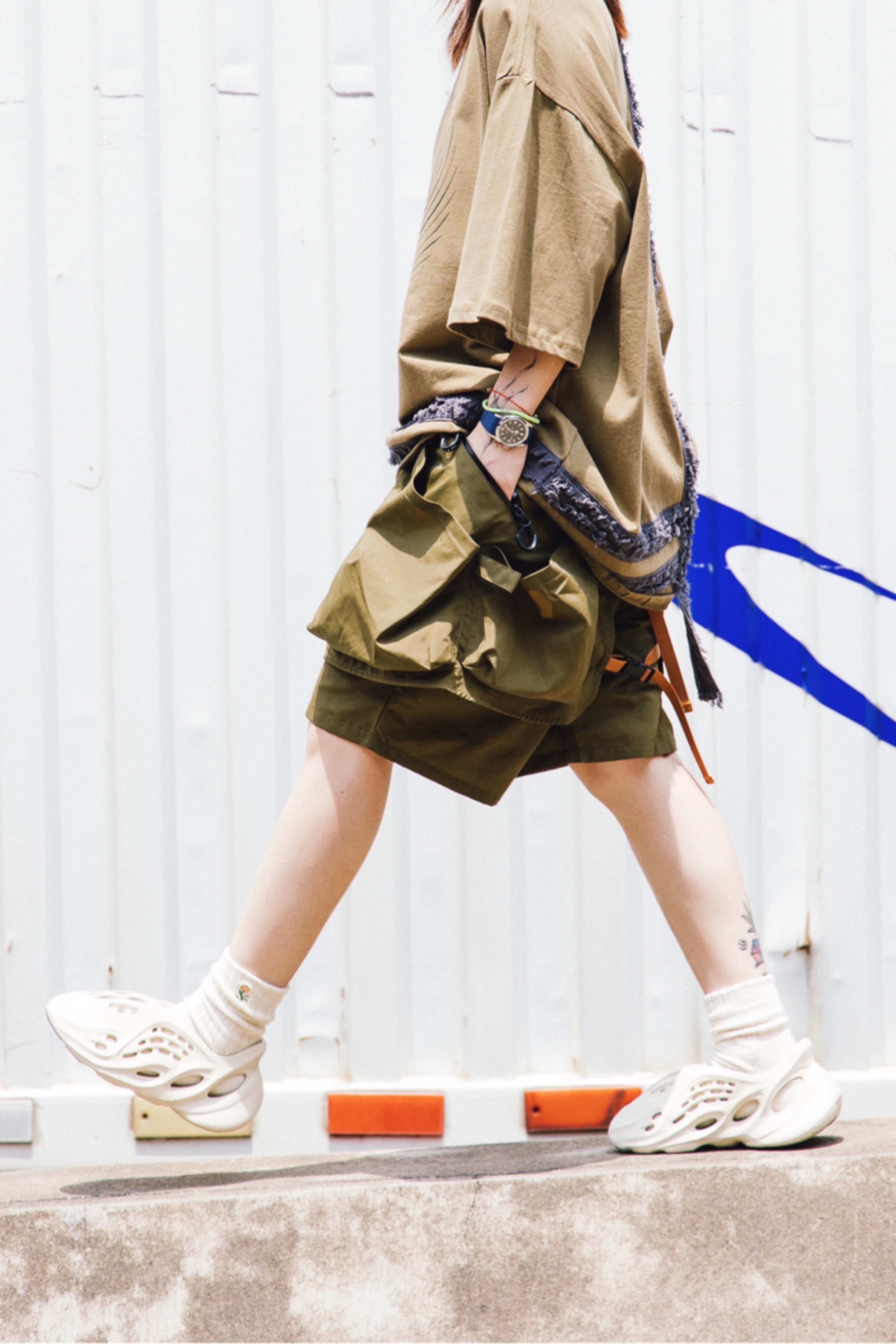是日搭配 今天搭配使用了大面積軍綠(而且是偏卡其的軍綠)這個色調非常中性也非常山系,可以說是大地色的代表。Tee是float的,帶有民族感拼接可以讓整個造型裡帶上更有趣的性格。褲子下次我來一個認真介紹!這次鞋子我選擇了大家應該意想不到的YEEZY洞洞鞋!這樣搭應該沒想到吧😁米色版本意外的和諧!平衡了洞洞鞋過於抽象未來的設計,讓它變得可日常化。搭配的襪子也會成為關鍵!請不要隨便亂搭襪子!會造成混亂。...