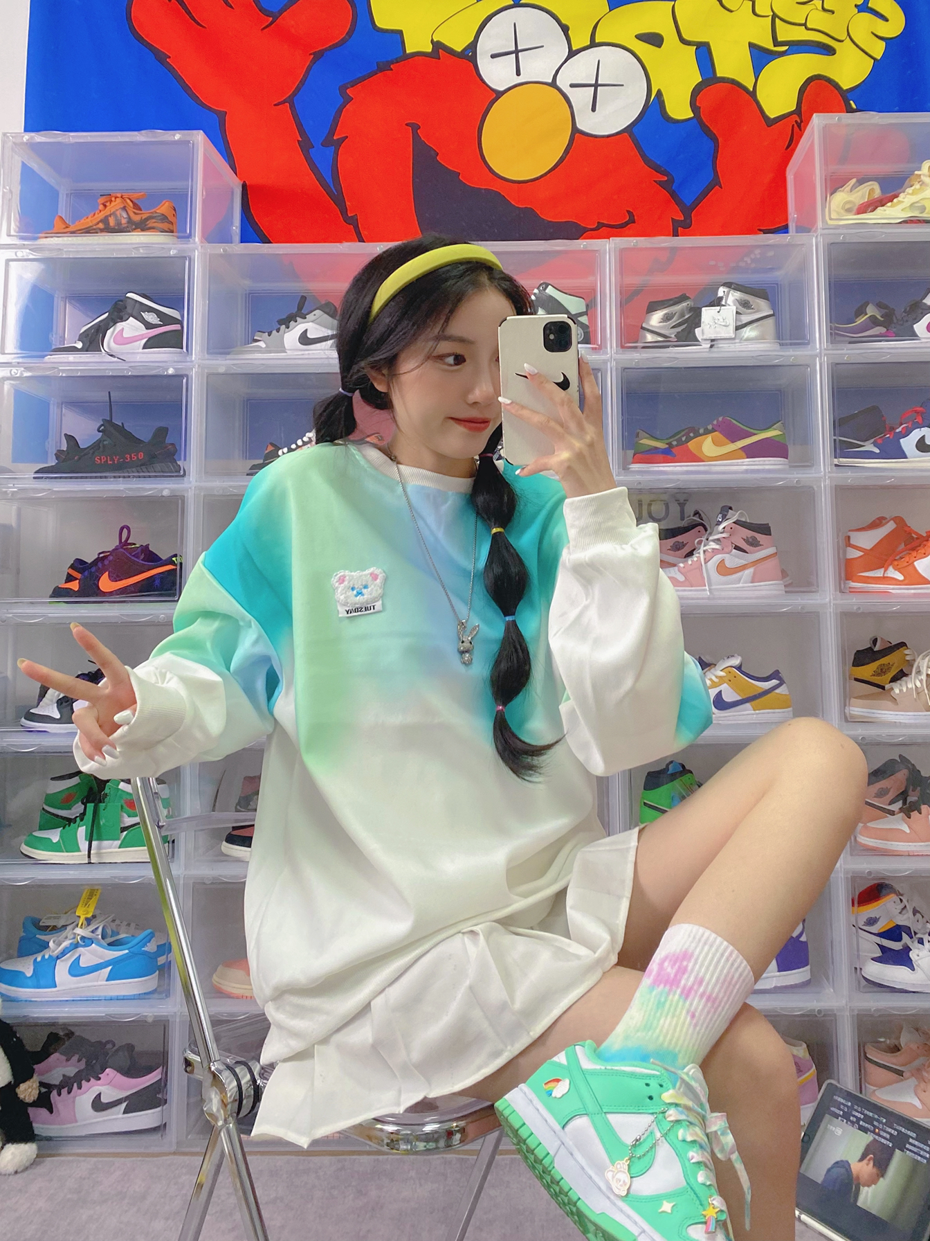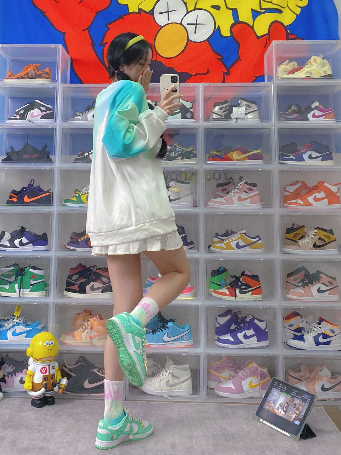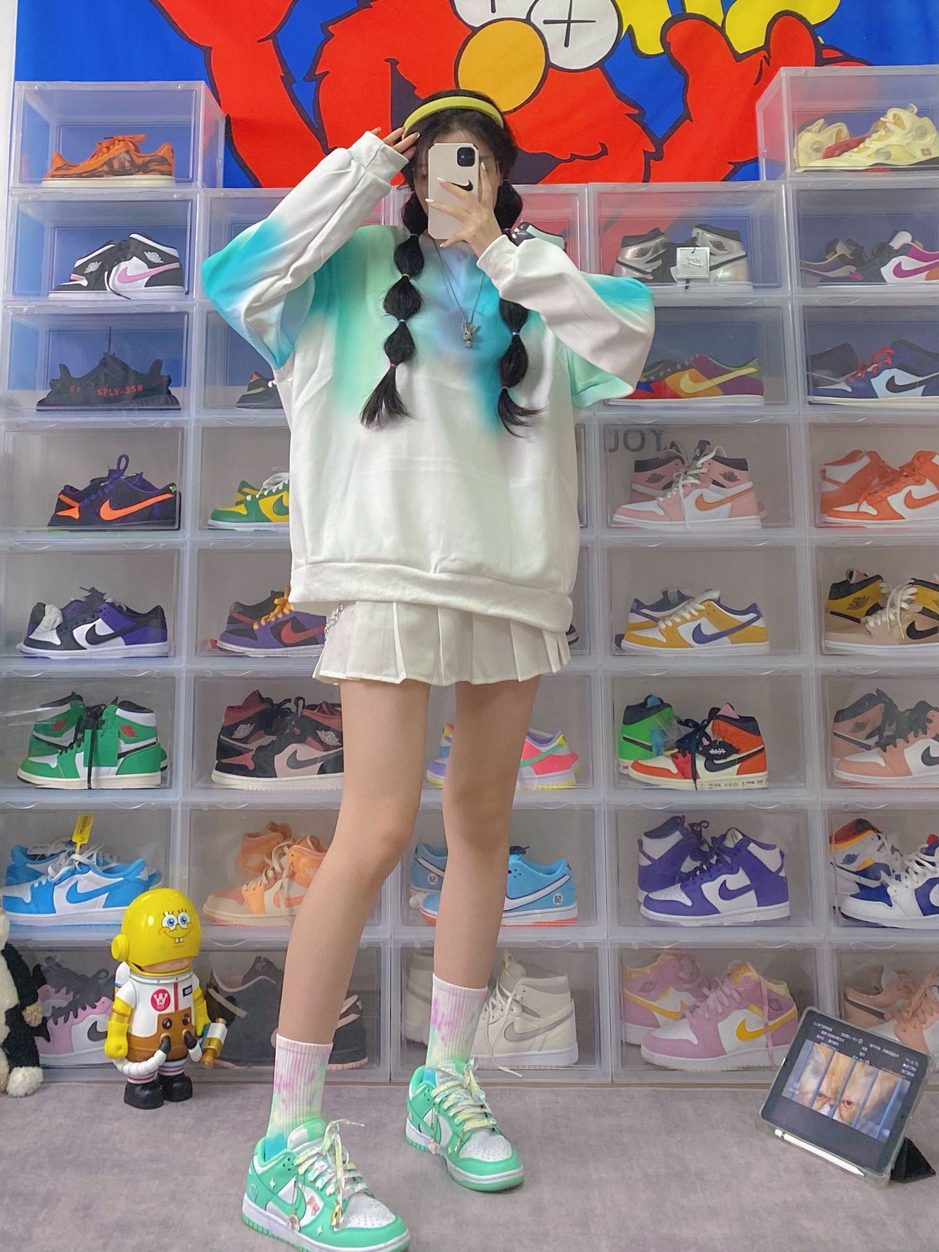 👕:neresum 🧦:麦左(白日梦少女系列) 👟:dunk 蒂芙尼绿 鞋带&鞋子配饰:US8 ACC 我爱住了这个配色!也太干净清爽~ 极光绿渐变上身超好看 减龄效果满满 袜子也是扎染渐变效果 这个白日梦少女系列 真的绝! 又给我的鞋子安了一些小配饰 整个少女心满满!