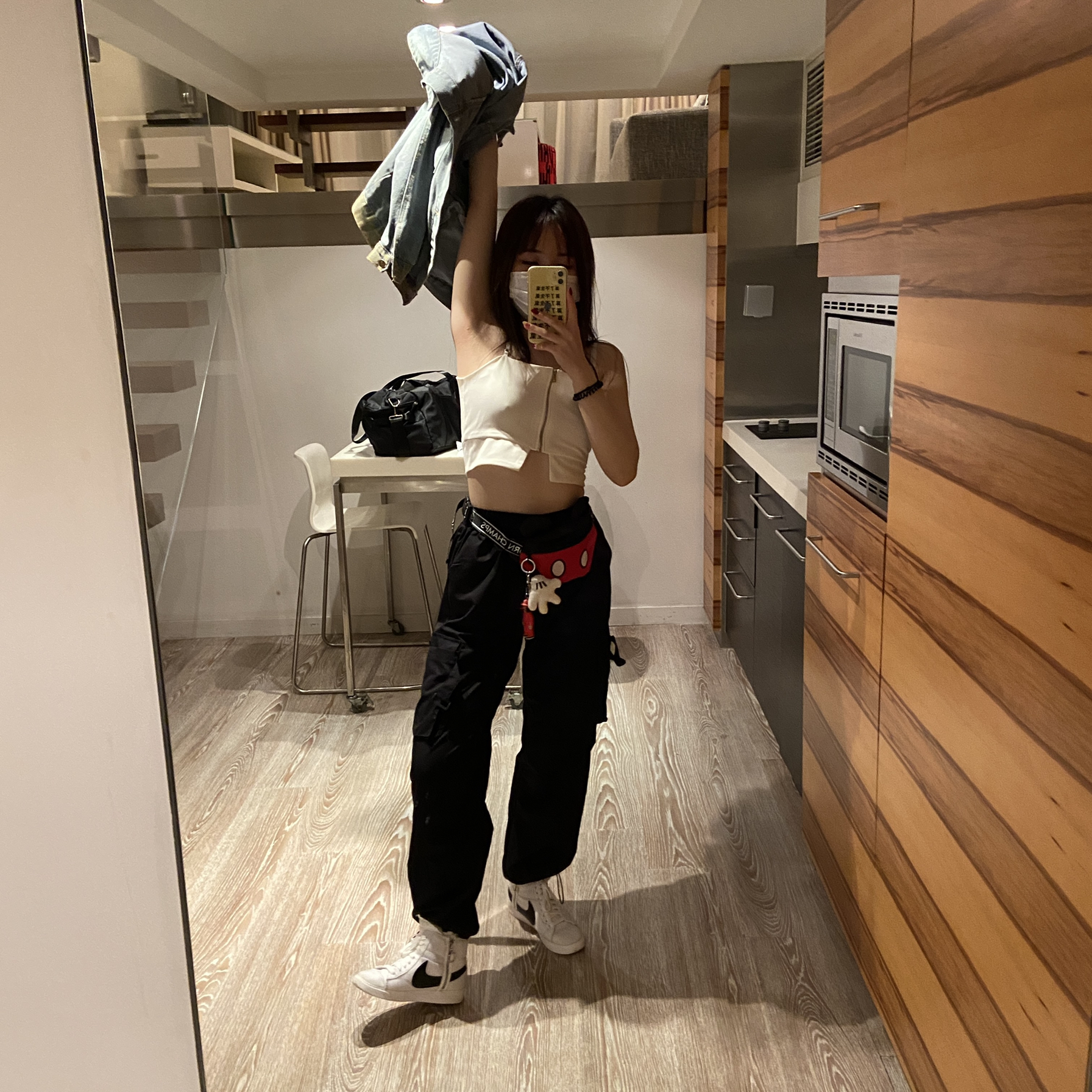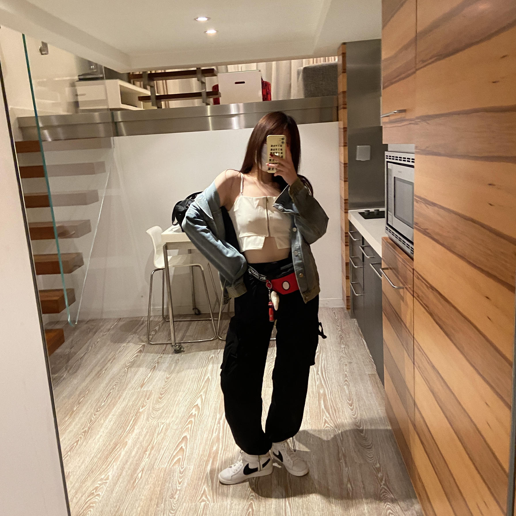 今日穿搭介绍(品牌|款式):wtaps 2021ss 💰搭配心得:内搭白色吊带甜酷辣妹! 🛒单品推荐:m码