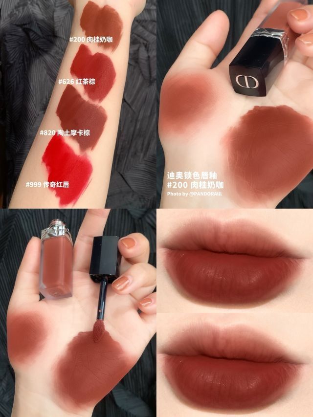 哈喽啊姐妹们!!! 今天是重磅💣!哈哈哈哈 来分享迪奥家最新上市的锁色唇釉!! 这波新品我真的是爱了爱了!!每一支都好看!! 这次的唇釉真的超锁色!是哑光质地的! 上嘴很舒服!!不厚重!不沾杯!! 显色度和持久度都在线[扯脸H] Dior不愧是你~~ (后面有全系列试色!!!往后翻一下!!!) ——‼️ #200 肉桂奶咖 这支是那种土色系的!特别高级!特别显气质!!我最近天天在涂!哈哈哈哈[扯脸...