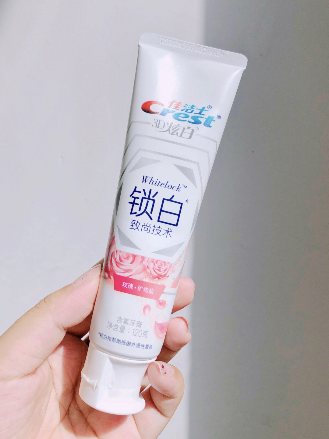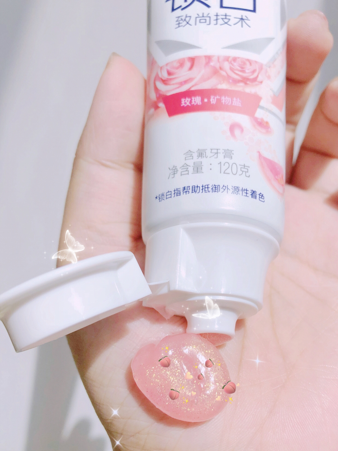 佳洁士锁白小白管牙膏真的好好看 我用的这款是玫瑰盐的 还有樱花和竹炭的 包装就是嫩嫩的 挤出来的牙膏也是blingbling的少女粉 里面还有细闪 简直美💥了!!! 💓 牙膏里面加了玫瑰🌹精油和矿物质盐 可以帮助我们的牙齿去牙渍、美 白牙齿 闻起来也是淡淡的玫瑰花香 刷牙的时候就像给牙齿做spa一样~ 💓 用它刷完的牙齿又白又亮 口气也清新了 说话的时候都是香香的~ 涂什么口红都好看~ 真的是一支...