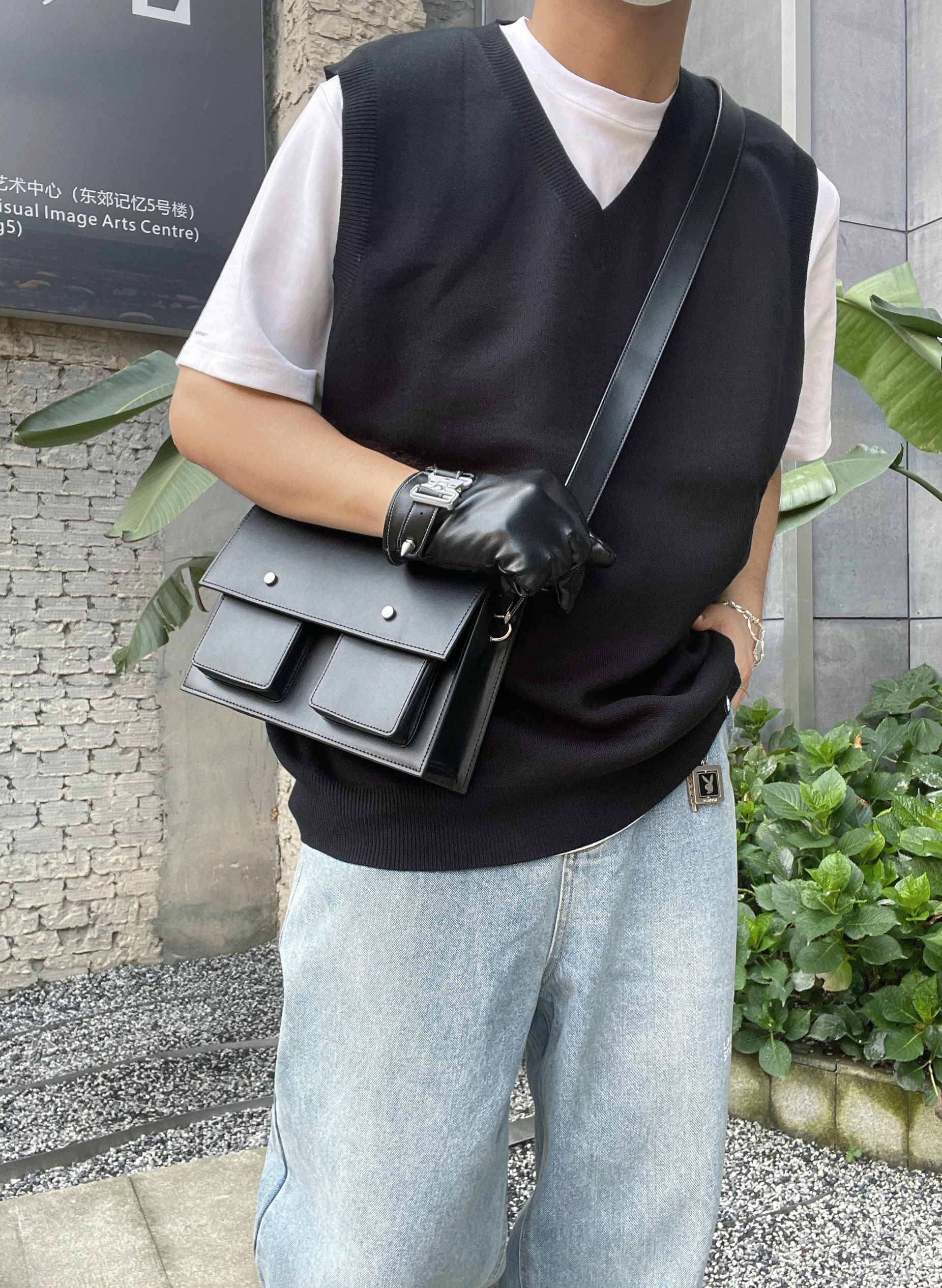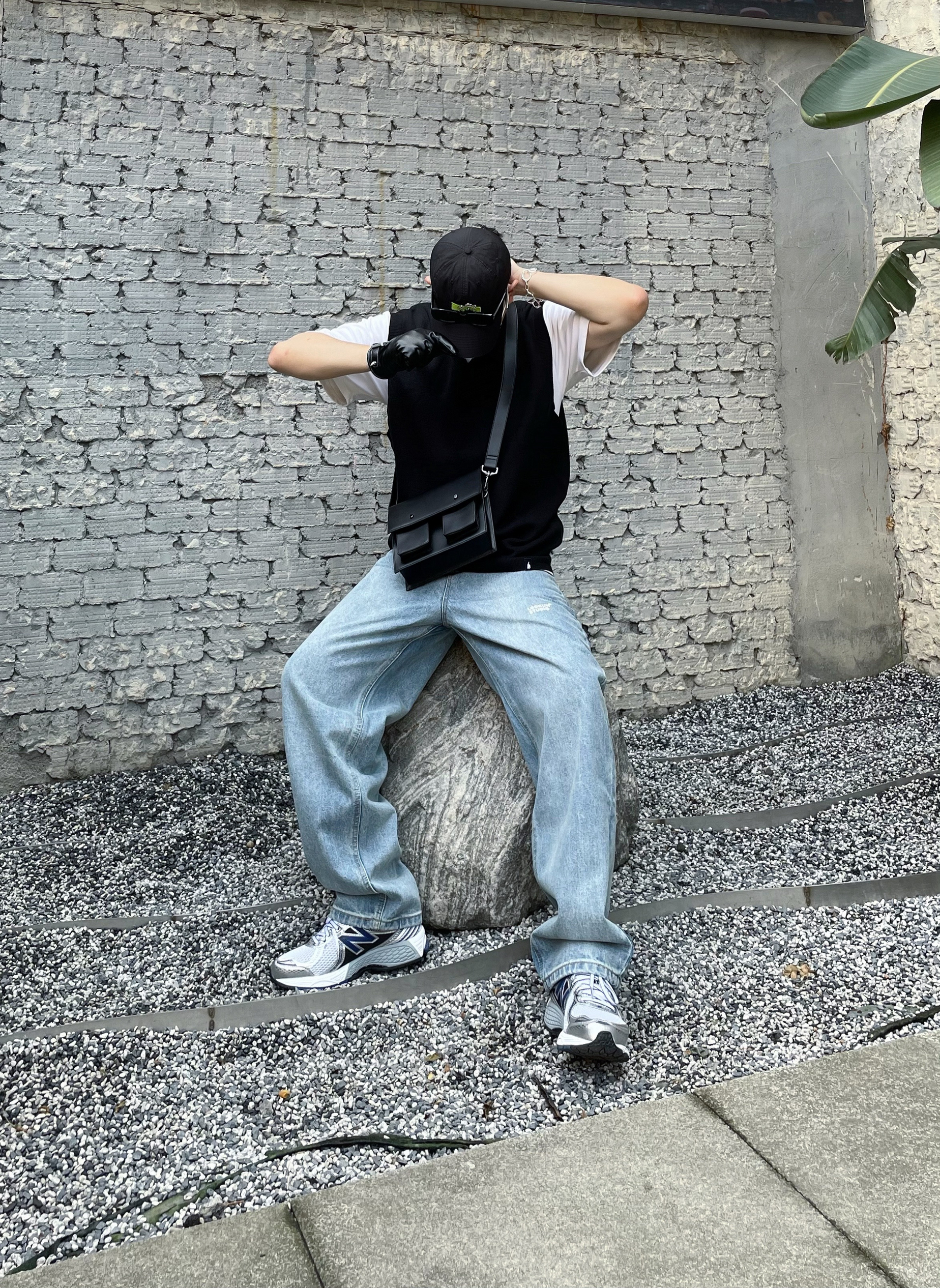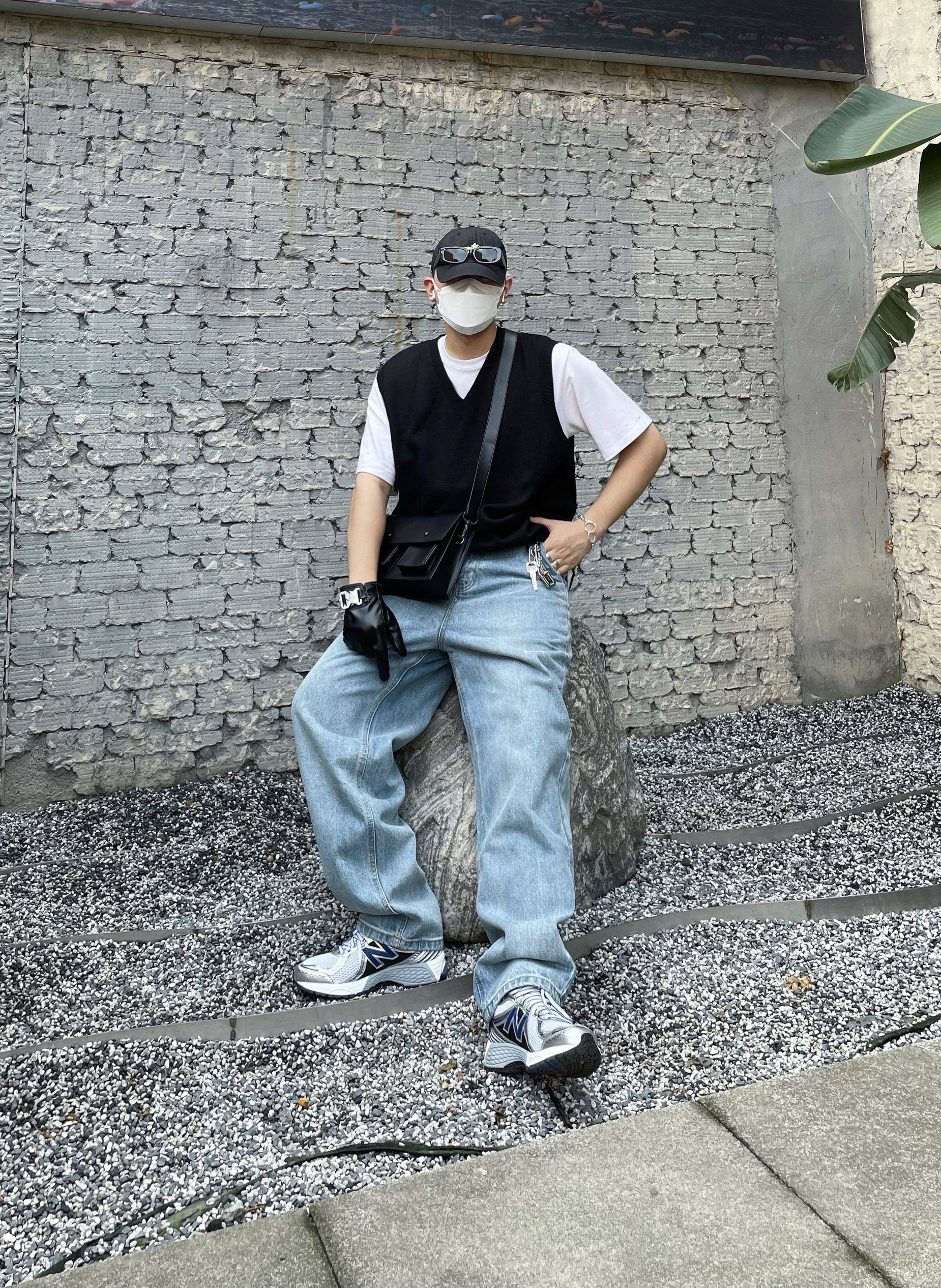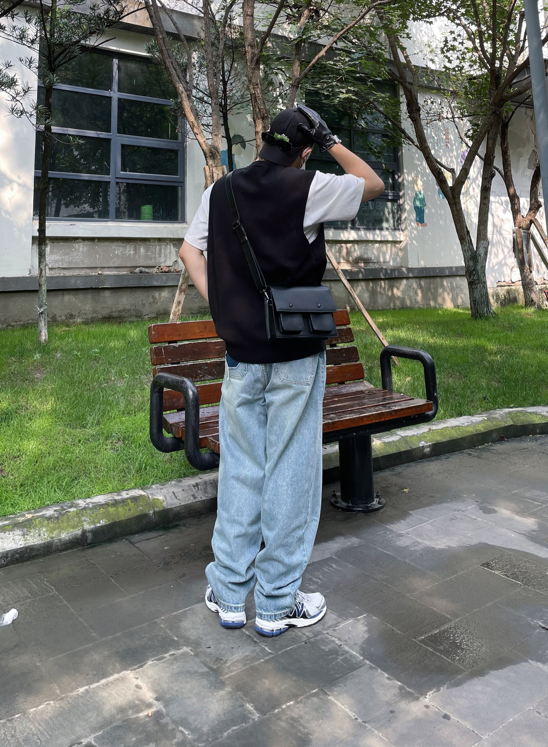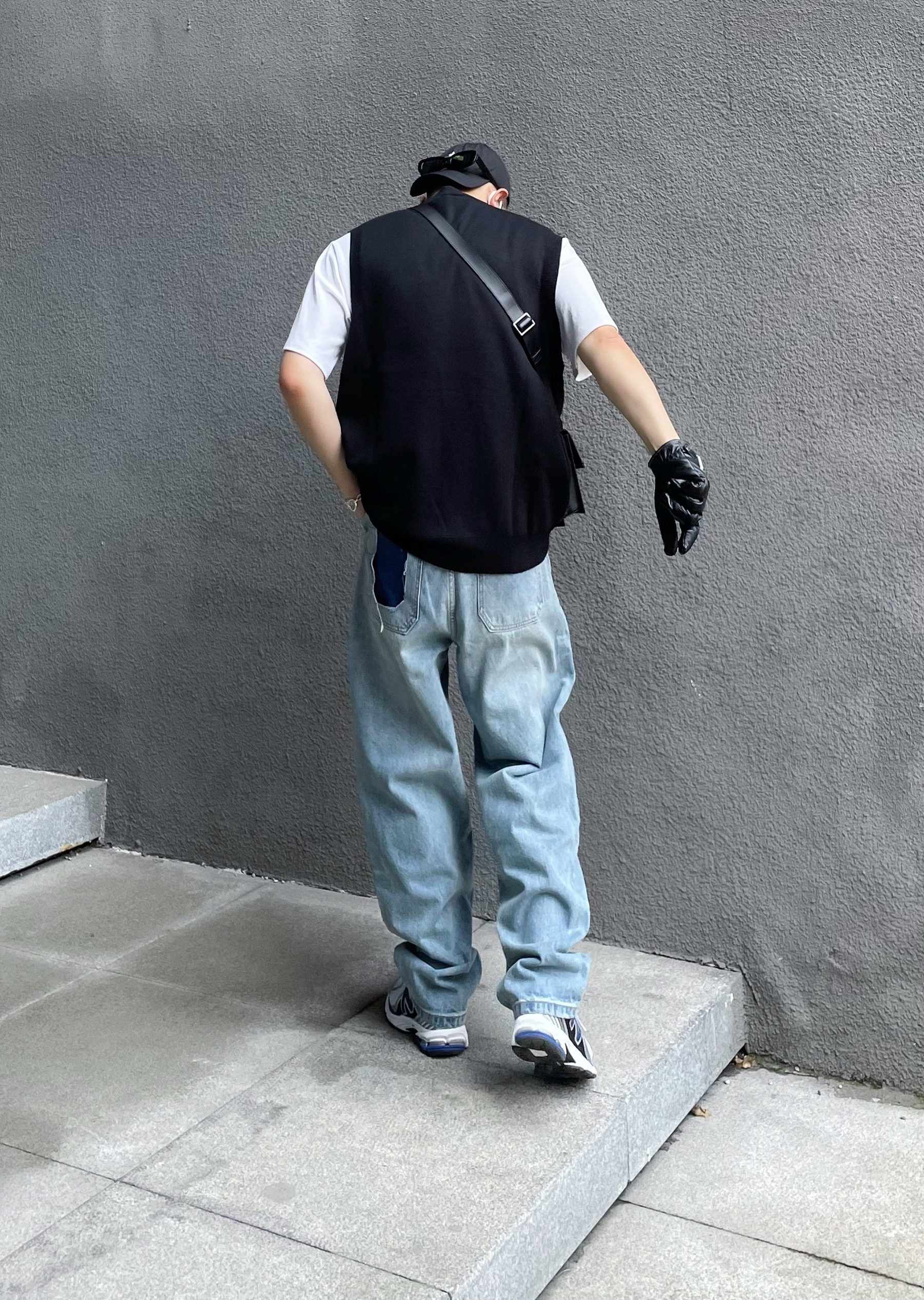 /今天想穿成校园偶像剧男主和你偶遇,韩系的男生搭配怎么穿?来看看吧~ /色彩选择上用水洗贴布牛仔裤+白T恤打底,干净清爽第一步;层次感的衔接则需要使用马甲这类单品,白tee黑马甲是最简约也是最高级的选择,V领的马甲也会更凸显人的气质;细节上小挎包和复古跑鞋是标配,棒球帽和墨镜一卡上,氛围感也就自然随之而来~get~ 👔: 物空 LOOKUN 👖: 物空 LOOKUN 🎩: New Era...