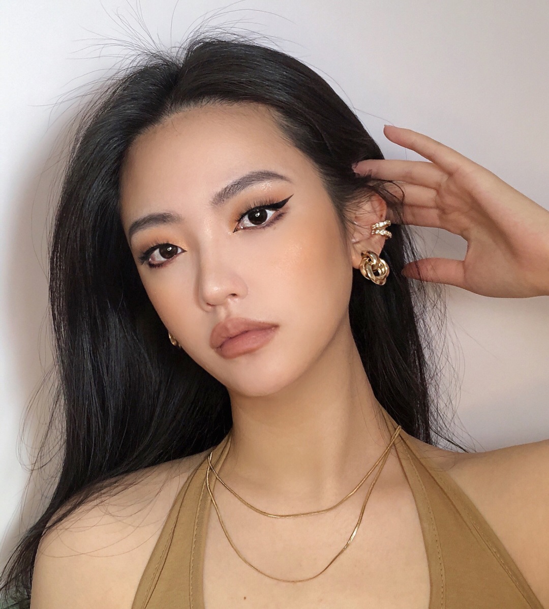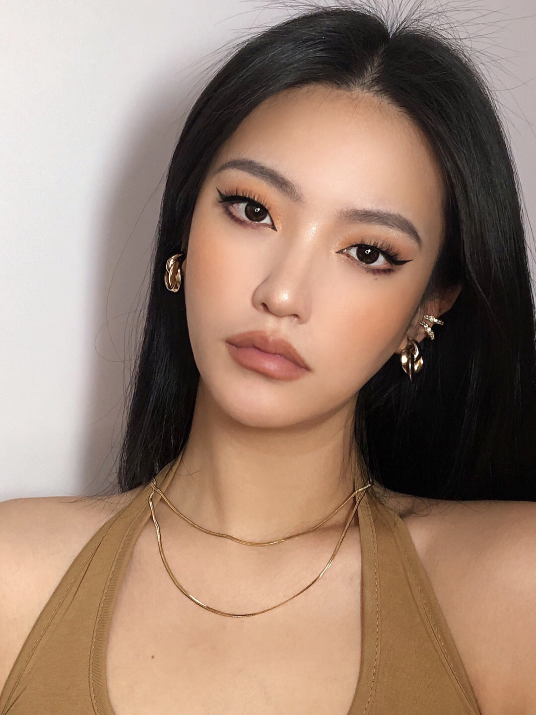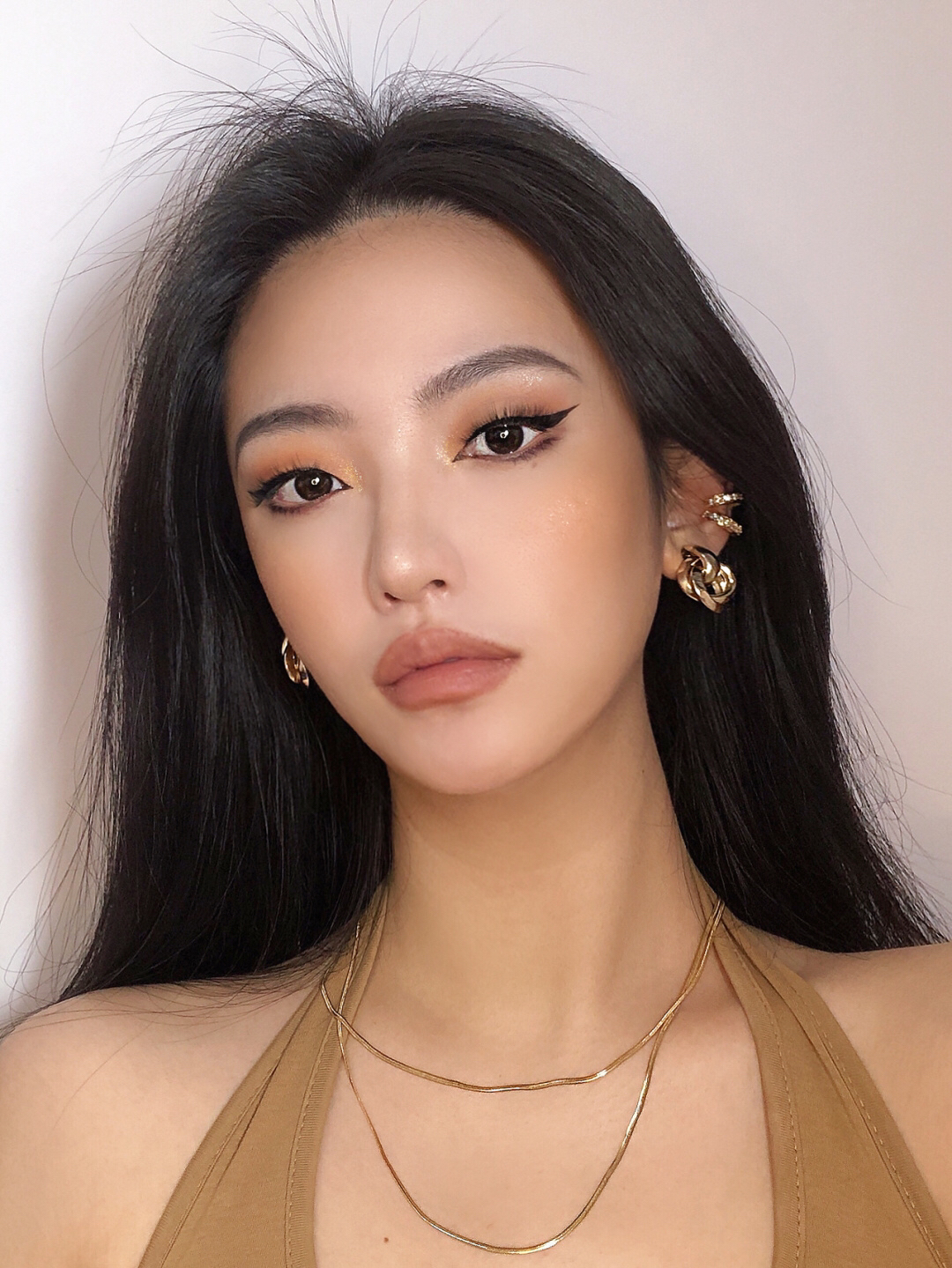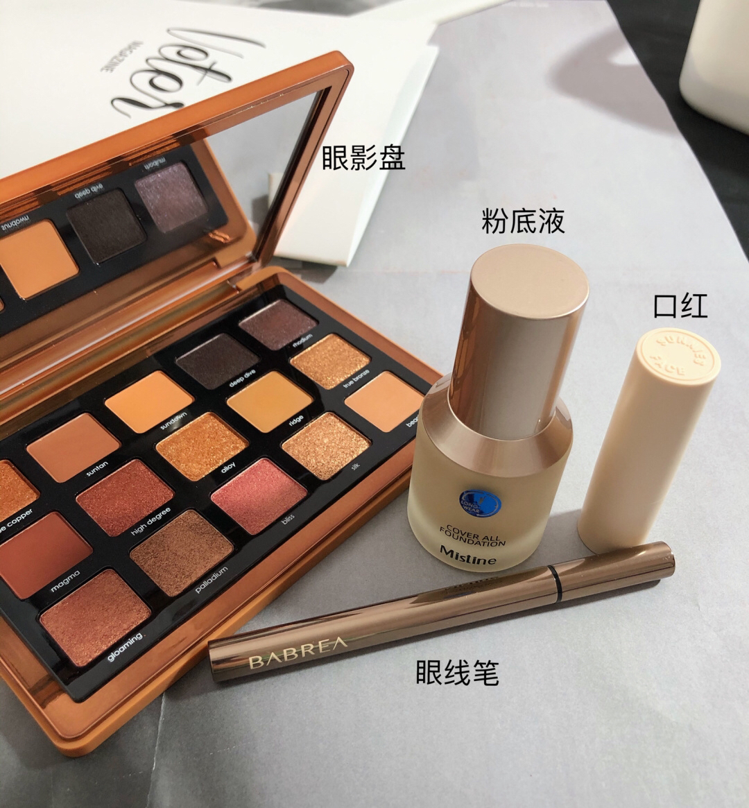 眼影教程放图四啦 ▪️眼影盘:ND古铜盘~棕橘配色美绝 对于新手也不难上手✌🏻️ ▪️粉底液:蜜丝婷Mistine 用了两个色号 浅色LF110面中提亮🤗深点的NN120加深轮廓遮瑕力/持妆都不错! ▪️口红:SunniesFace 是纯正的裸棕色🤎高级有质感 喜欢裸色口红的宝贝可以一试 准没错 ▪️眼线液笔:芭贝拉 项链:VITALY DESIGN