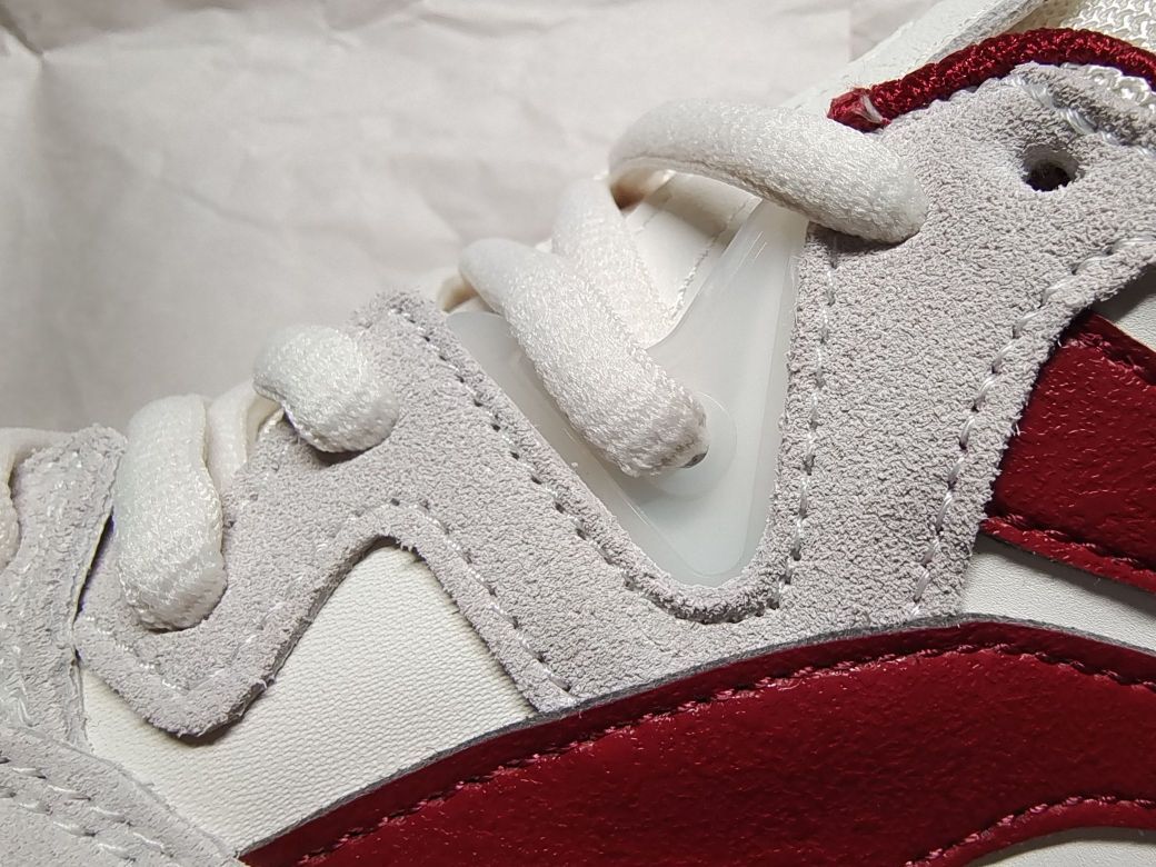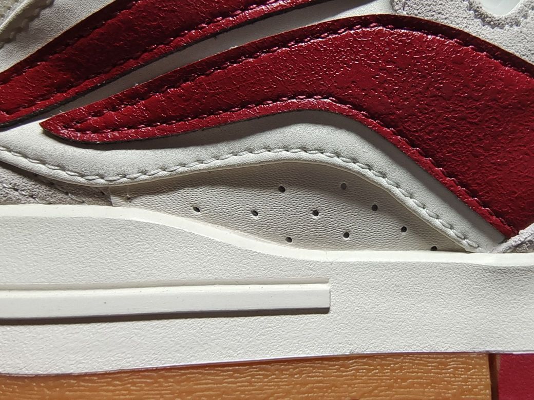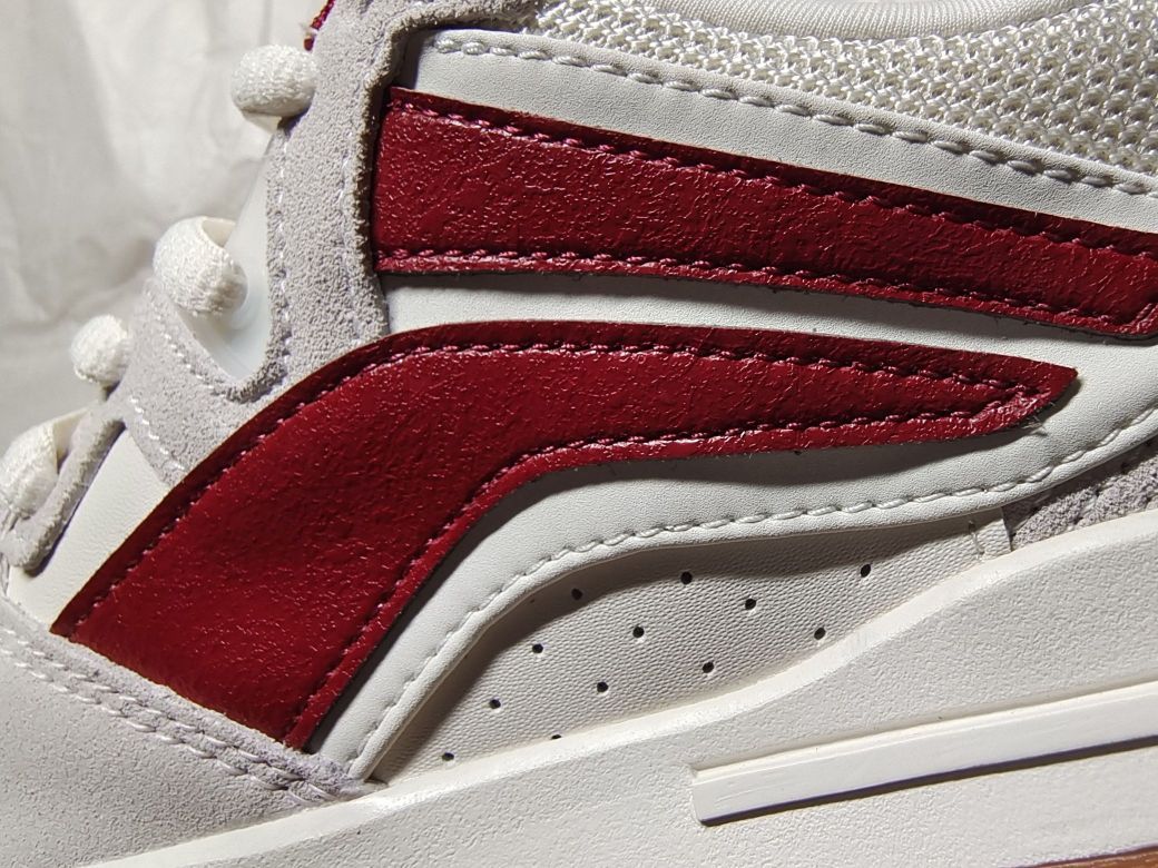 发售时间:2021夏 发售价格:599💰 入手价格:572💰 识货价格:500💰~700💰(全尺码) 这款鞋面材质以皮革和翻毛皮为主,厚鞋舌双鞋舌,鞋带为扁鞋带。与前段时间发售的纯白生胶款不一样的是,logo、后跟以及外底中端用大红渲染,相比纯白这款白红在视觉上更有层次。 在细节方面,第五个鞋带孔换成了乳白色的tpu材质,不仔细看的话还不太容易发现。在鞋身两侧李宁logo的下方,增加了透气孔。防侧...