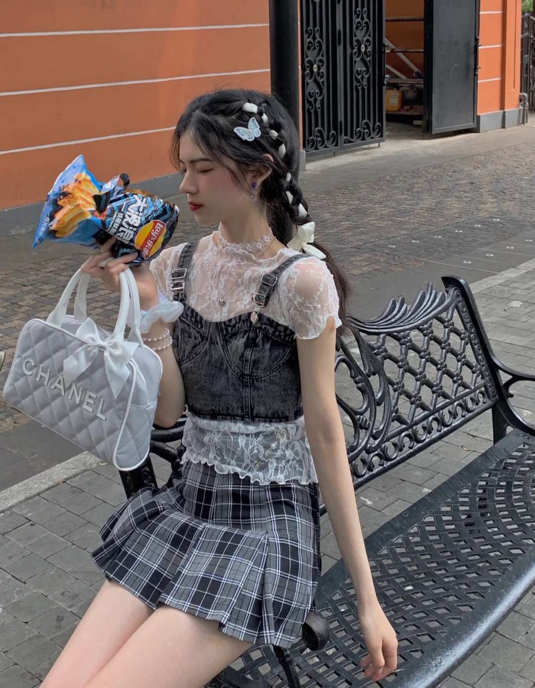 辣妹棋盘格吊带也太野了!上身秒变辣妹,又带着甜度,约会也很合适哦。