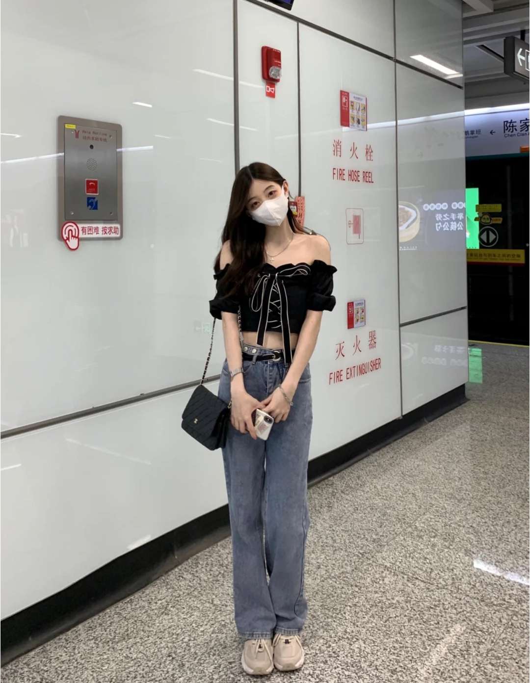 胸前的蝴蝶结设计很仙,和牛仔阔腿裤搭在一起又甜又辣小个子穿,真的绝!