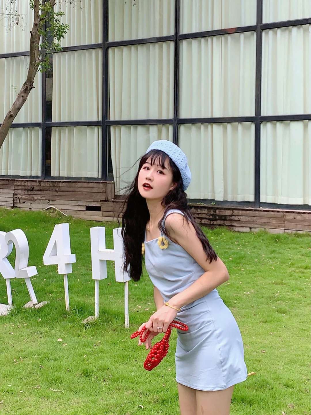 夏日奶蓝yyds! ! ❤超好看的小裙子,腰身上的褶皱设计很显瘦,宽肩带的设计特显锁骨,配上同色系的贝雷帽是妥妥的公主范。穿上这条裙裙去约会让男朋友移不开眼! !