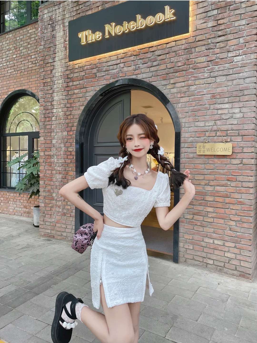 白色系的穿搭会给人一种温柔的感觉,这套上身就很小众高级,辣妹的衣橱必须要有这套!搭配珍珠编发,纯欲中又带点甜甜的感觉,满满的女团风,各种场合都能hold住!