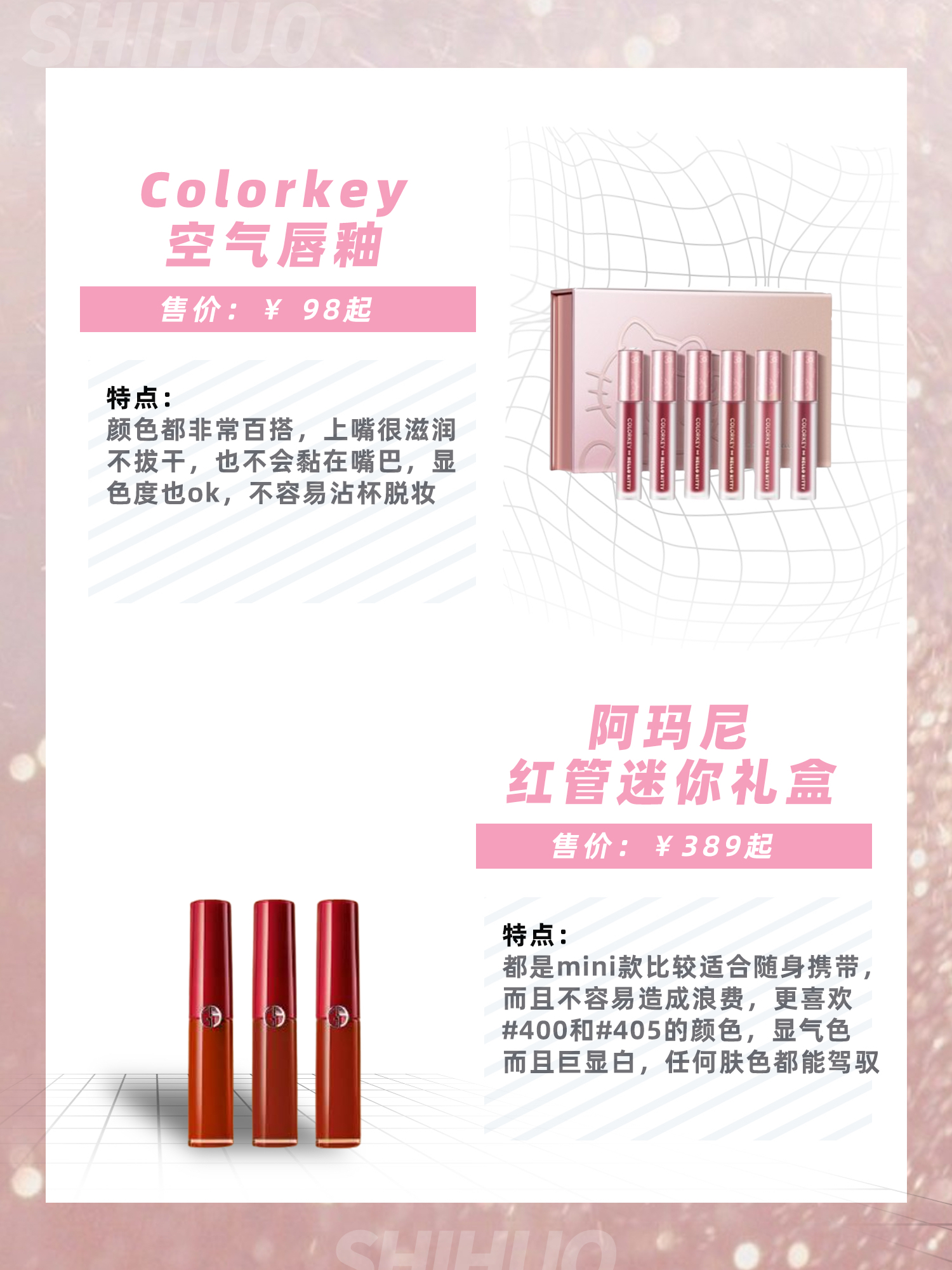 本篇笔记关联了perfect diary/完美日记 小细跟口红礼盒套装 持久丝绒哑光 L02+L03+L04、colorkey/珂拉琪 HELLO KITTY 空气唇釉6支装礼盒 1g*6 粉力出圈礼盒、CL/路铂廷 女王的权杖 三支礼盒装 001M+007M+005M等商品,为用户提供真实的使用体验和购买参考。