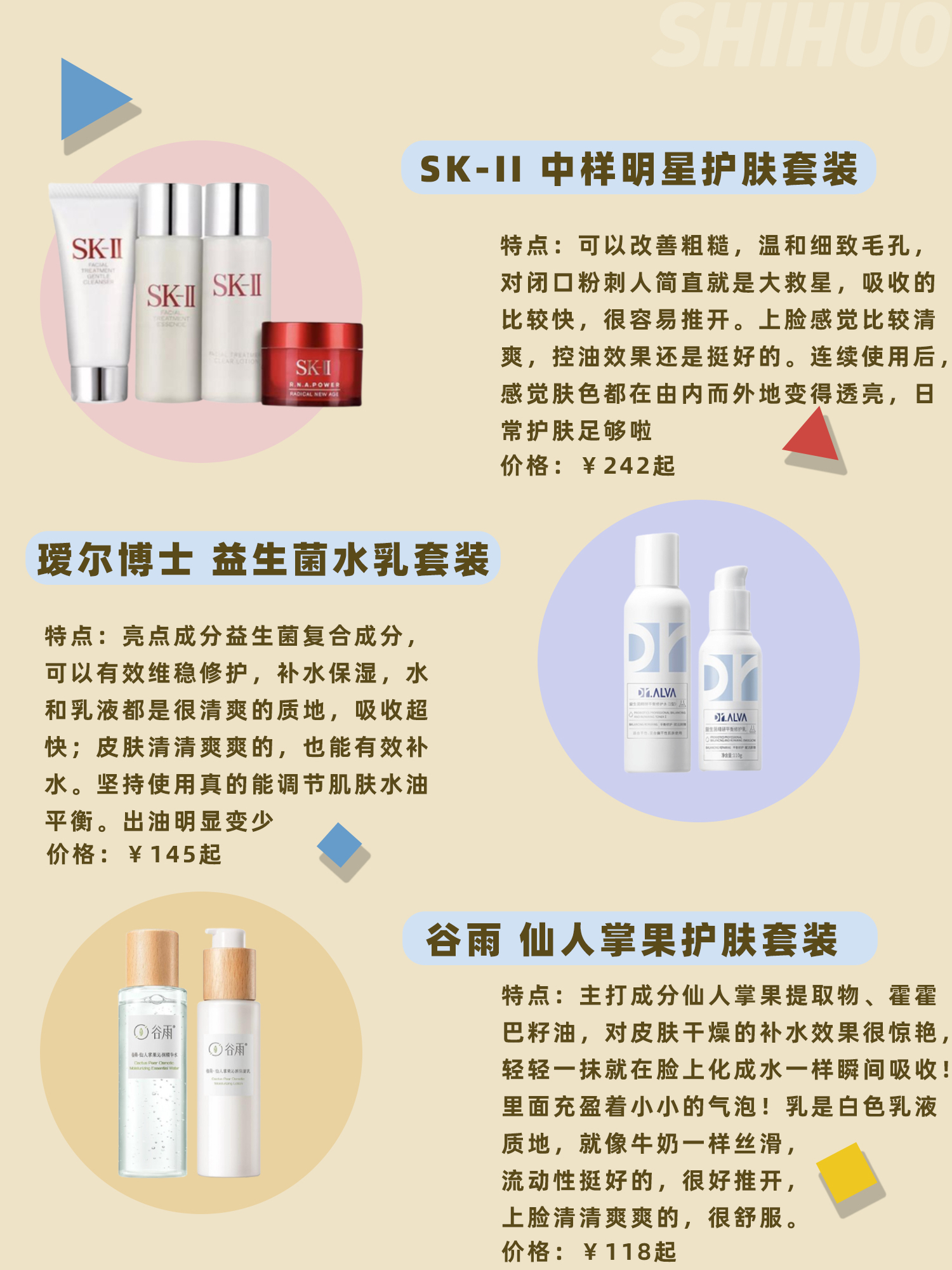 "谁说男生不用精致?有的男生不注重面部的清洁,面部油光满面,看起来就会很粗糙;而有的男生面部没有痘坑痘印,面部细腻光滑,看起来就会很精致。男生可以不时尚,但是不能不干净利落,男生的脸干干净净的约会的时候心情也会upupup! 1.SK-II 中样明星护肤套装 ¥242起 可以改善粗糙,温和细致毛孔,对闭口粉刺人简直就是大救星,很容易推开。上脸感觉比较清爽,控油效果还是挺好的。感觉肤色在由内而外地变...