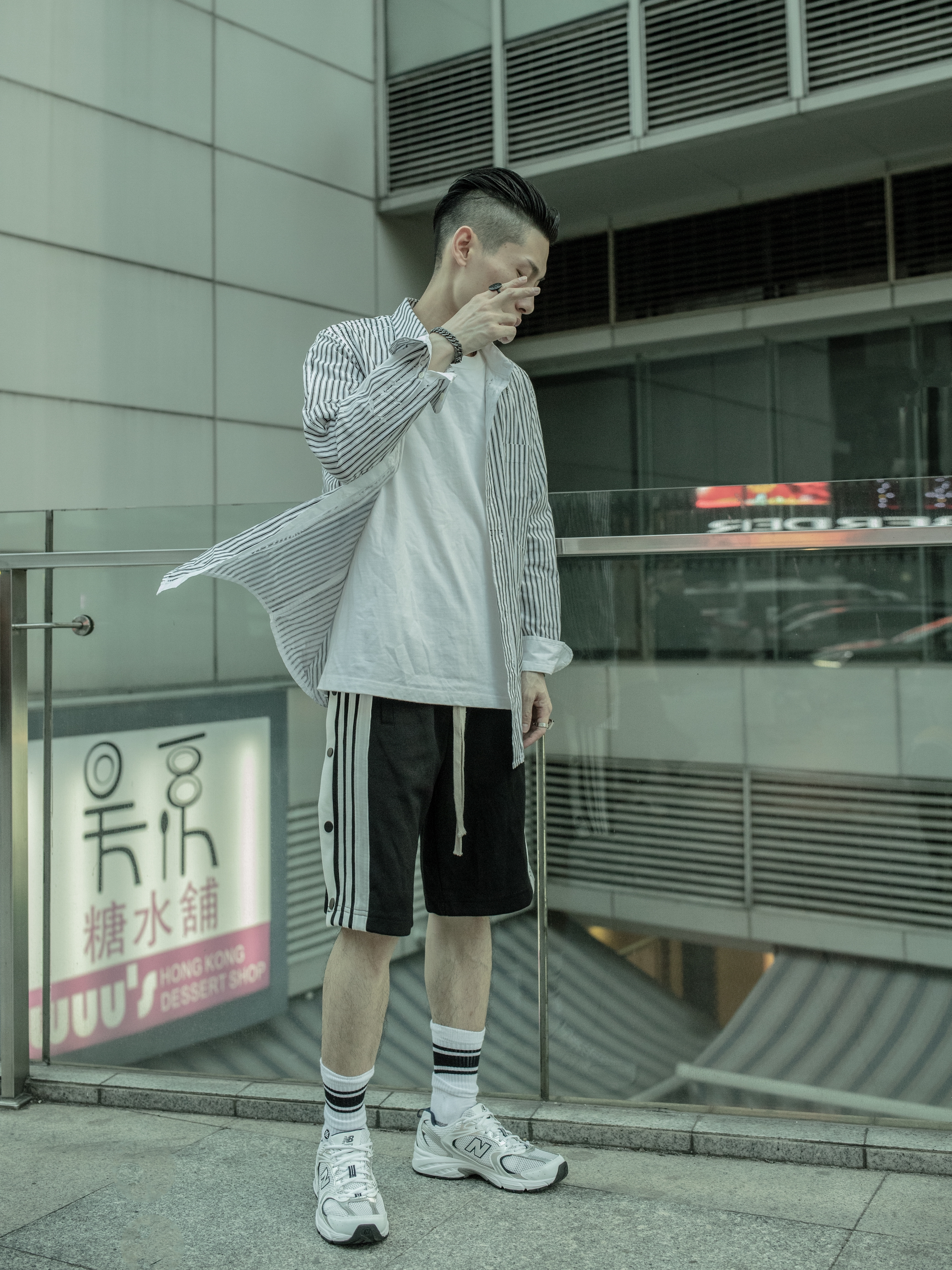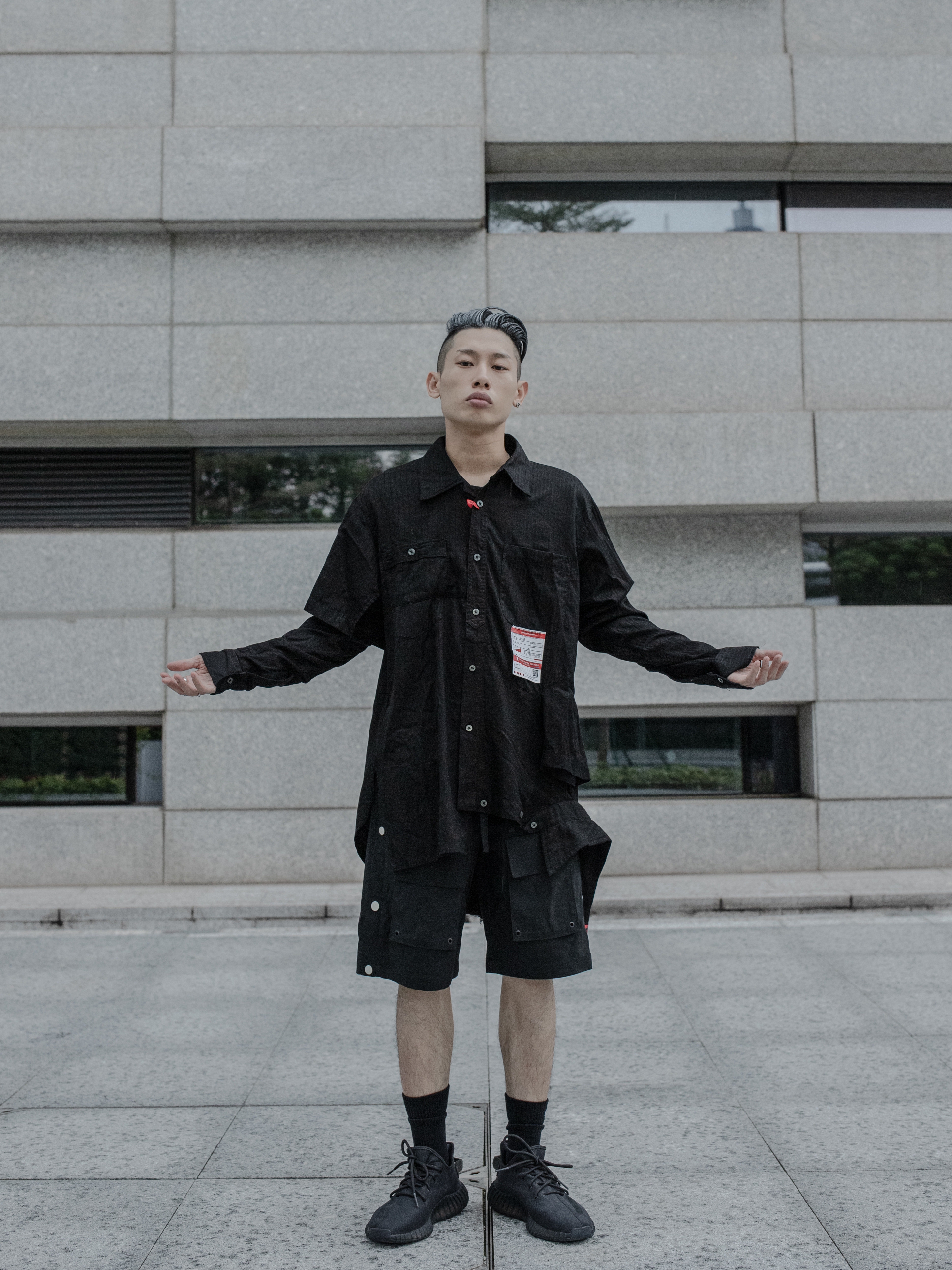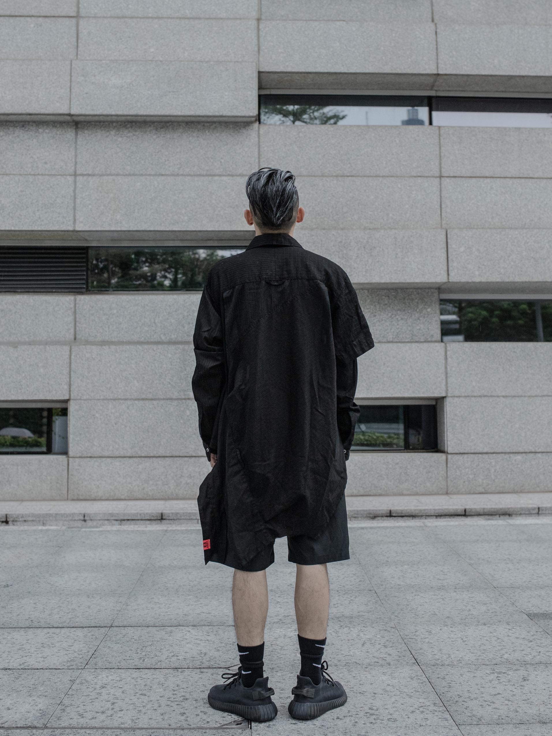黑色总给人一种优雅和冷酷感~ 说到玩不规则剪裁和拼接还是上身这件“MADE IN JAPAN”的黑衬衫~🪐 为了让整体效果更加的有层次感这次特意搭配黑色排扣短裤而不是长裤~👑 🧦和👟还是都用了黑色去更好的营造“total black”效果🎓~ 👔:MIHARA 🩳:M5IS 👟:YEEZY 350 MONO