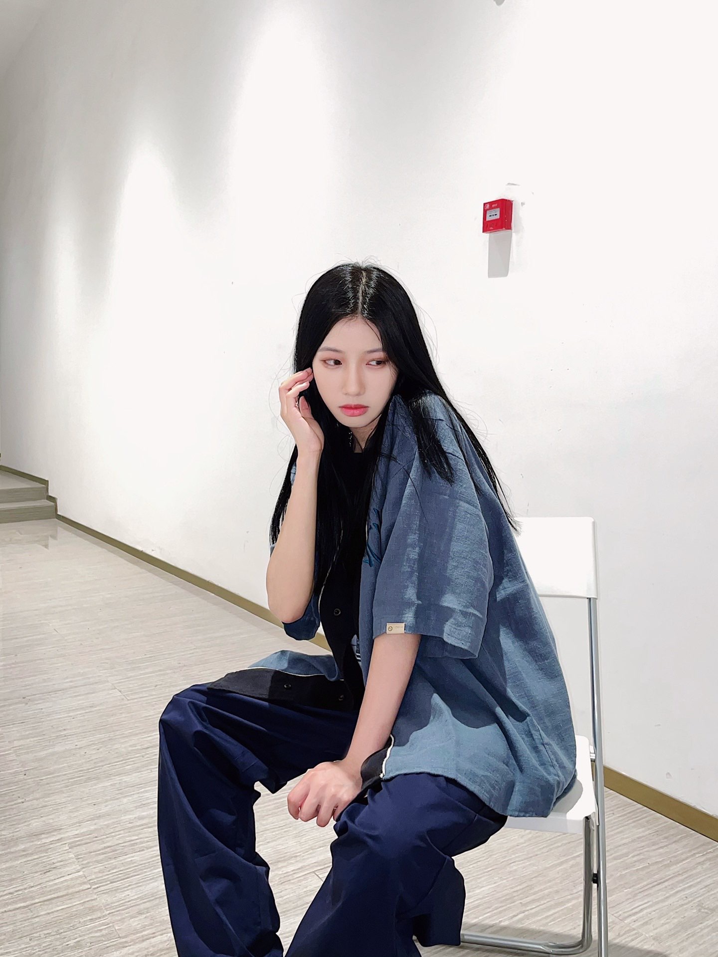 上身选择了#OSCill 的拼接麻衬衫,为oversize版型设计,用经典棒球衬衫的形态呈现,拼接的款式摸上去质感十足,下装选择了一条蓝色的工装裤,作为自然的过渡,最后搭配一双同色系的球鞋,和谐了整套穿搭~