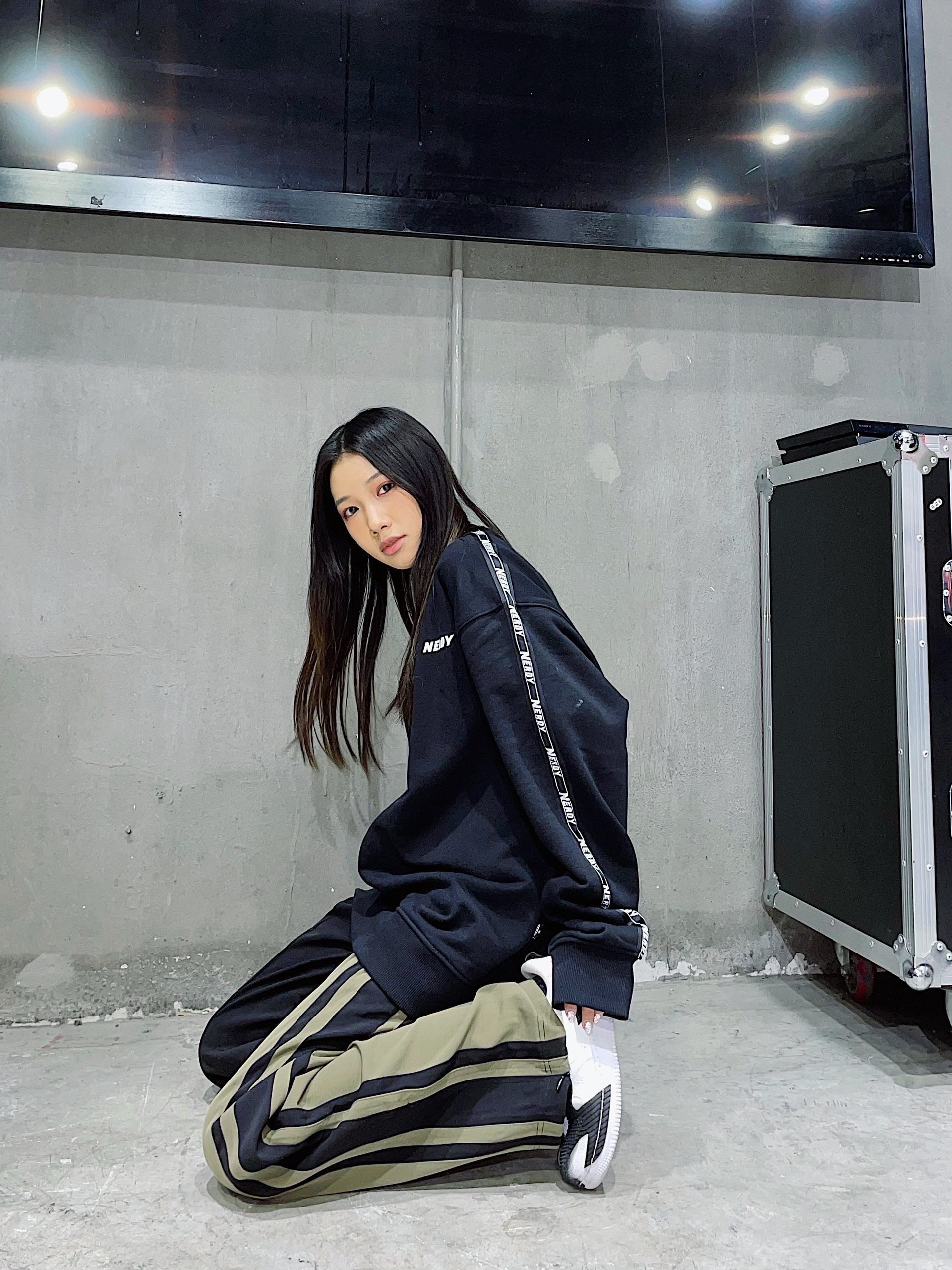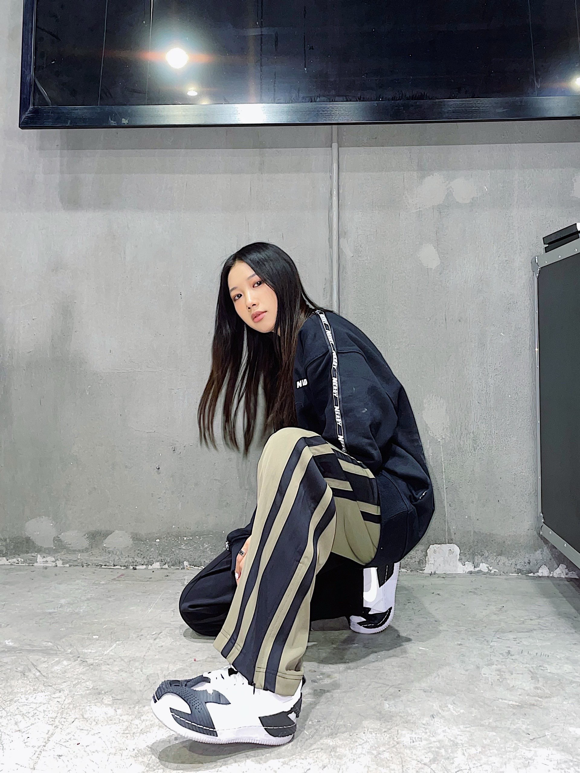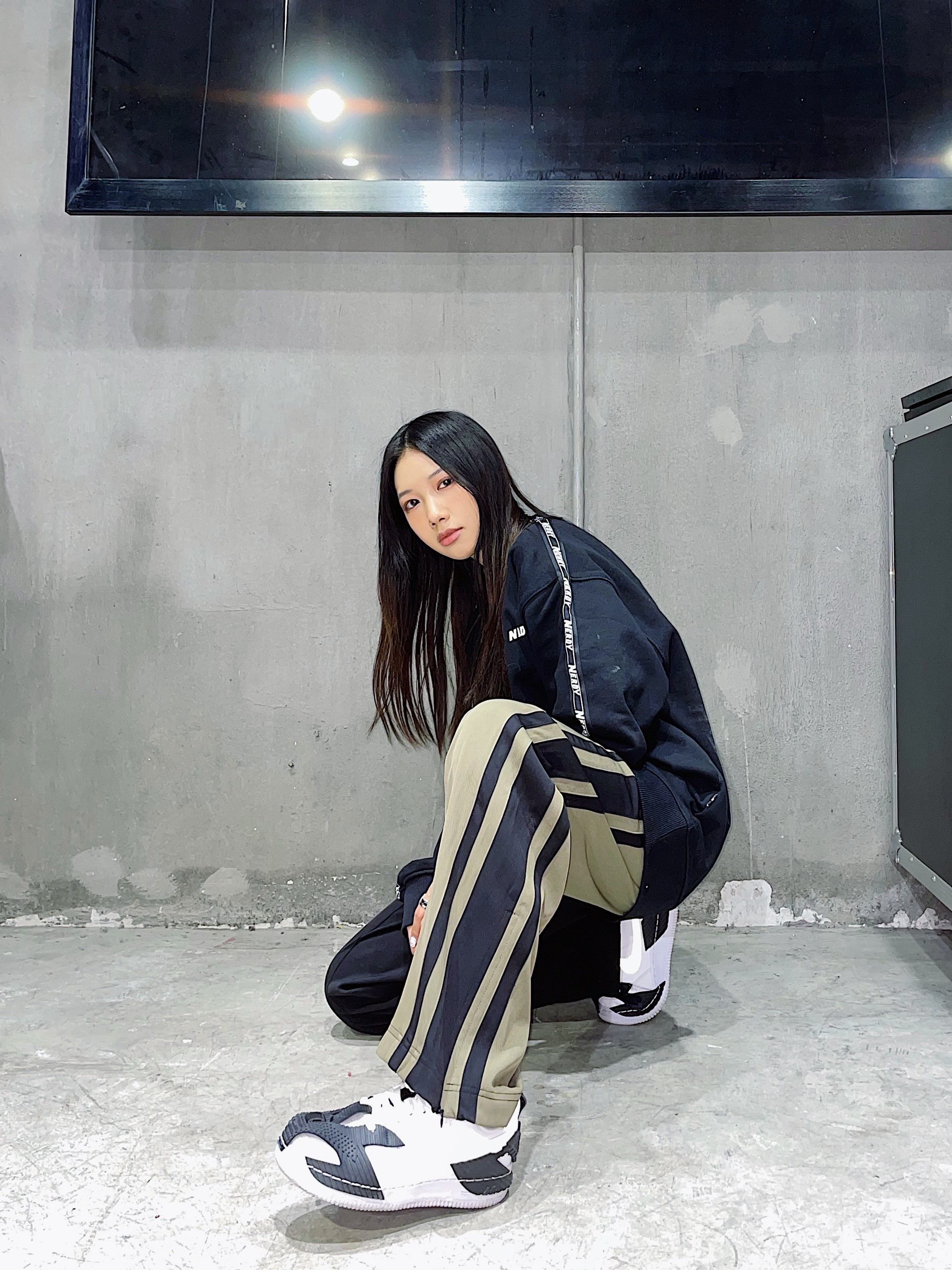 裤子:OCIC 简约的串标设计,上身妥妥的校园风,搭配上拼接的长裤,垂感裤型在裤脚处有了更进一步的延伸,在街头和日常通勤之间能随意切换~