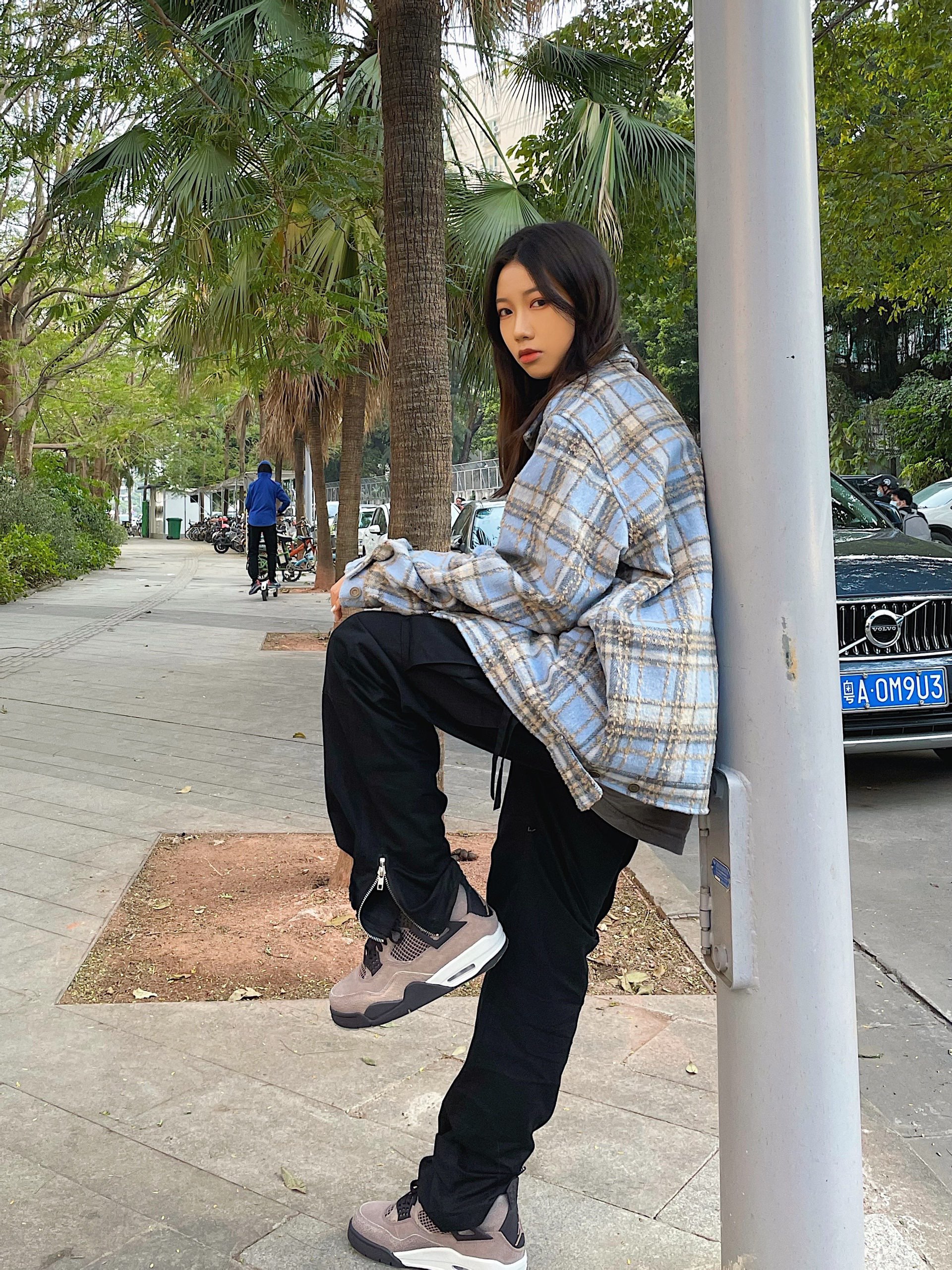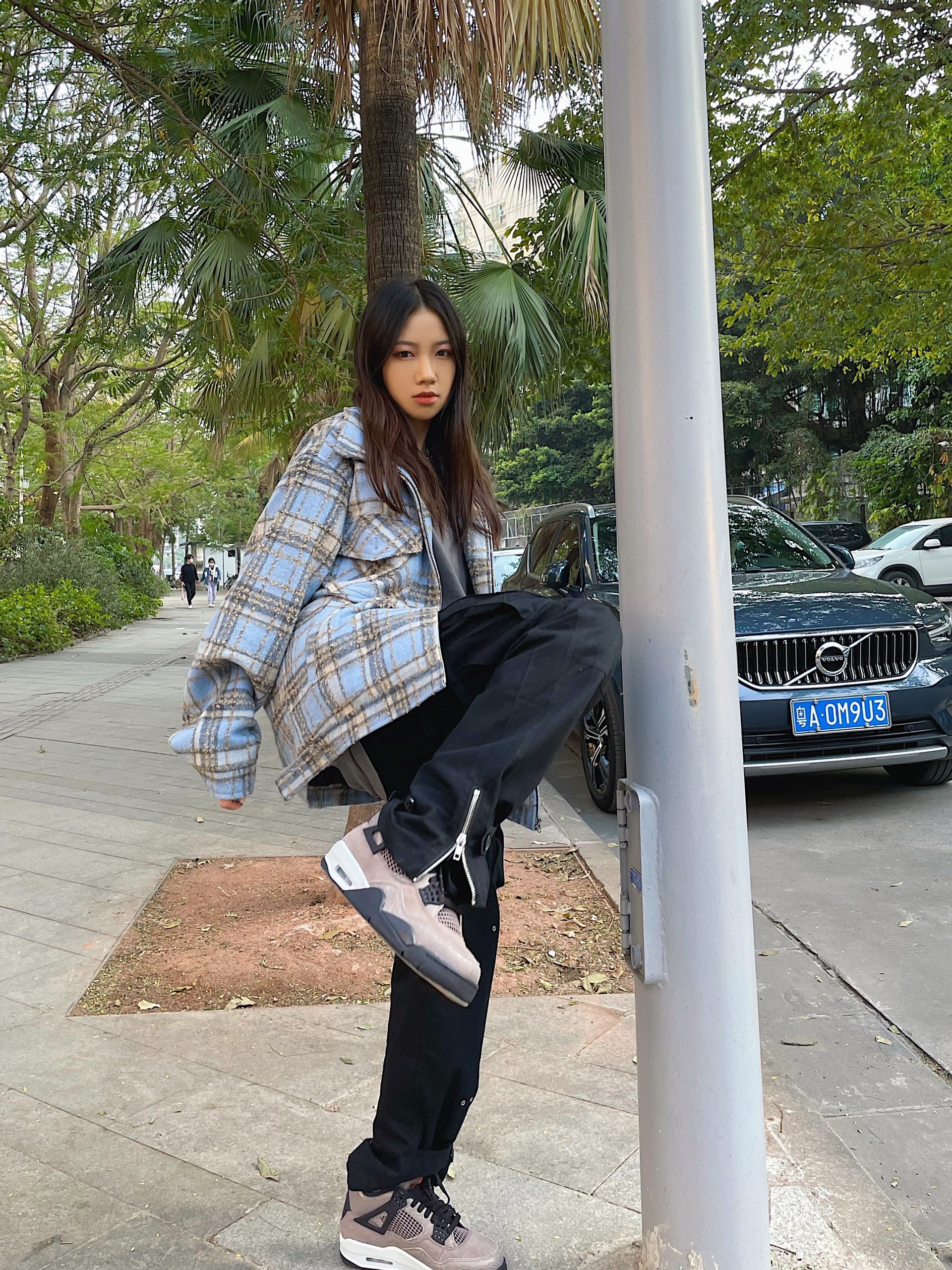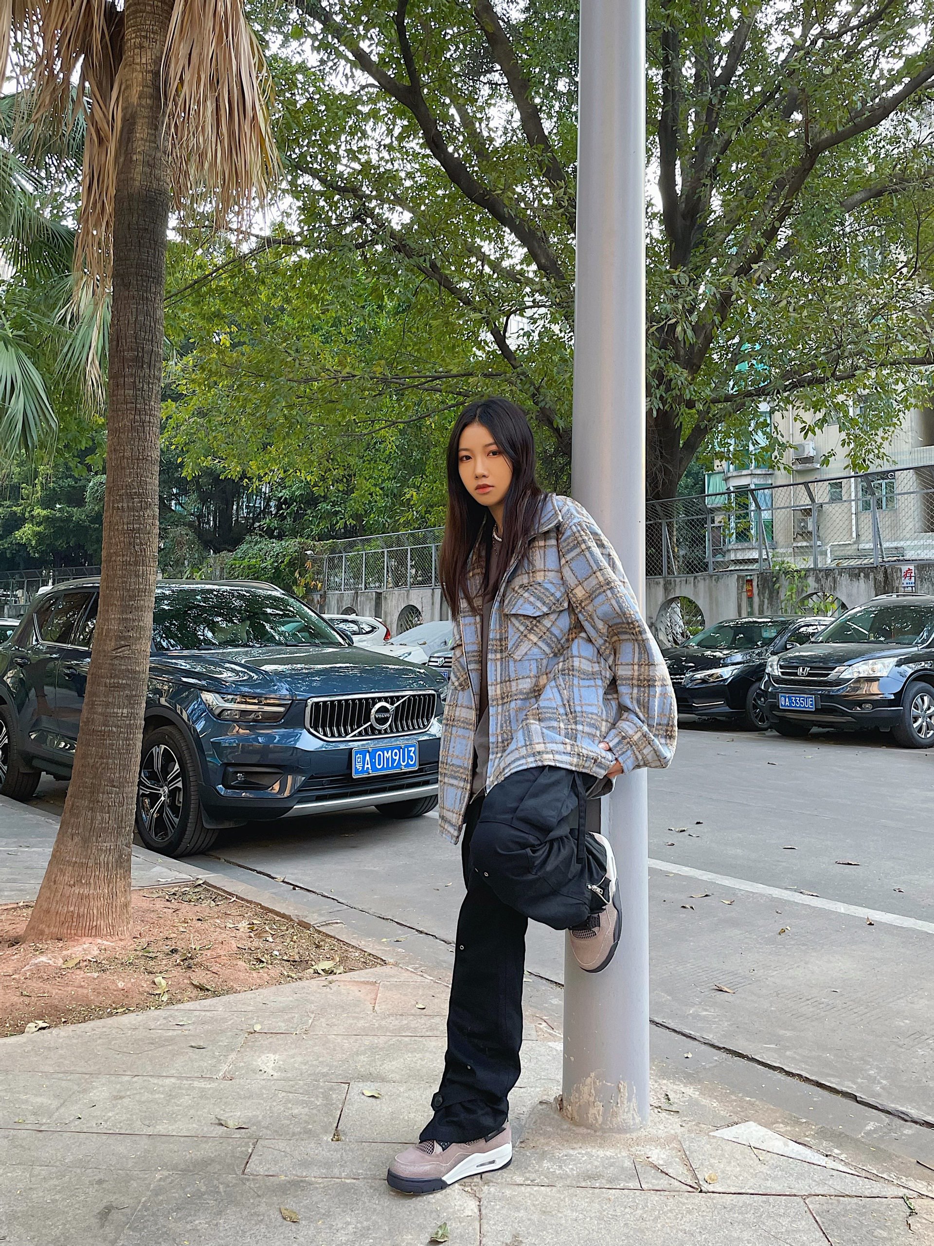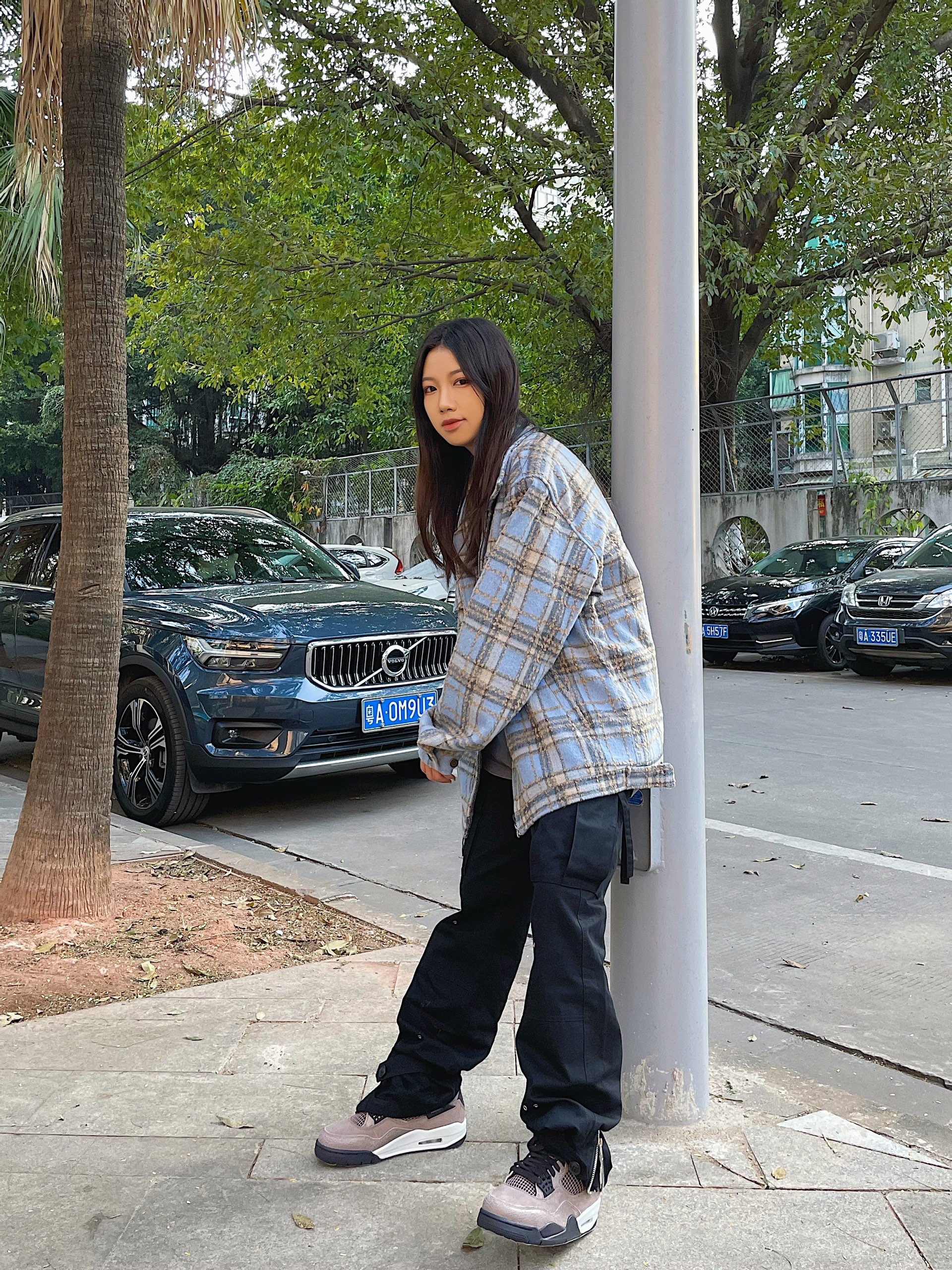 一入#Parasona 的坑就走不出来了,品控真的绝,买的每一件都好好看!格子外套上身就特别复古,灰蓝相间搭配的很高级,爱了爱了!裤子最近都有在穿,毕竟是陈学东同款滴,两边都有大口袋设计,很能装东西哟,裤边则是绑带及拉链式,vibe风满满~ 球鞋:AJ4 “Taupe Haze”#Nike 个人感觉是今年最佳的配色方案,鞋身整体以灰褐色为主调,彰显十足军事风的同时,大面积麂皮材质呈现高级质感。