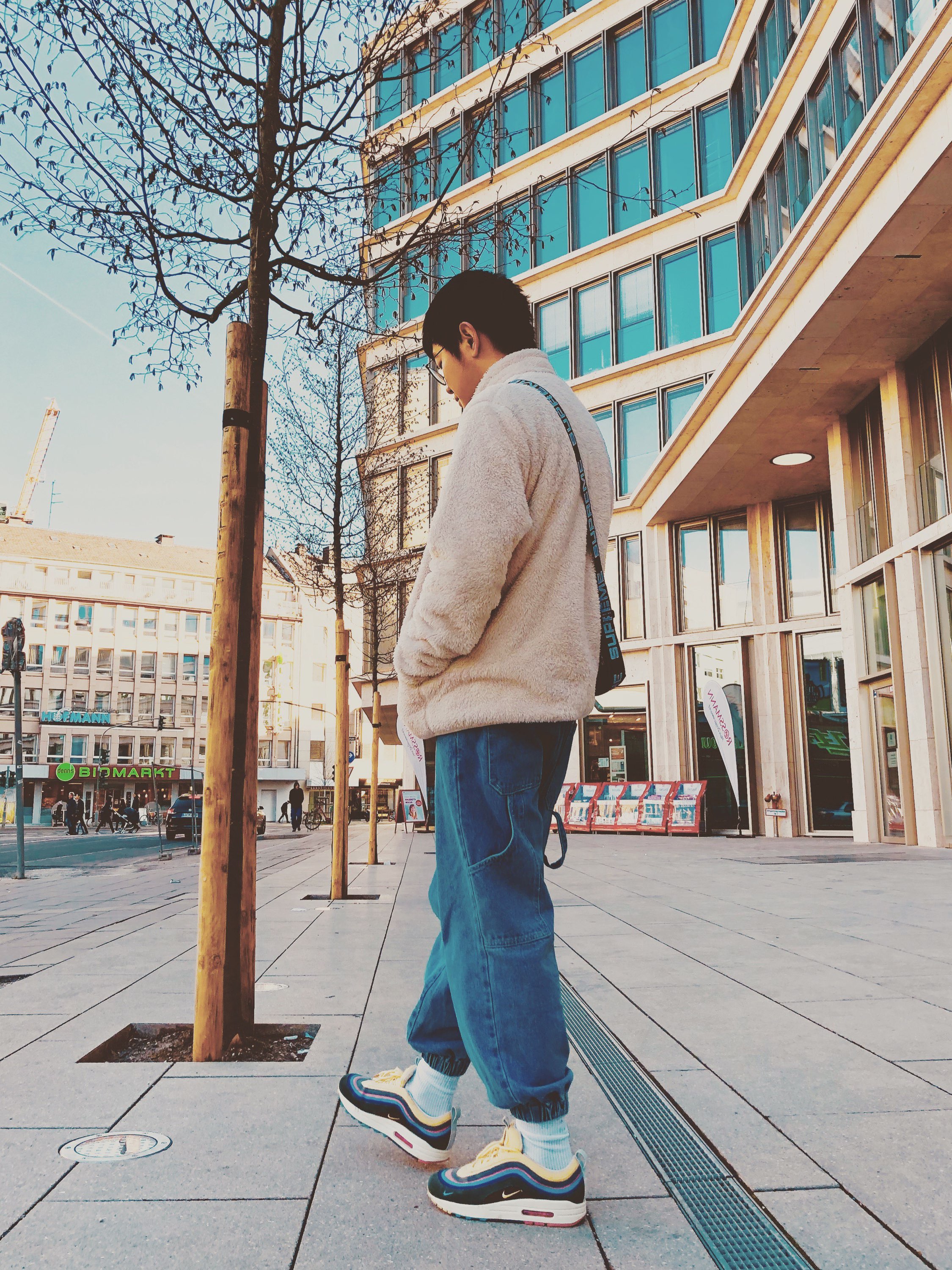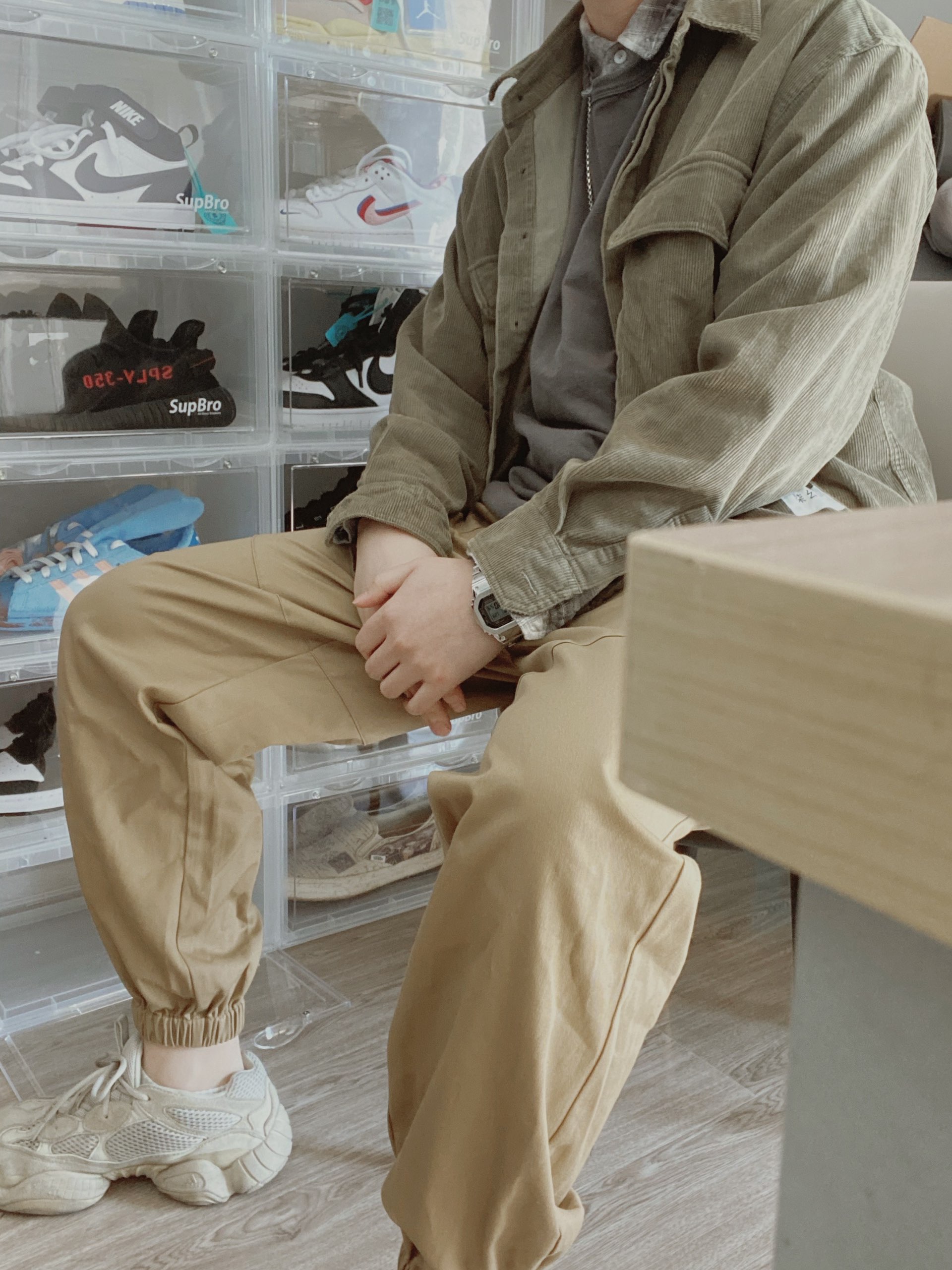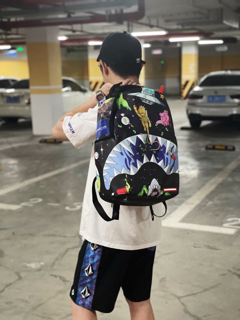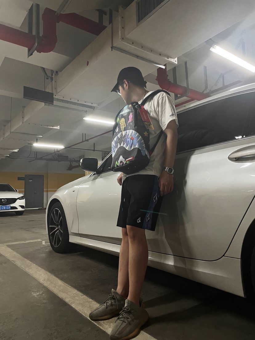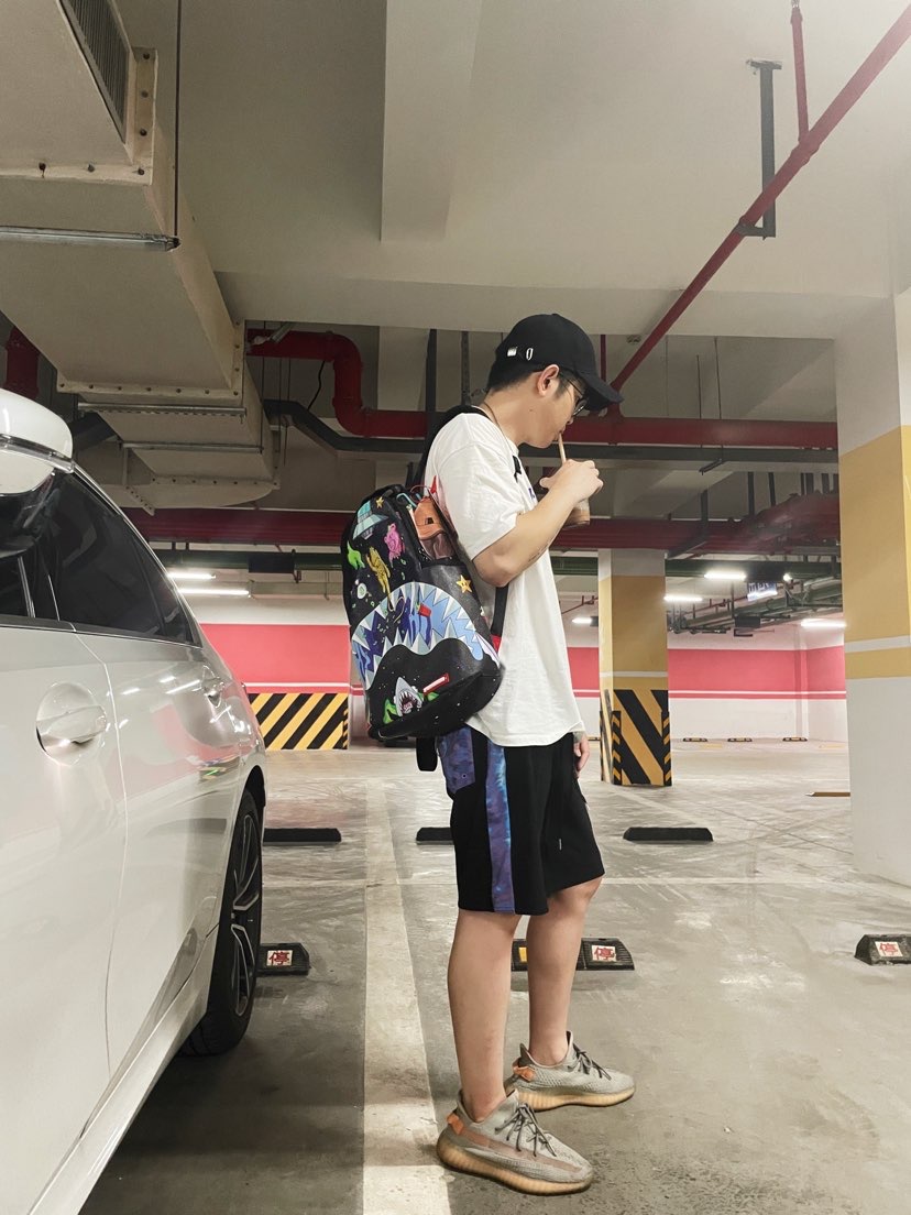 上衣 hawker 好朋友的品牌必须支持一波 黑白基础款都很不戳 裤子 volcom 蓝紫色渐变的侧边瞬间给黑裤子增加了潮流感 书包 sprayground 他们家书包都还蛮帅的 鞋子 yeezy 灰橙2.0 欧洲限定 不多说 yyds