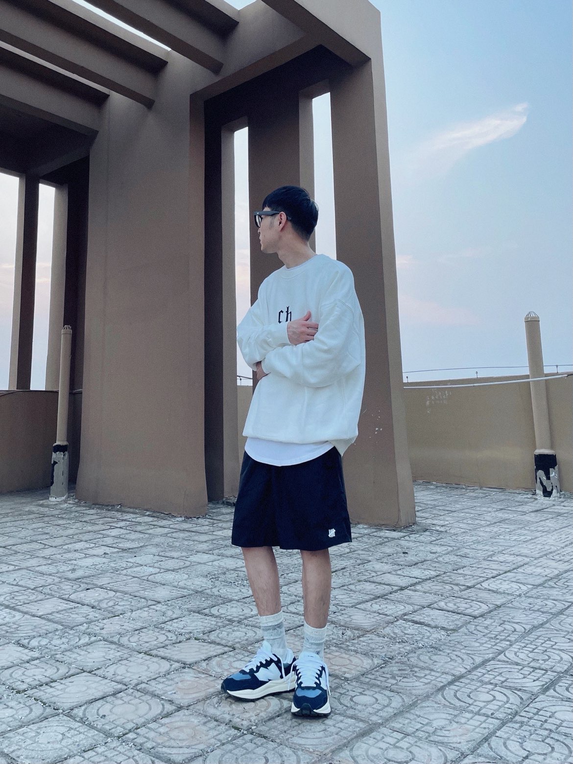 实现早秋卫衣自由📸 白色卫衣真滴怎么穿都好看 这个秋天入手的第一件卫衣 搭配黑色运动短裤和慢跑鞋很有ins风味道!! 记得白色长袜要穿上,就很韩国小哥哥感觉~ 搭配层: 白色卫衣:#CHINISM 短裤:#UNDEFEATED 袜子:#UZIS 鞋子:#New Balance