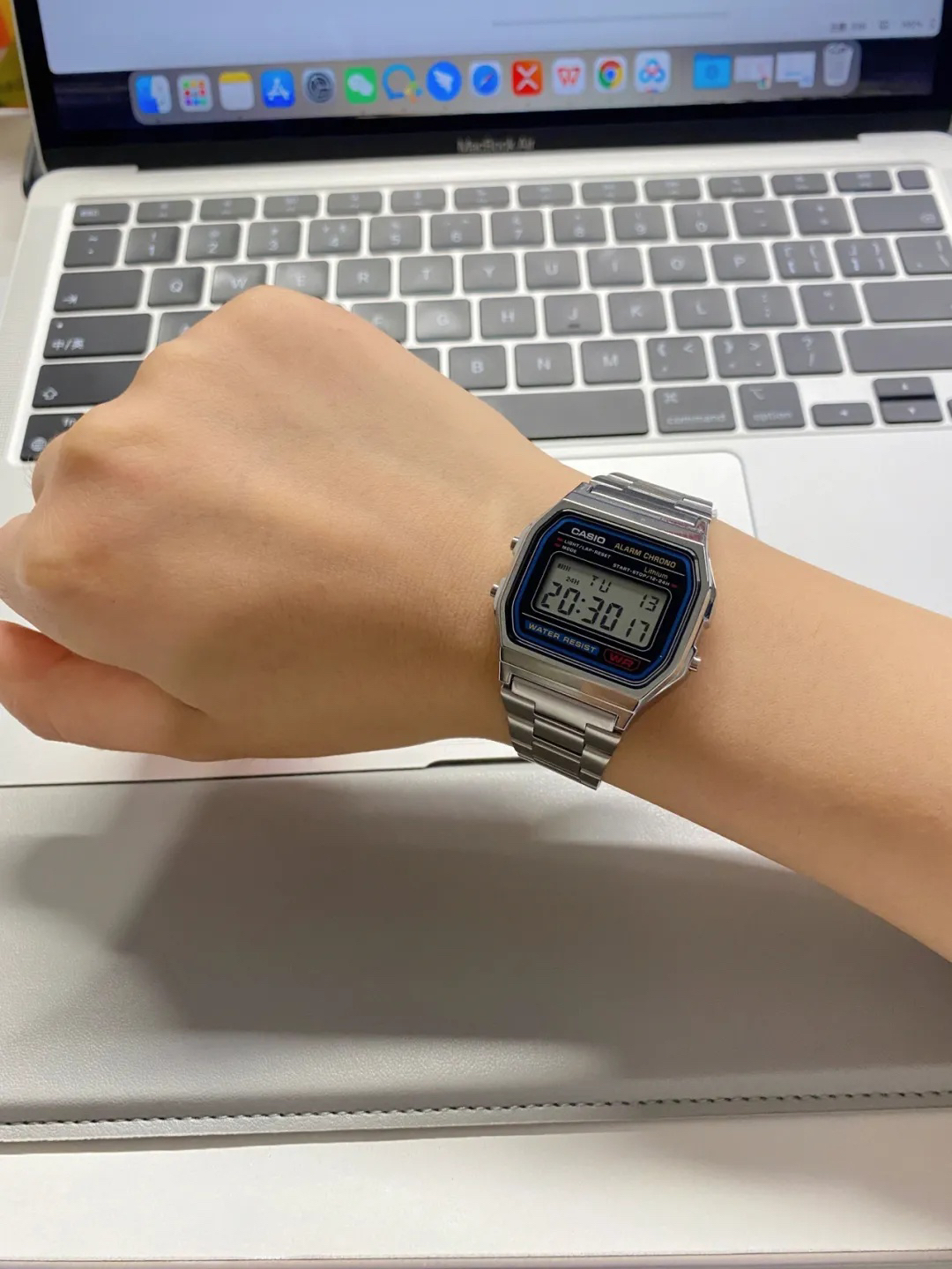刚入手了卡西欧小方块手表a158,只要130真的太香了,看着一点也不廉价满满复古感哈哈,搭配休闲T恤很好看~表盘上可以看时间,日期和周几,非常nice~ 图文来源于博主@Seven斯文