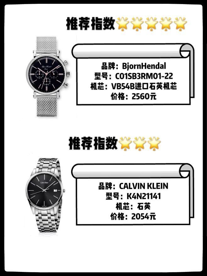 六款初入社会的男生职场生涯的第一支表,必须经典!入门级的男表款式选择有限性价比必须超高,以下我总结了六款经典入门级男表给各位职场小白安排上! 品牌:BjornHendal 型号:C01SB3RM01-22 机芯:VB54B进口石英机芯 价格:2560元 BH是Blancier的姊妹品牌,在瑞典有十多年历史。设计偏复古风格,简约优雅的经典款,职场小白首推款经典男表 推荐指数五颗星 品牌:CALVIN...