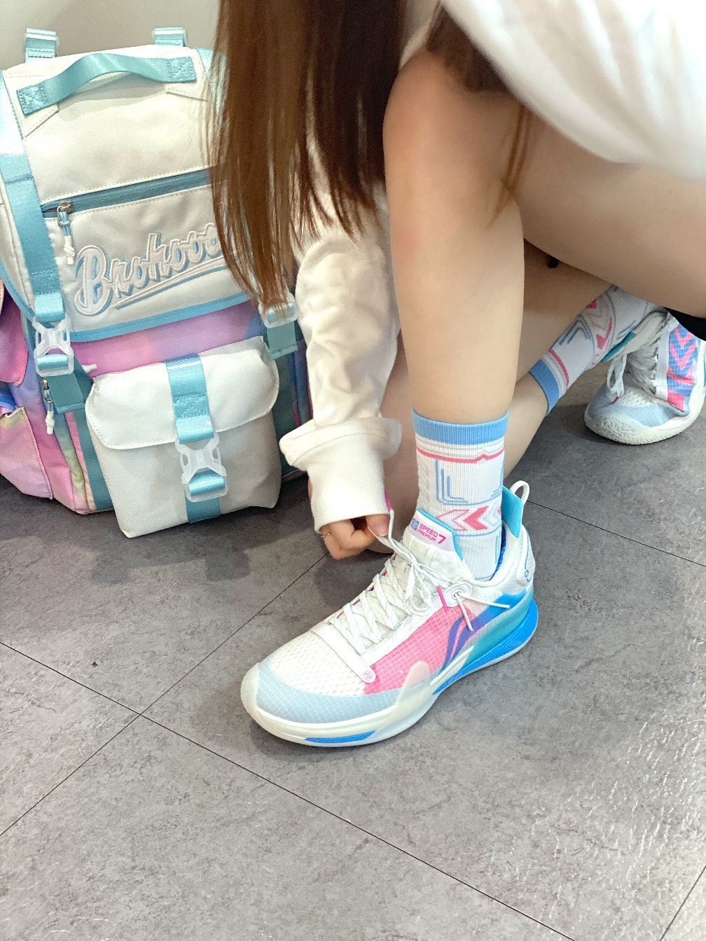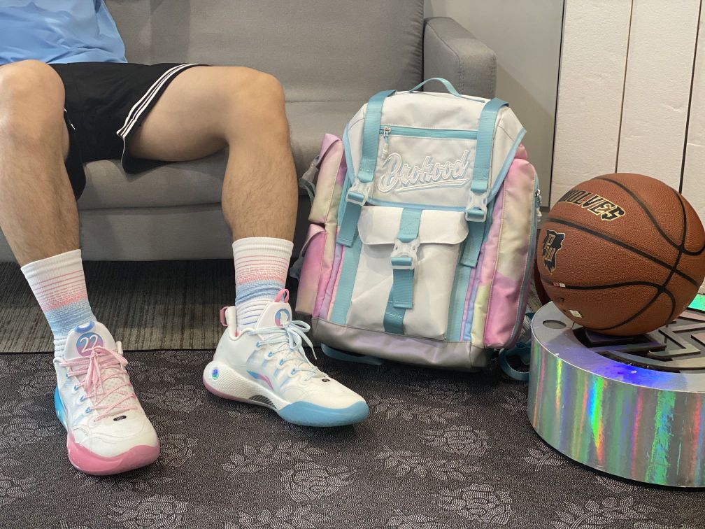 👟球鞋名称 LiNing李宁 闪击7 Premium PE版 😍外观打分 这双鞋颜值真的顶峰了,粉色冰淇淋配色加上鞋面的大logo让人直呼经典。 🧥穿搭建议 撘配了PW汗水交兄弟的棉花糖双肩包🎒和实战袜🧦,这无缝连接的贴合搭配,简直是yyds 📏尺码脚感 专为初夏打造的轻盈透气网面,提升了整体的透气性,兼顾缓震回弹鞋底轻质舒适,上脚就给人一种非常好的贴地感,让人有种突破的冲动。