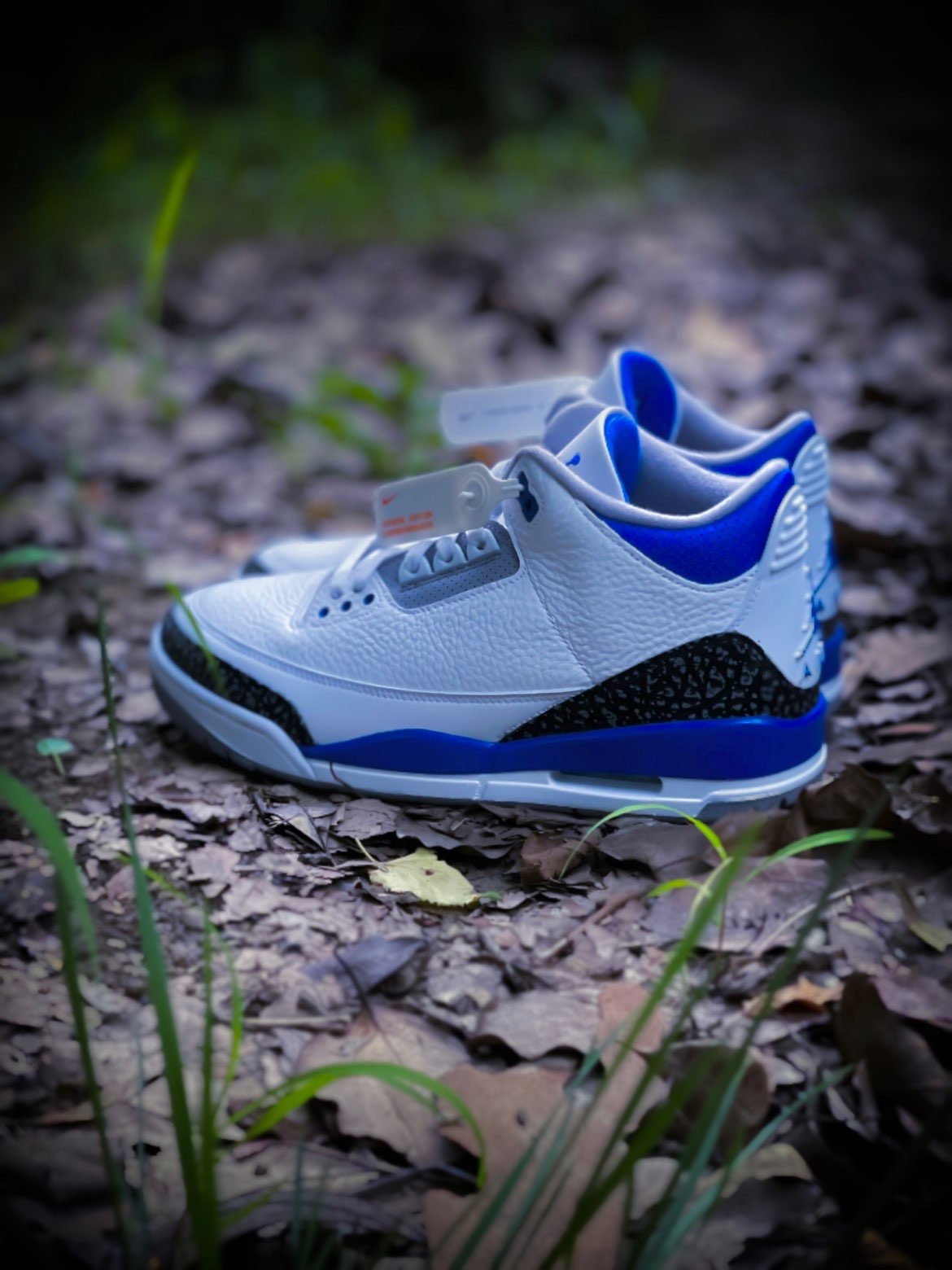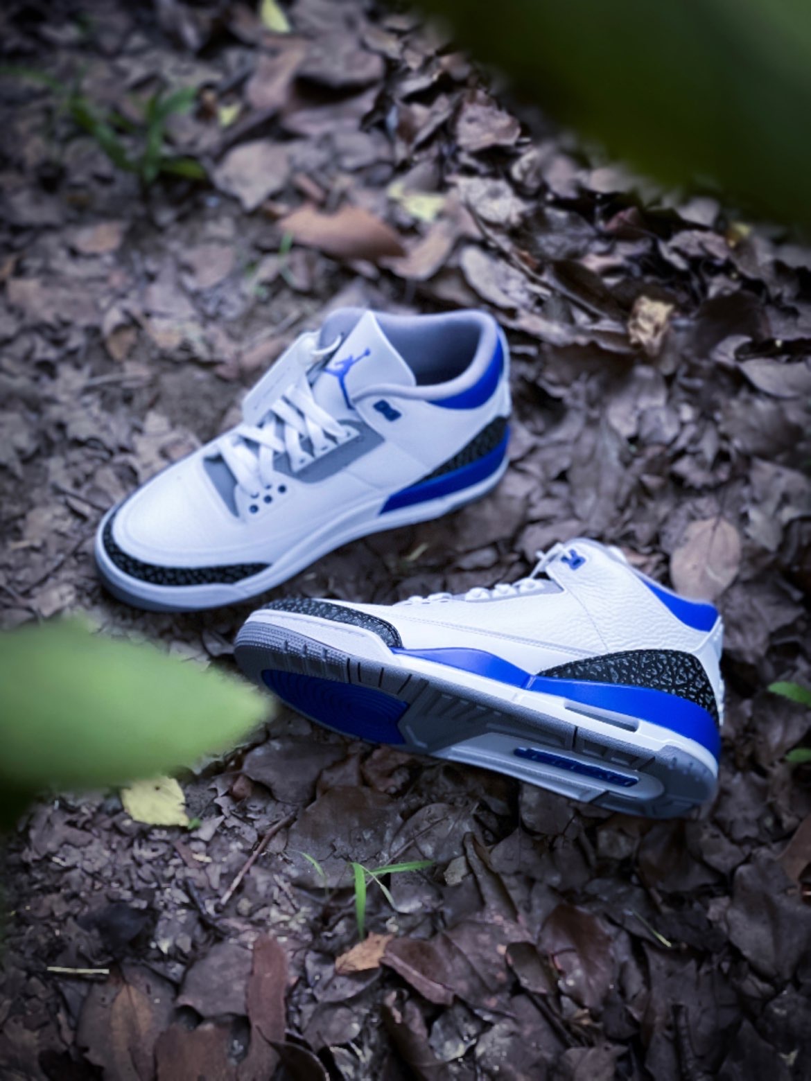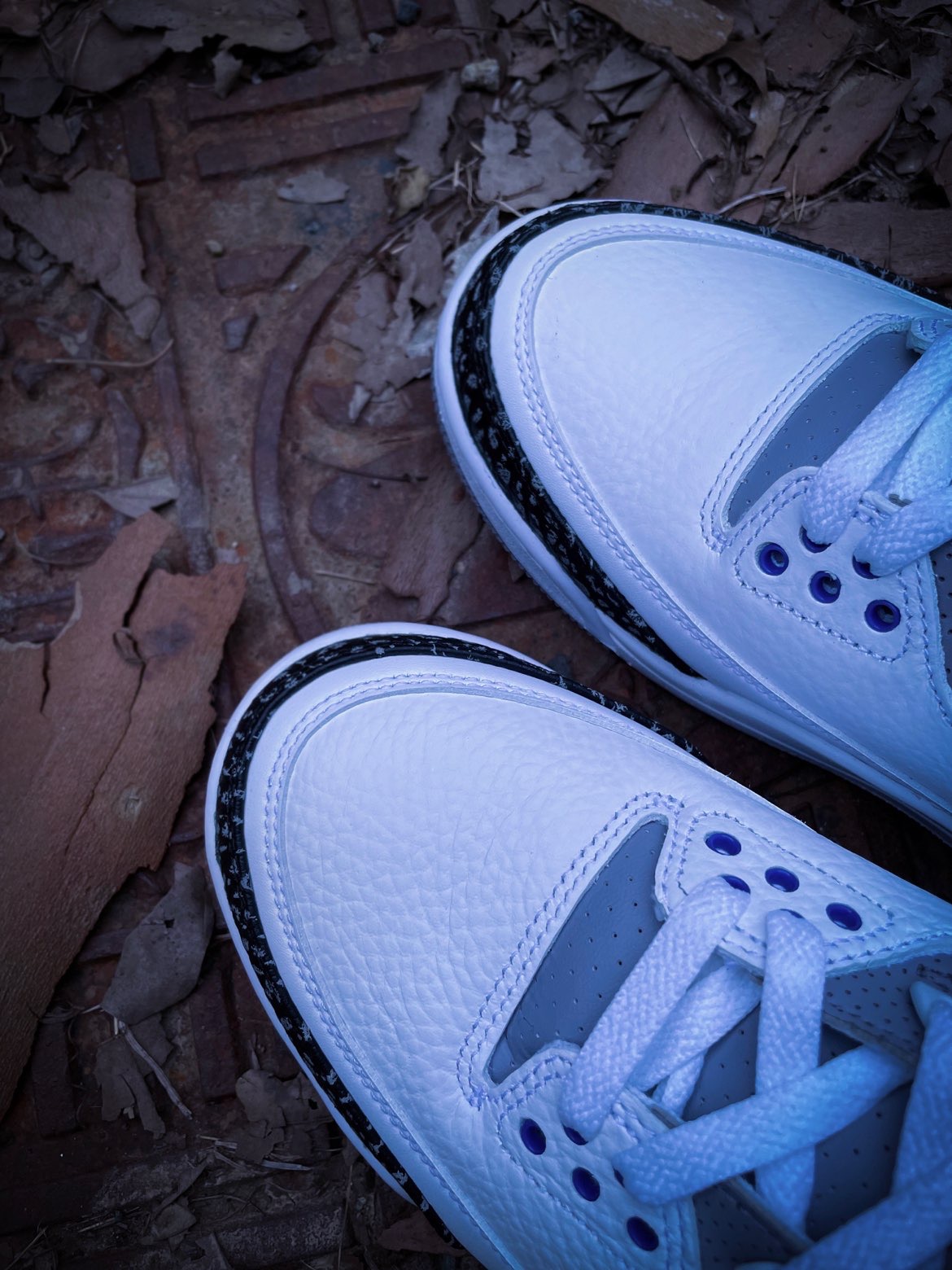 ⚡️作为今年曝光的普款AJ3当中颜值较高的一款,其实我早就有所期待,毕竟“赛车蓝”这个配色方案在AJ4上是真的帅的。白蓝配色在这个季节也是非常的好穿搭,所以在发售当天就入手了一双。 ⚡️鞋子拿在手上还是非常棒的,基本上与想象的相符;整体采用白黑蓝的配色方案,鞋面大面积的荔枝纹皮质非常柔软,鞋带孔为灰色皮质点缀层次,鞋头与鞋后跟的爆裂纹材质竟然是3M反光的,细节也是非常不错。中底涂漆和鞋帮处...
