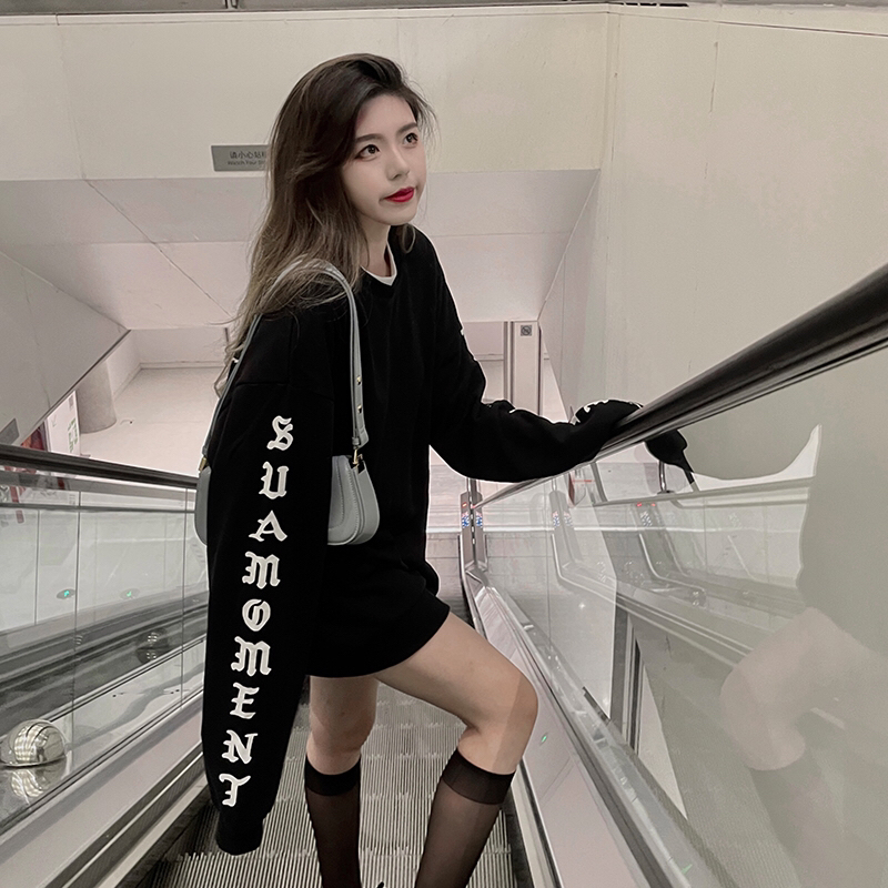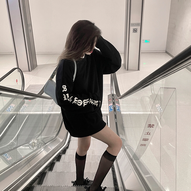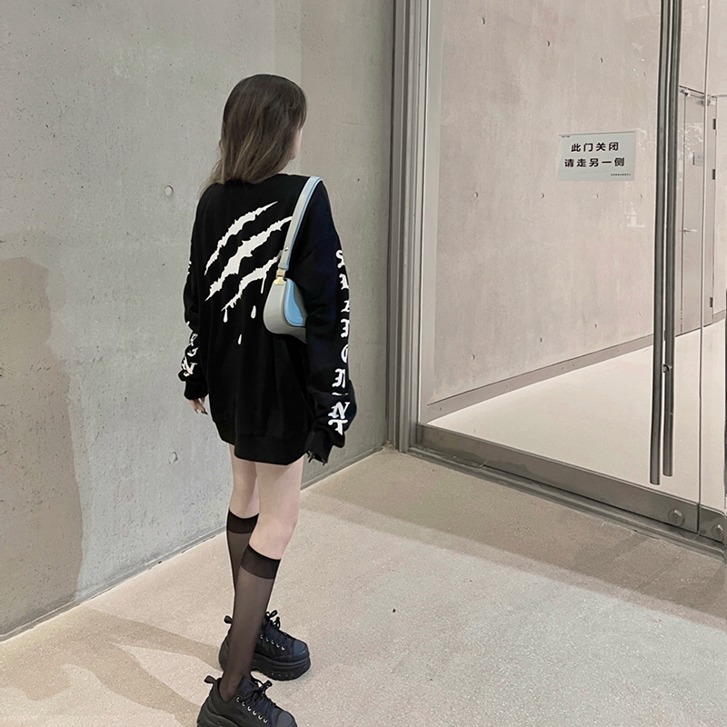 【仙女怎么穿】黑色卫衣永远的心头爱,抓痕字母图案酷感十足,搭配丝袜和运动鞋一整个甜酷感就拿捏住!
