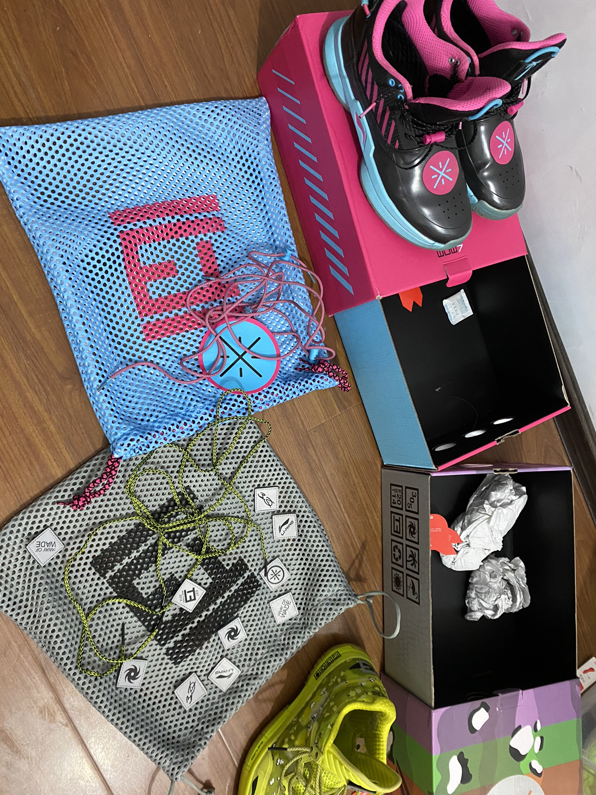 韦德之道7 teb联名的迈阿密配色,该配色很像韦德最后一个赛季的球衣配色,整体十分美丽,质感也不错,适合收藏,本次诚意也是比较好的防尘袋附赠的鞋带都有,值得一提的是鞋舌部分由wow7字样换为了teb的代表小椰树,整体漆皮质感。
