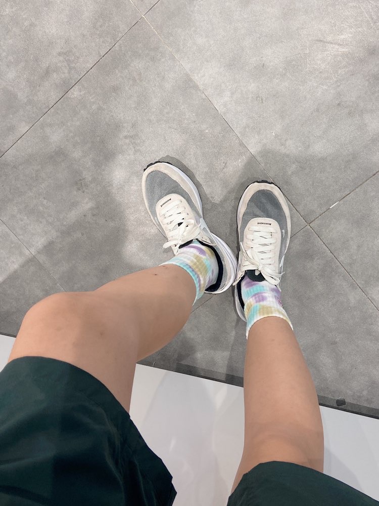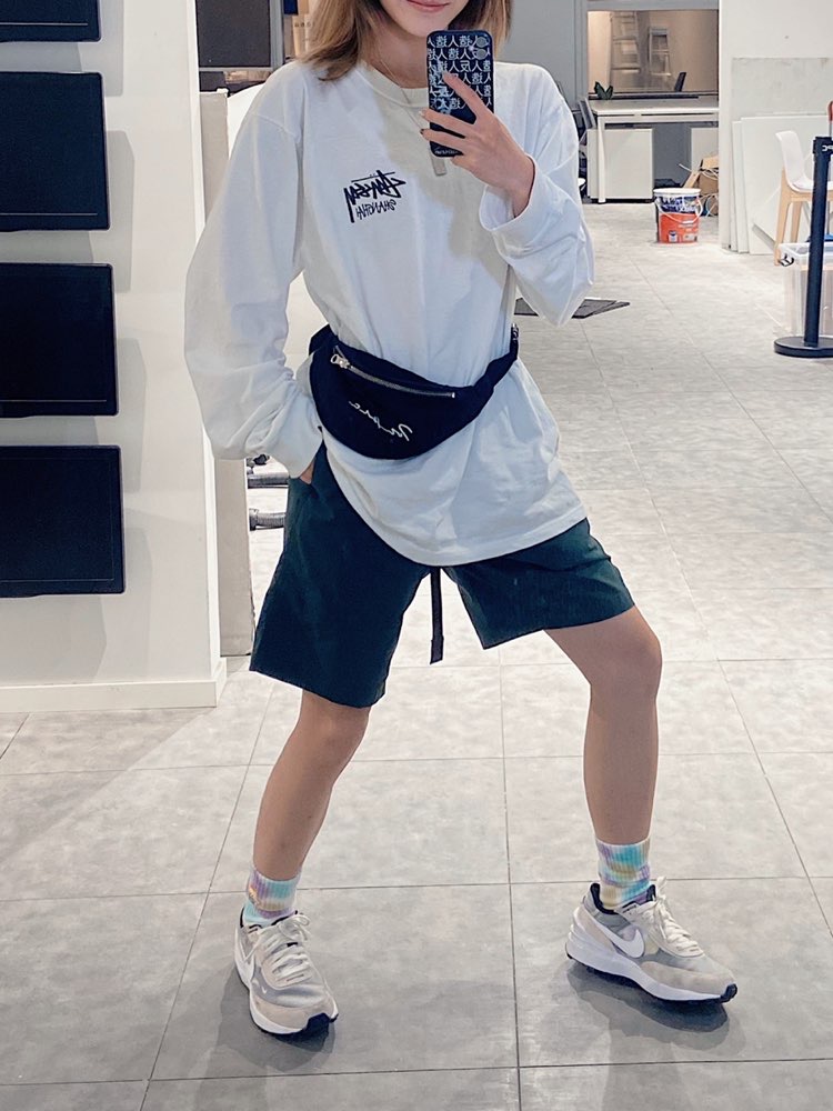 教科书穿搭挑战我来了,夏日台风天教科书📗 Tee|#Stussy 裤子|Gramicci 袜子|#UZIS 鞋子|#Nike waffle one 长袖配短裤,谁穿谁有型,而白色的stussy非常美式复古,配上比较运动技能的waffle one,简单秒杀