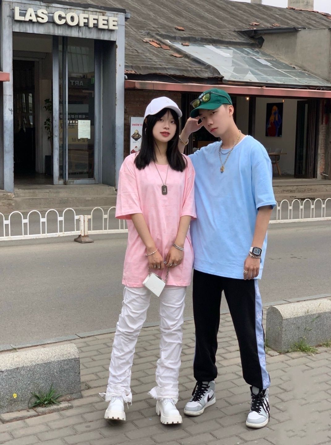 🌷🌷 七夕快乐!! / 与男友组成蓝粉CP,羡煞旁人~ -照片来自@-小泓同学 休闲穿搭|情侣穿搭|七夕|休闲裤|男生穿搭|女生穿搭|小众设计|学生党