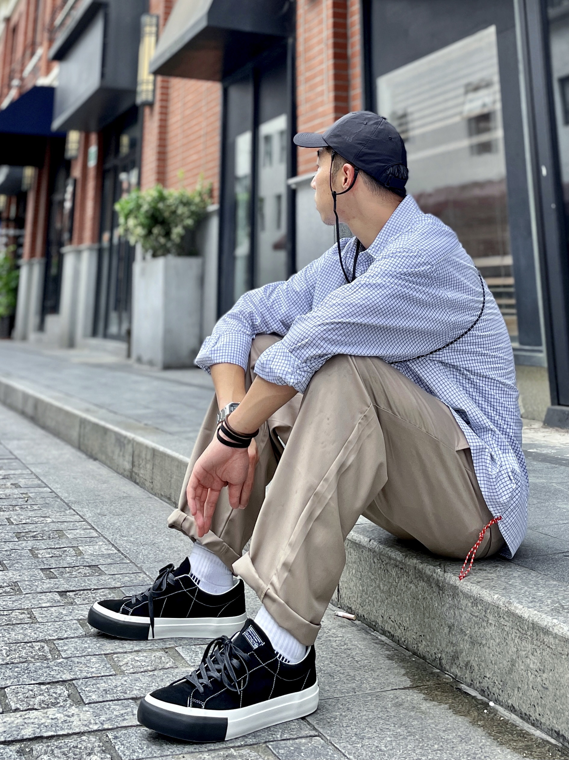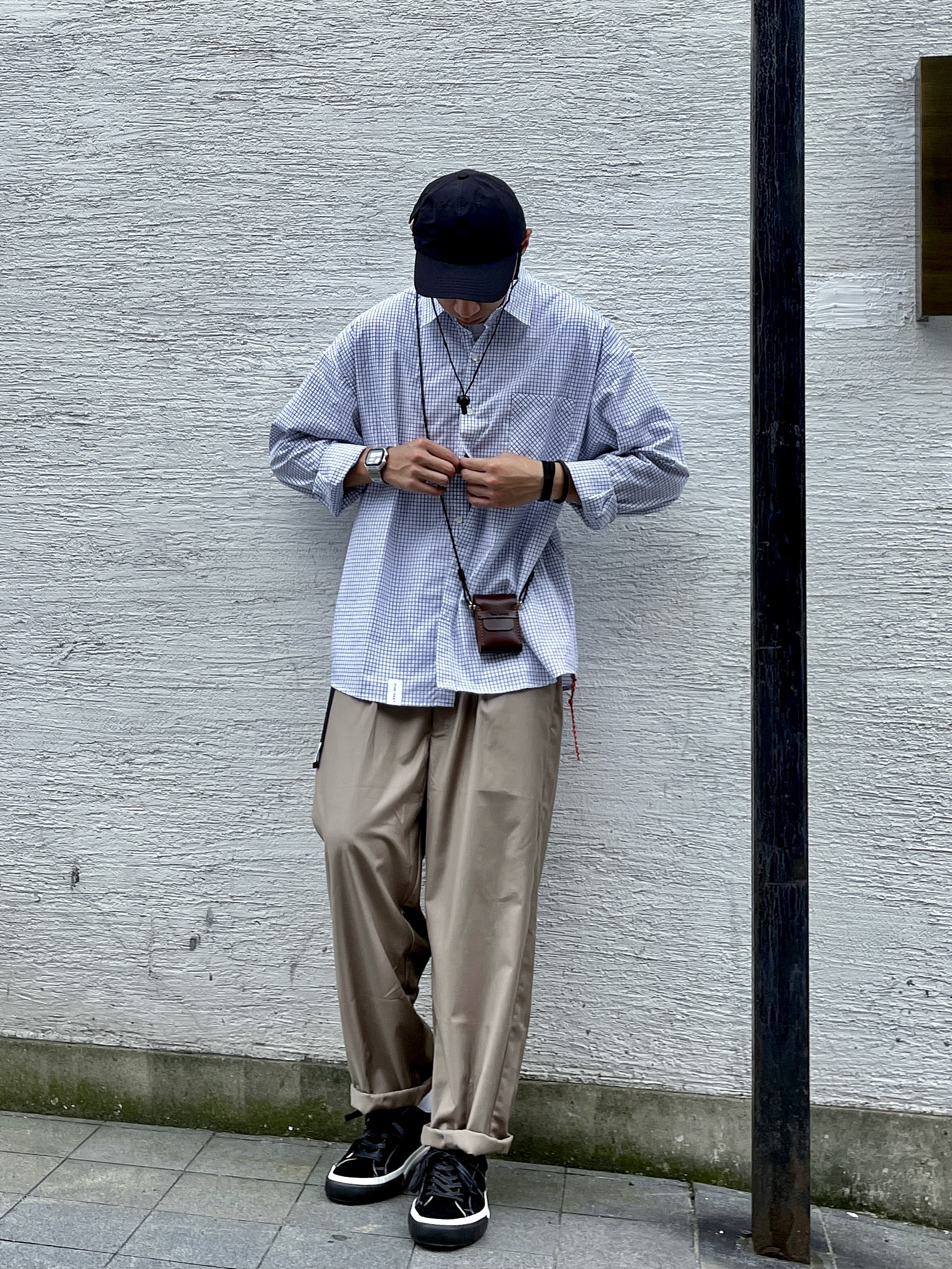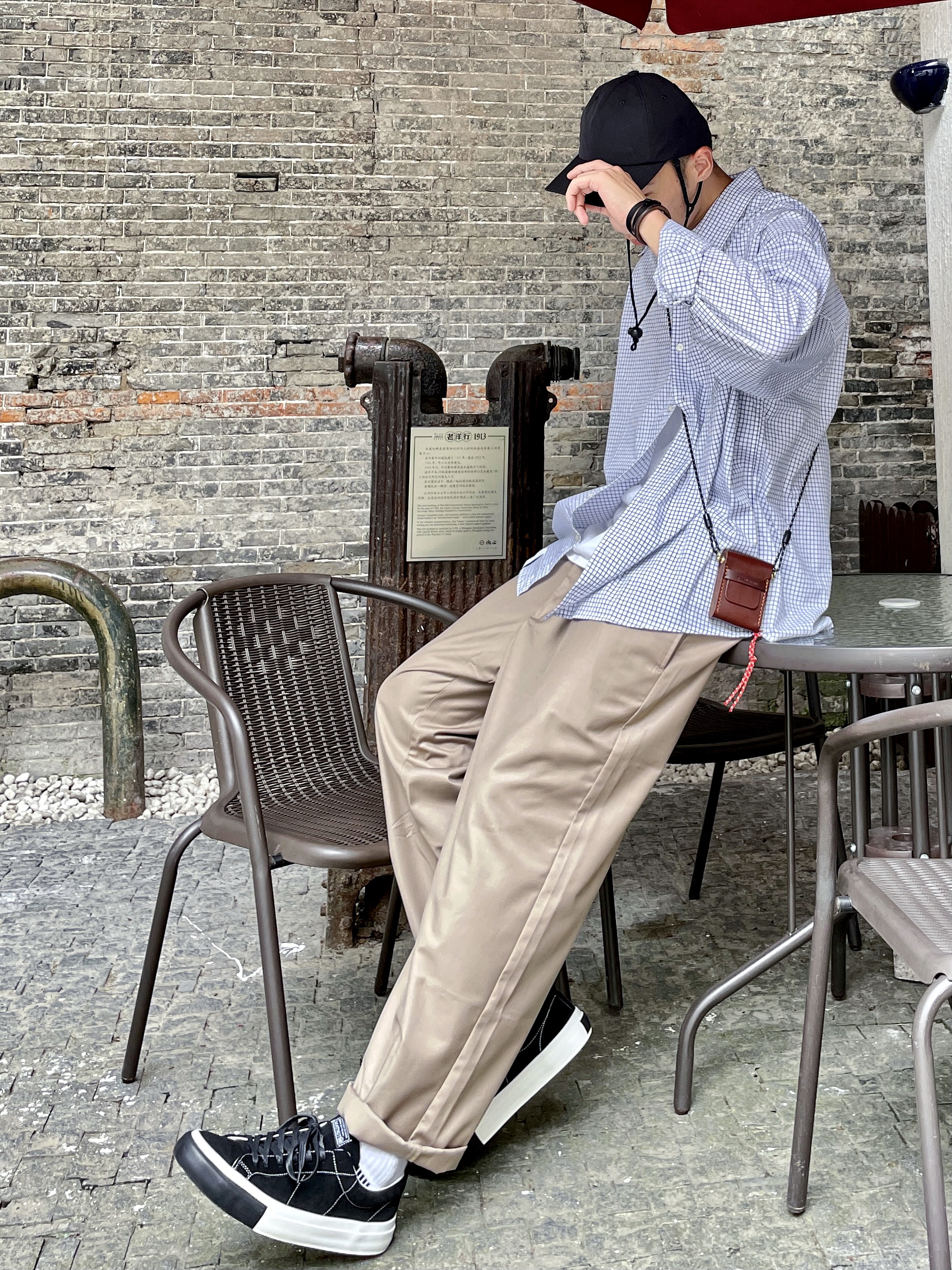 # 182 | 68kg 🐷 随性穿搭 丶 日系风格看似简单却~ 又每款单品都自带设计感小细节~ 也是偏爱日系的理由之一~ 就爱有个性的小设计~ 🧢 弯檐帽侧面口袋+书袋 🎒 手工皮质小挎包 👔 下摆红色挂绳 👟 麂皮+软木塞鞋垫 ~~ 无不例外都是很爱的点~~ MATNUT家麂皮小众板鞋推荐~ 妥妥的明星同款~好穿不烂大街~ 性价比很高的一款小众板鞋~ 软木塞鞋垫~舒适度直接拉满~ 🧢 帽子...