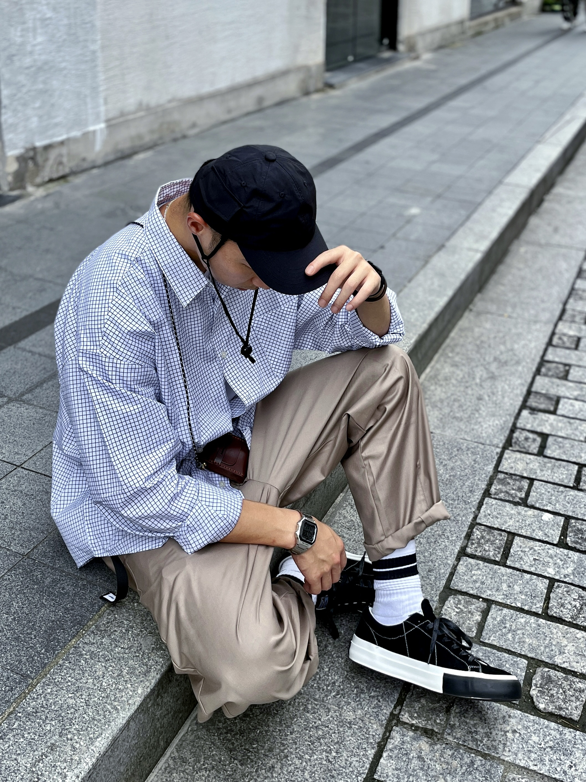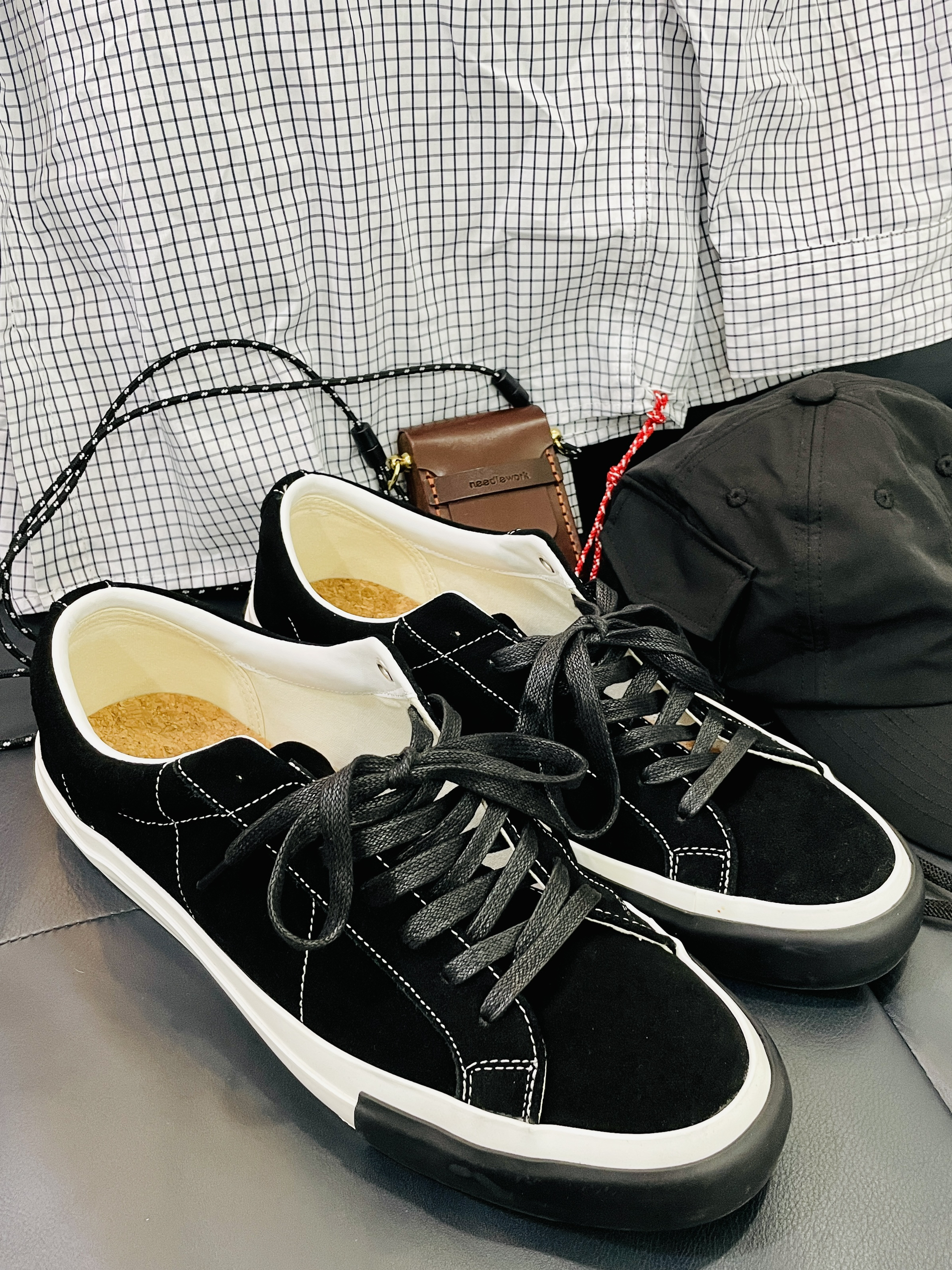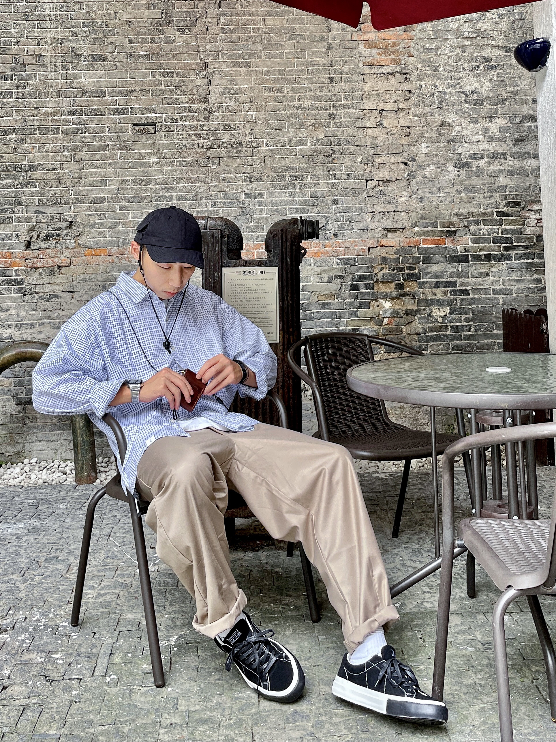 # 182 | 68kg 🐷 随性穿搭 丶 日系风格看似简单却~ 又每款单品都自带设计感小细节~ 也是偏爱日系的理由之一~ 就爱有个性的小设计~ 🧢 弯檐帽侧面口袋+书袋 🎒 手工皮质小挎包 👔 下摆红色挂绳 👟 麂皮+软木塞鞋垫 ~~ 无不例外都是很爱的点~~ MATNUT家麂皮小众板鞋推荐~ 妥妥的明星同款~好穿不烂大街~ 性价比很高的一款小众板鞋~ 软木塞鞋垫~舒适度直接拉满~ 🧢 帽子...