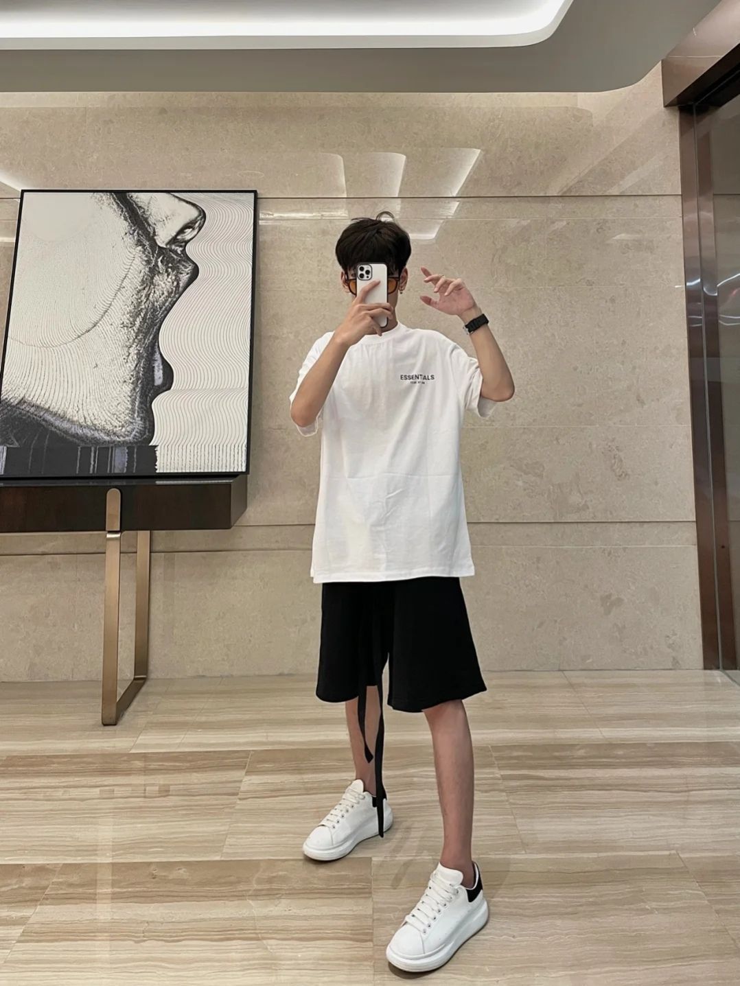 🦋FEAR OF GOD,简称FOG,是JERRY LORENZO于2013年在美国洛杉矶创立的街头潮牌。 LORENZO将其灵性及丰富的阅历注入了FEAR OF GOD的设计,融合了高度时尚元素与街头风格,选用高档材质,凭着独特的街头哥德风格,在极短的时间内就让潮流时尚界人士留下深刻的印象。 LOOK1⃣ 👕:FOG Essentials 我觉得这种黑白灰的组合简约又看起来十分干净清爽@Luc...