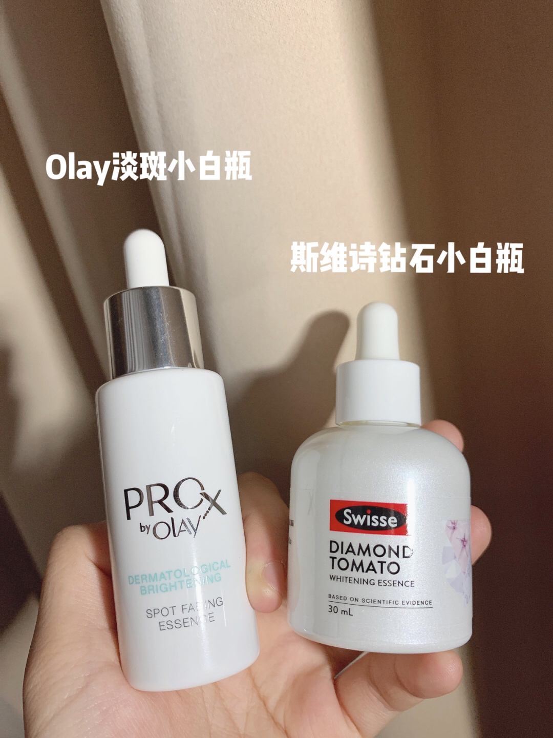 最近太阳是真的大 除了白天要好好涂防晒 晚上也要好好护肤哦 最近手头用的两只平价美*白精华分享给大家~ 一只是斯维诗钻石小白瓶 一只是OLAY淡斑小白瓶 两只都是滴管设计方便吸取使用 🌟成分 斯维诗和Olay都是主打的美*白*淡*斑 不过斯维诗有1个美*白黑科技 专*利钻石番茄成分可以提高肌肤对阳光的防御力 保护皮肤不受紫wai线对的伤害 抹了半瓶感觉白了一个度!!! 用起来还很水润,早晚抹皮肤一...