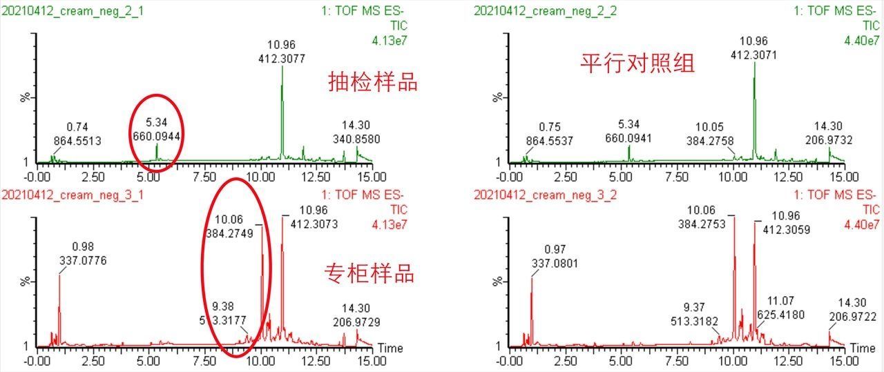【建议收藏】今年上半年出现一批紫熨斗假货,假货特征也基本想符,本期正品君总结几个鉴定技巧分享给大家,同学们记好笔记,一起来学习。 同时带给大家的还有实验分析数据,通过液相色谱-质谱分析技术,制作图谱,根据图谱差异来判断是否正品。 ✔鉴别小技巧 ①包装盒:包装盒正面下方、侧面,有很明显的颜色区别,正品此处是蓝色,仿品是呈现紫色。盒子顶部的logo,正品是凹凸有致,印刷非常清晰,仿品摸上去没有凹凸感,...